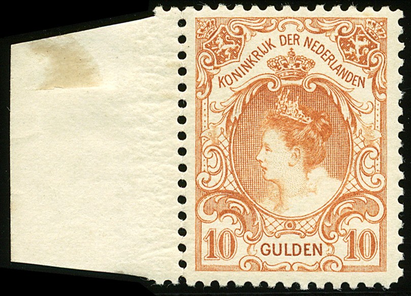 80, 10 Gulden oranje, postfris prachtex. met linkervelrandje € 2250