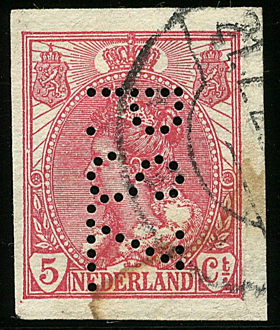 82/83, firmaperforaties P.S.Z. (= Pieter Schoen & Zoon) op 5 cent (vlekje) en B & S (= Brocades & Stheeman) op 10 cent (prachtex.) afgest. Meppel 30.1.23. Schaars op deze zegels!