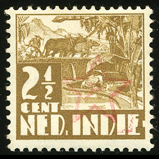 Sumatra. Atjeh. 2½ Cent Kreisler with brown-red Atjeh star overprint no. 111br-17b, unused. Signed APC. € 300