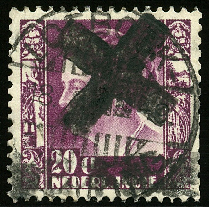 Sumatra. West Coast. Large Dai Ni Hon Yubin overprint in violet or black in combination with violet or black cross overprint, used in the West Coast and Riouw, unused or used, on 12 stamps type Kreisler. Signed Boekema