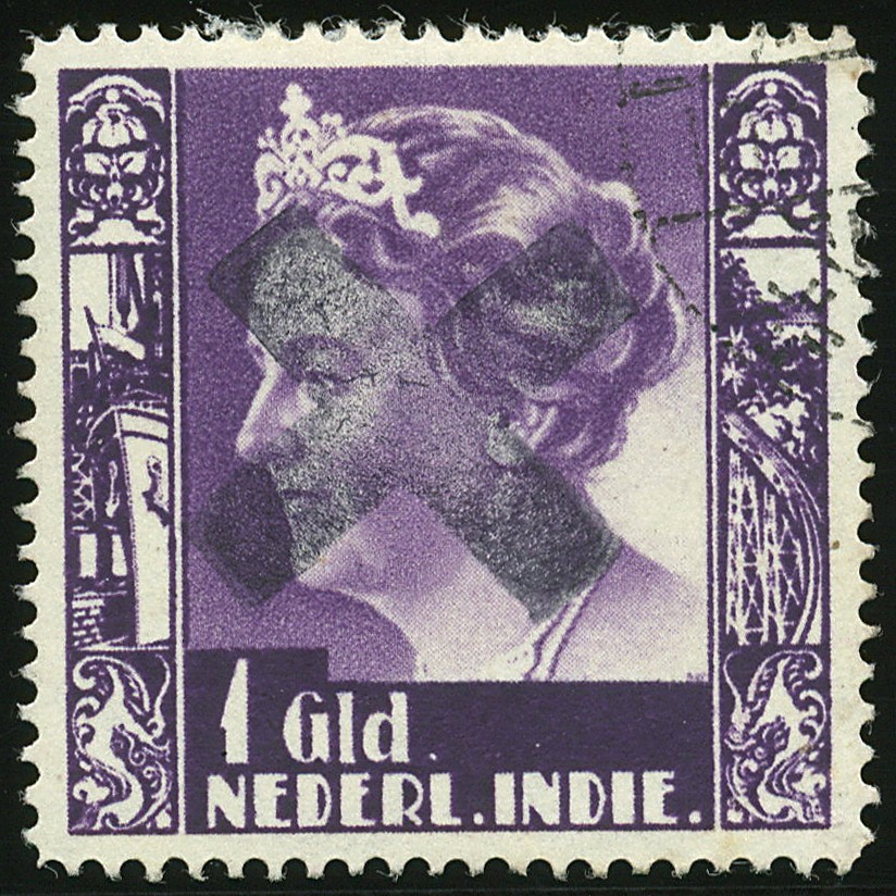 Sumatra. West Coast. 1 Gulden Kreisler with black cross overprint no. 332z-37b, c.t.o. (unused not recorded). Rare stamp! Signed Boekema. Cert. ´Van Dieten, 2019´. € 800