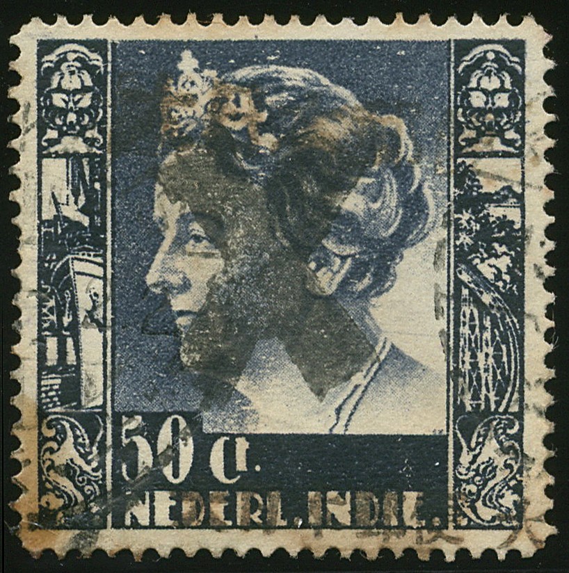 Sumatra. Riouw. 50 Cent Kreisler with black Dai Ni Hon Yubin overprint in combination with black cross overprint of Bengkalis no. 881z/386z-34a, cancelled Bengkalis. Slightly stained, but a rare, unlisted stamp!