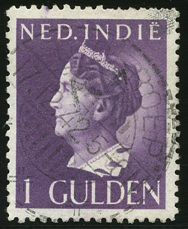 Sumatra. Benkoelen. 1 Gulden Van Konijnenburg with black Star of David overprint no. 398z-54k, cancelled Tjoeroep 17.12.42.5-6N. € 350