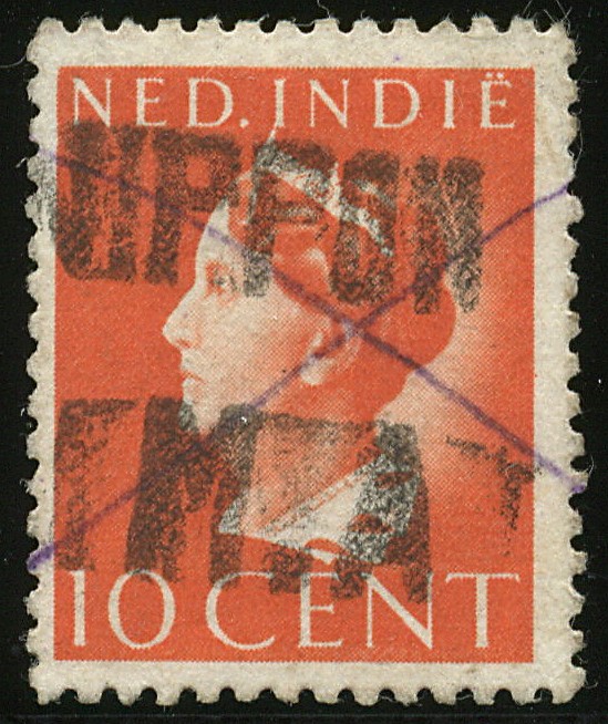 Sumatra. Djambi. 10 Cent Van Konijnenburg with black overprint NIPPON/M.A no. 434z-43a, with pen cross. Signed Boekema. Not listed