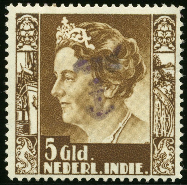 South Celebes. 5 Gulden Kreisler with violet Makasser anchor overprint no. 114v-41b, unused. Scarce! € 335
