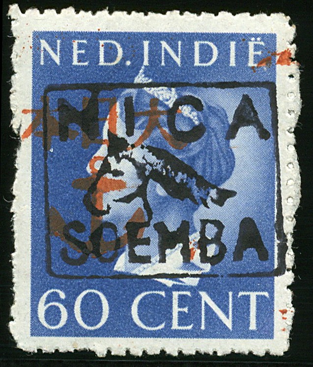 Miscellaneous. NICA SOEMBA. Selection of overprints type NS-1 in black or blue on 11 different stamps type Van Konijnenburg. See: Bessels table on p.79-80
