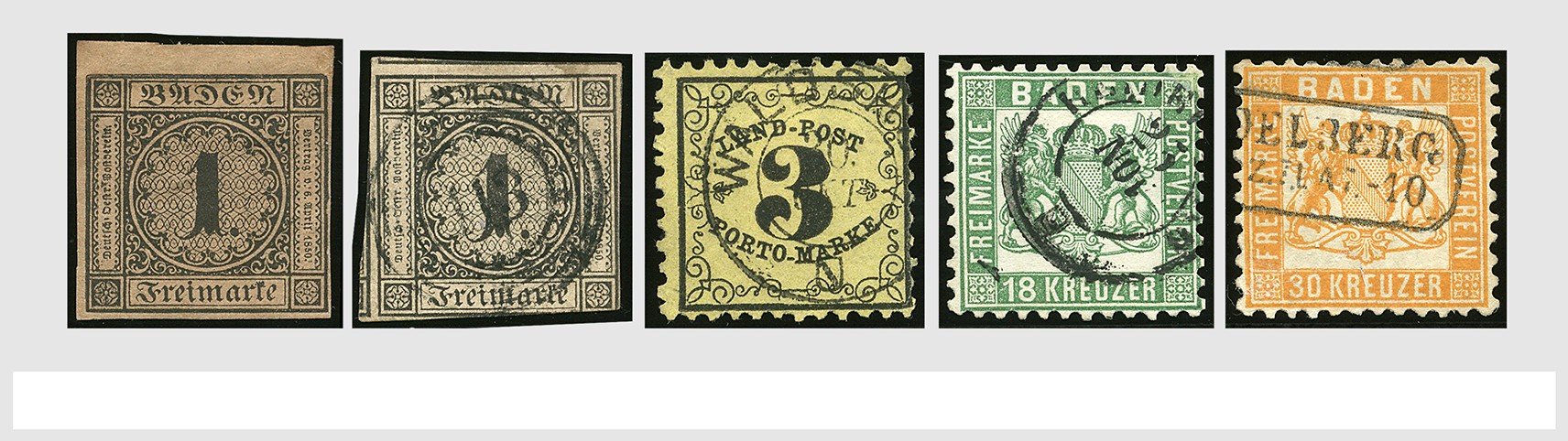 OUD DUITSE STATEN, Baden 1851-1868, meest gebruikt op albumblad, wb. 1b *, 21 en 22 (keur Brettl)