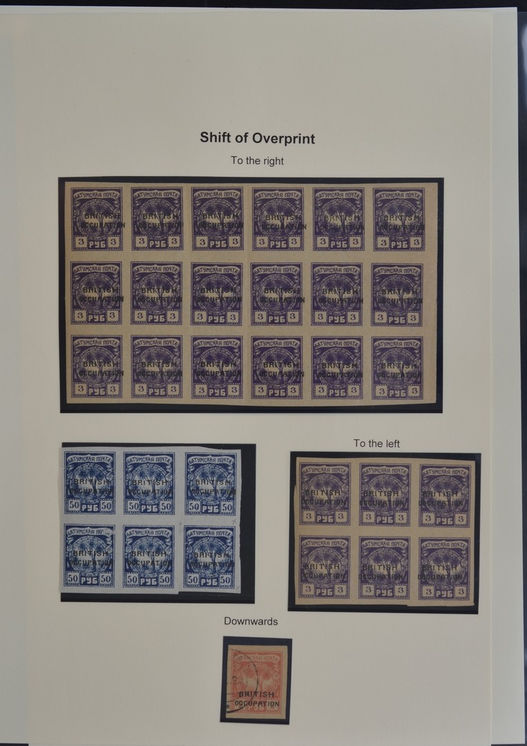 ENGELSE KOLONIËN, Batum 1919 */**, interessante, meest postfrisse verzameling opdrukken, wb. variëteiten in blokken en veldelen