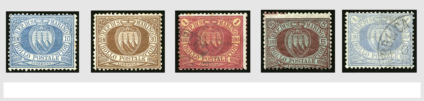 SAN MARINO 1877-1899, o/* verz. op albumbladen, met o.a. Mi.4 *, 20, 22 en 31 met keur Diena