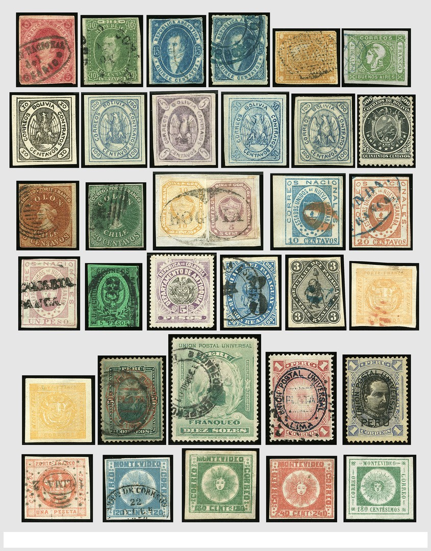 ZUID AMERIKA 1856-1901, Argentinië met Buenos Aires, Bolivia, Chili, Columbia met Provincies, Ecuador, Paraguay, Peru, Uruguay en Venezuela, o/(*)/* op albumbladen, enkele reprints en falsificaten, desondanks een prachtige verzameling met veel goede tot zeer goede nrs. waaronder veel gekeurd. Bezichtiging aanbevolen!!