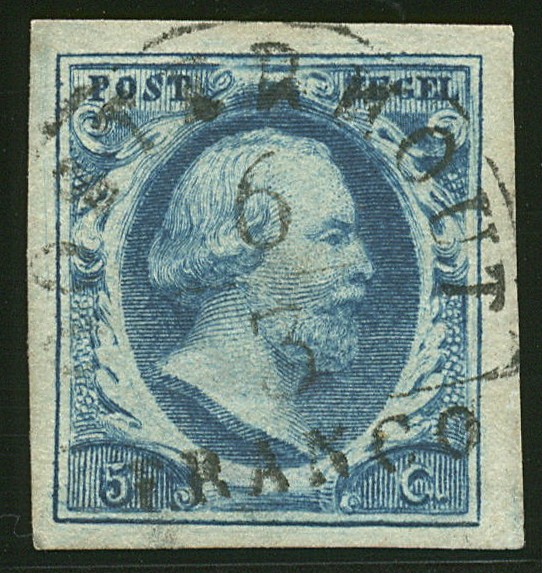OOSTERHOUT A (EY.250) op 5 cent. Mooi gerande zegel (az. violette initialen J.S., aan vz. niet zichtbaar) met ideale afdruk voor dit stempel