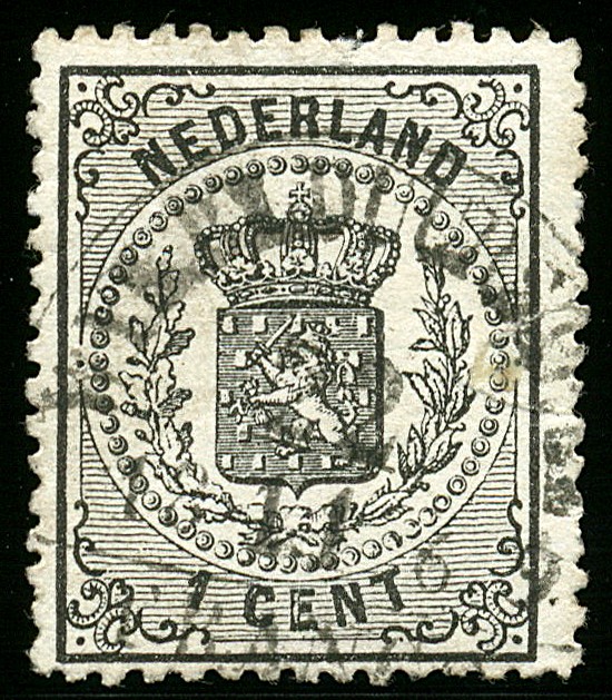 WYK BY DUURSTEDE op 1 cent zwart. Fraaie zegel (gerep.) met volledige afst.