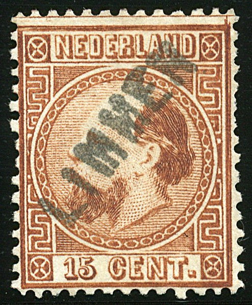 LIMMEN (zwart, schreefloze letters) op 15 cent nr. 9. Prachtex. met superbe afdruk van dit op emissie 1867 uiterst zeldzame stempel. Op deze zegel mogelijk uniek!