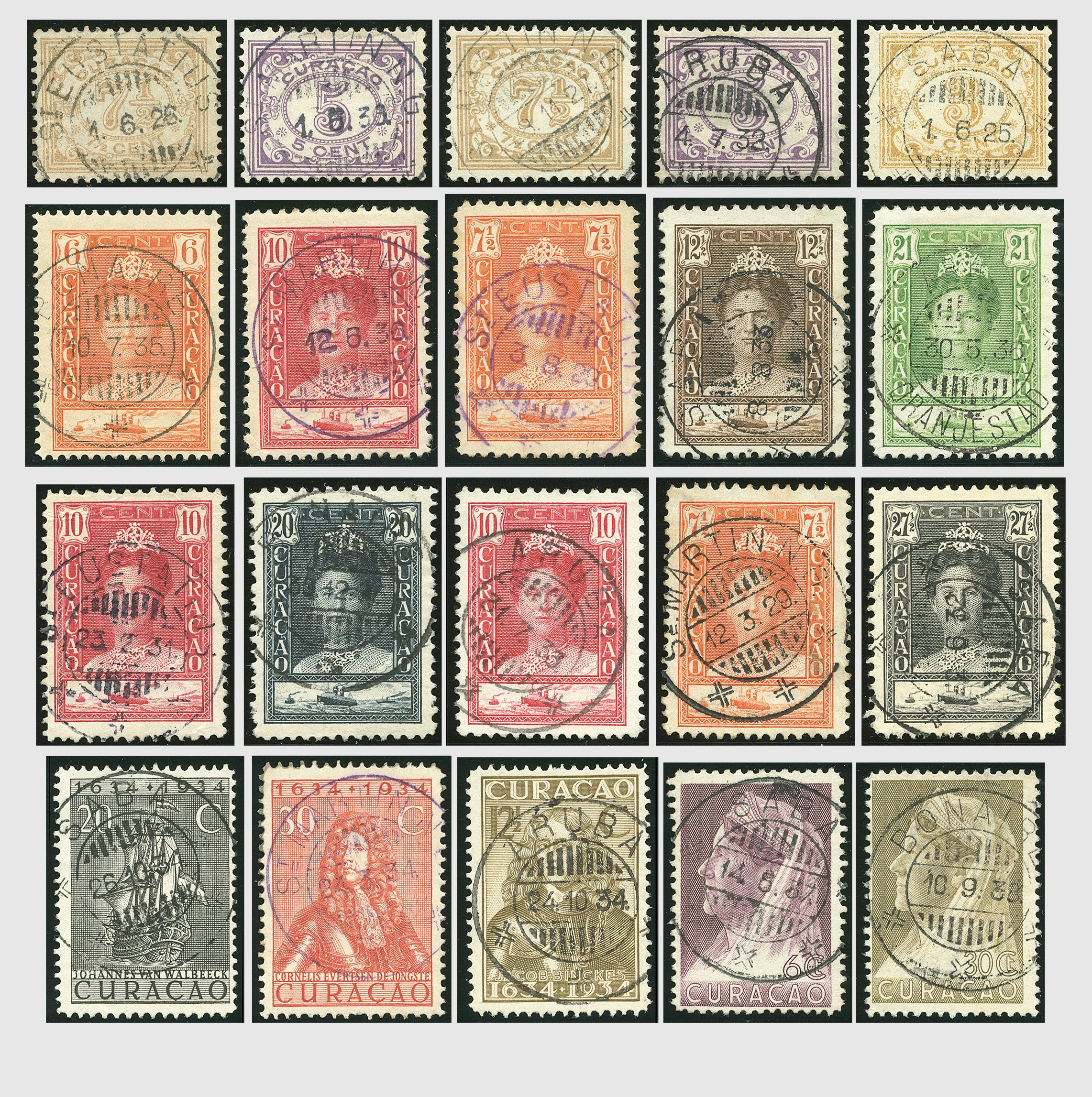 Kortebalkstempels op div. emissies 1915-1948 incl. Luchtpost en Port alsmede Ned. Antillen grote ronde rubberen stempels, administratief etc. Alles in prachtkwaliteit