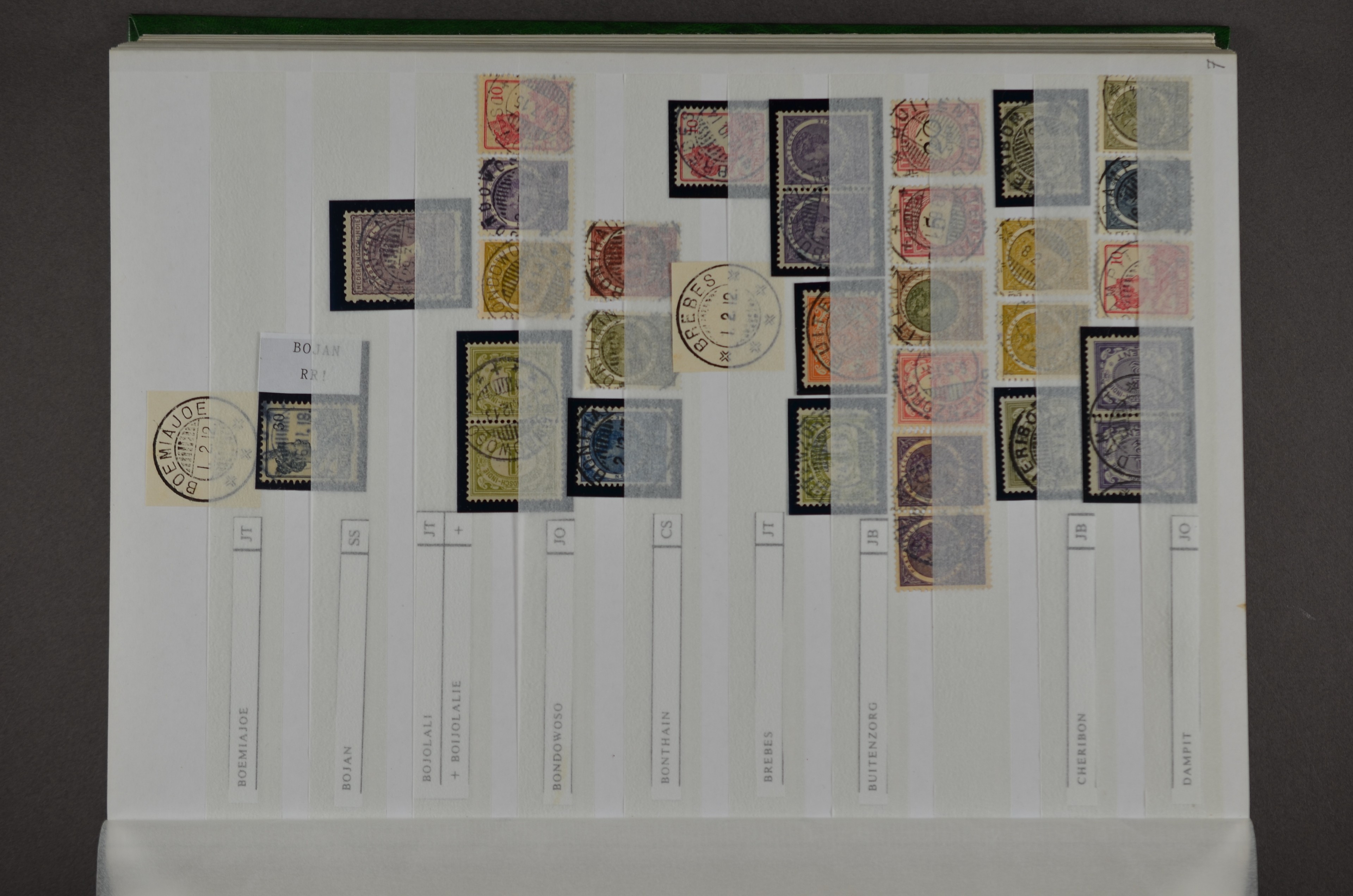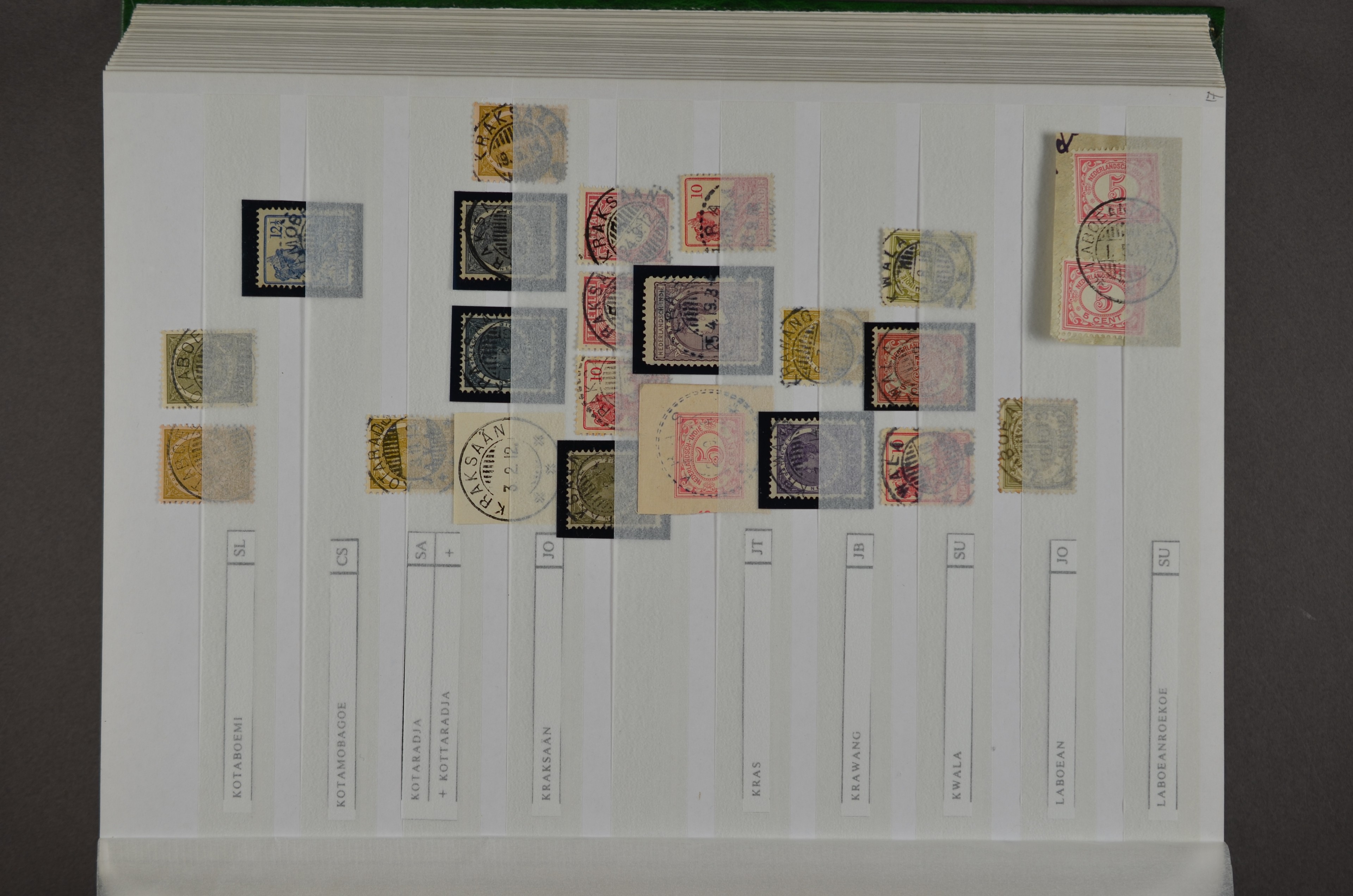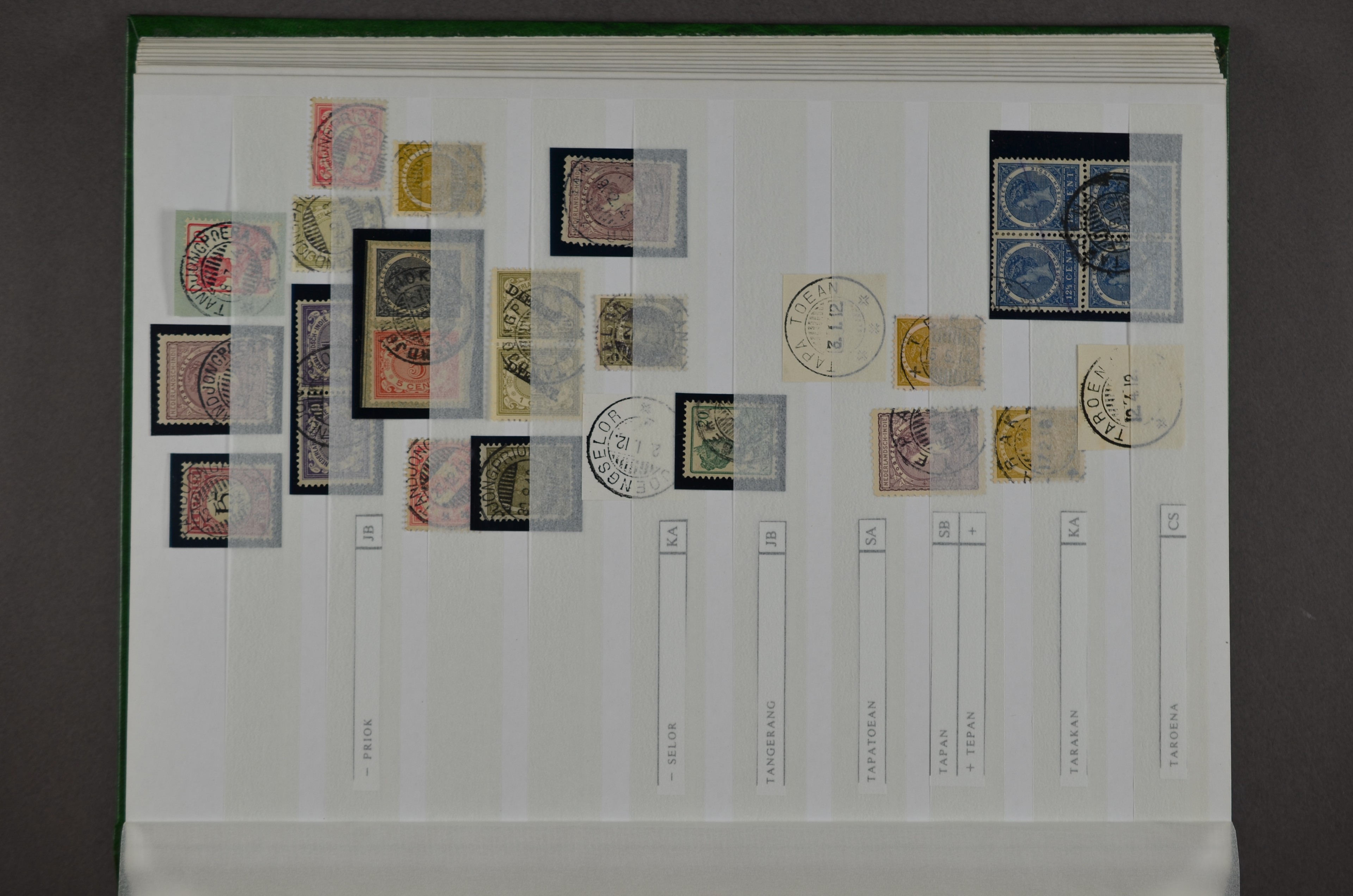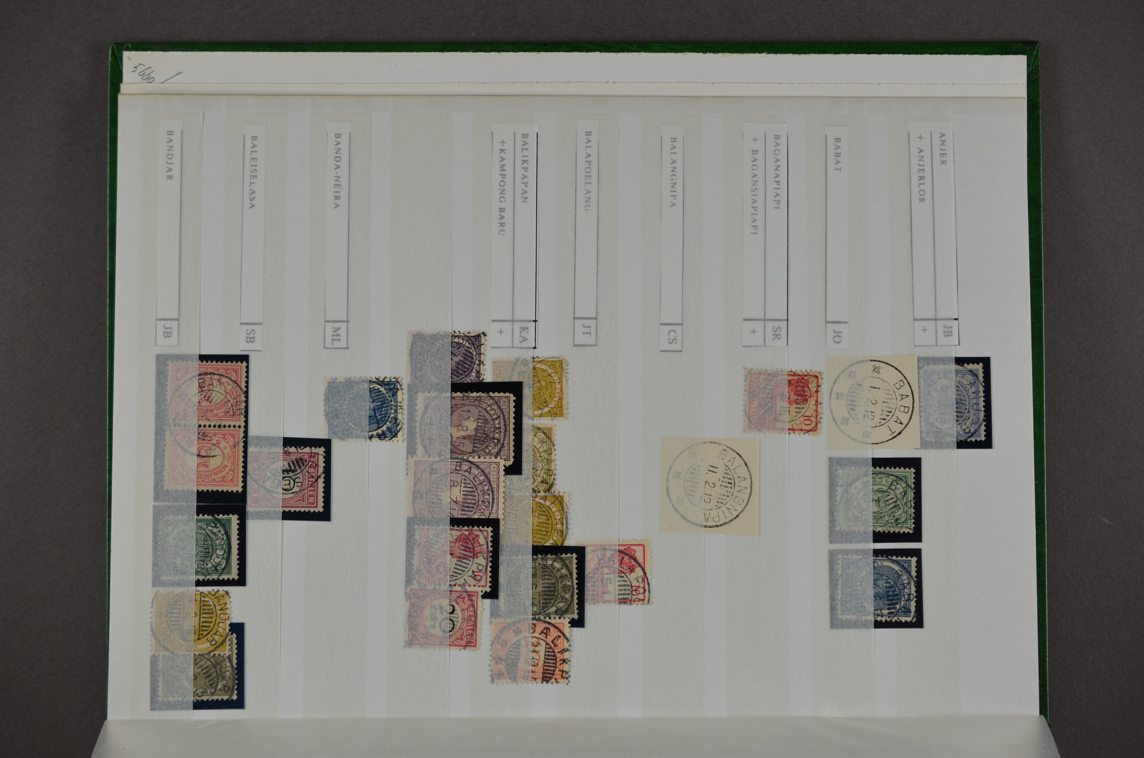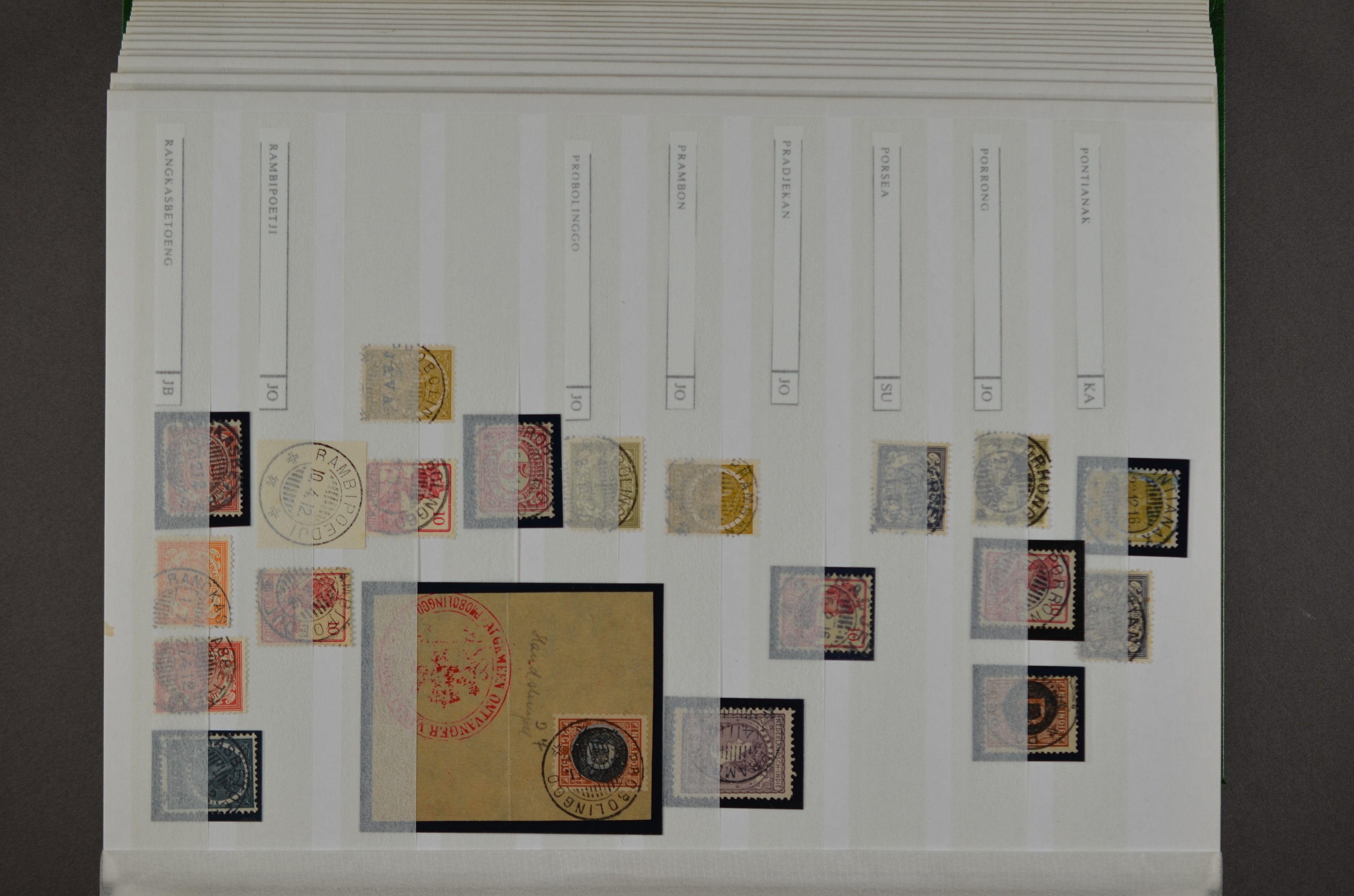 NED.- INDIË KORTEBALKSTEMPELS, geweldige verzameling in Mulder-kwaliteit van verschillende typen van eenzelfde kantoor op losse zegels en knipsels, met diverse stempels in violet, alfabetisch van A t/m W opgezet met veel schaarse en zeldzame kantoren zoals Anjer (R), Balei Selasa, Bojan (RR), Gianjar (R), Hina[ko] (RRR), Karimondjawa (R), Kotamobagoe, Mangoenredja, Moearateweh, Oeloe Siaoe, Padang-Oelak Tanding (RR), Pakanbaroe, Paloer (R), Pangoeroeran (R), Poespo, Rondeng (R), Samboe, Seulimeum, Soempioeh, Tagoelandang (RR), etc. Fantastische collectie van dit boeiende stempeltype om goed op te zetten of te detailleren