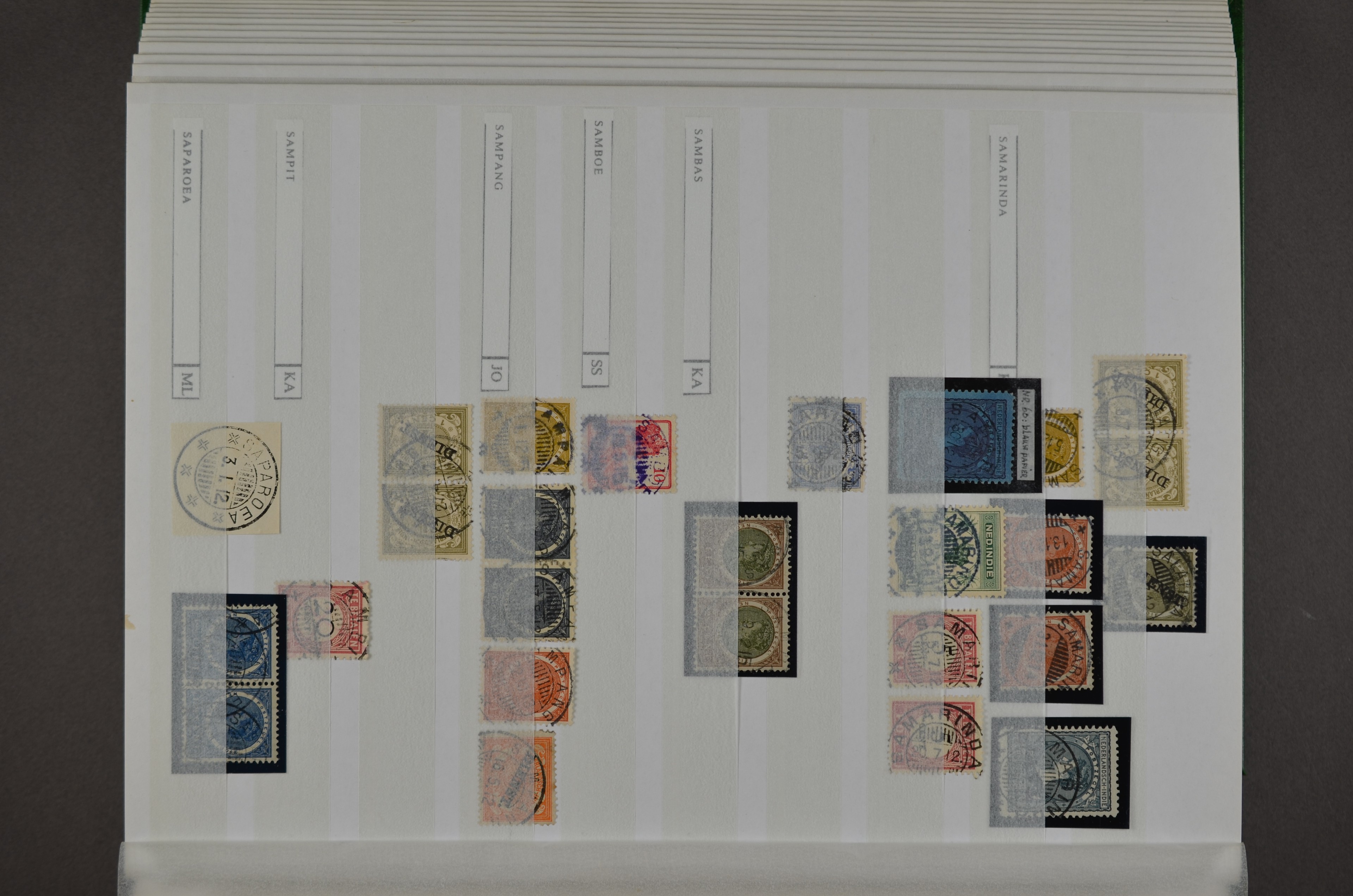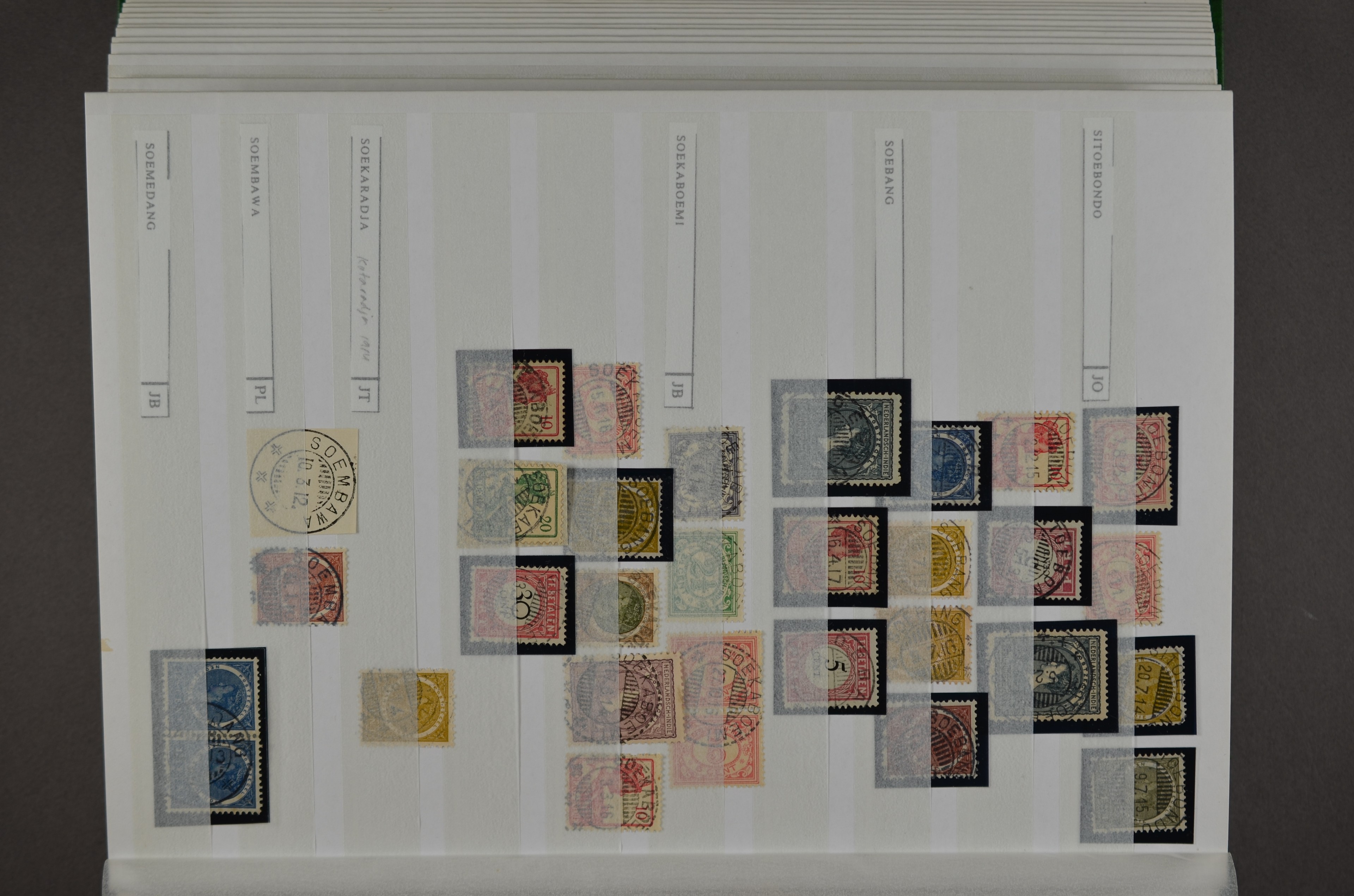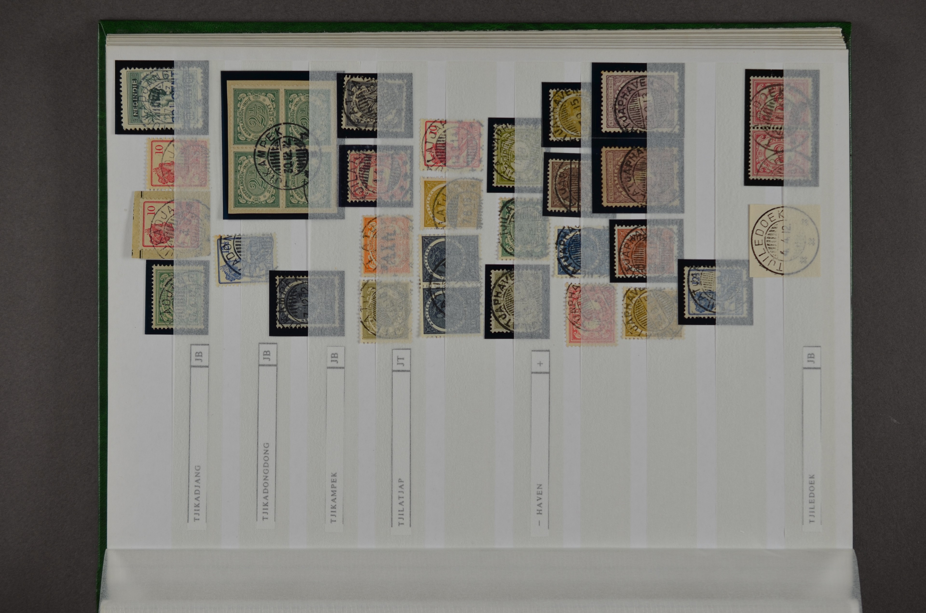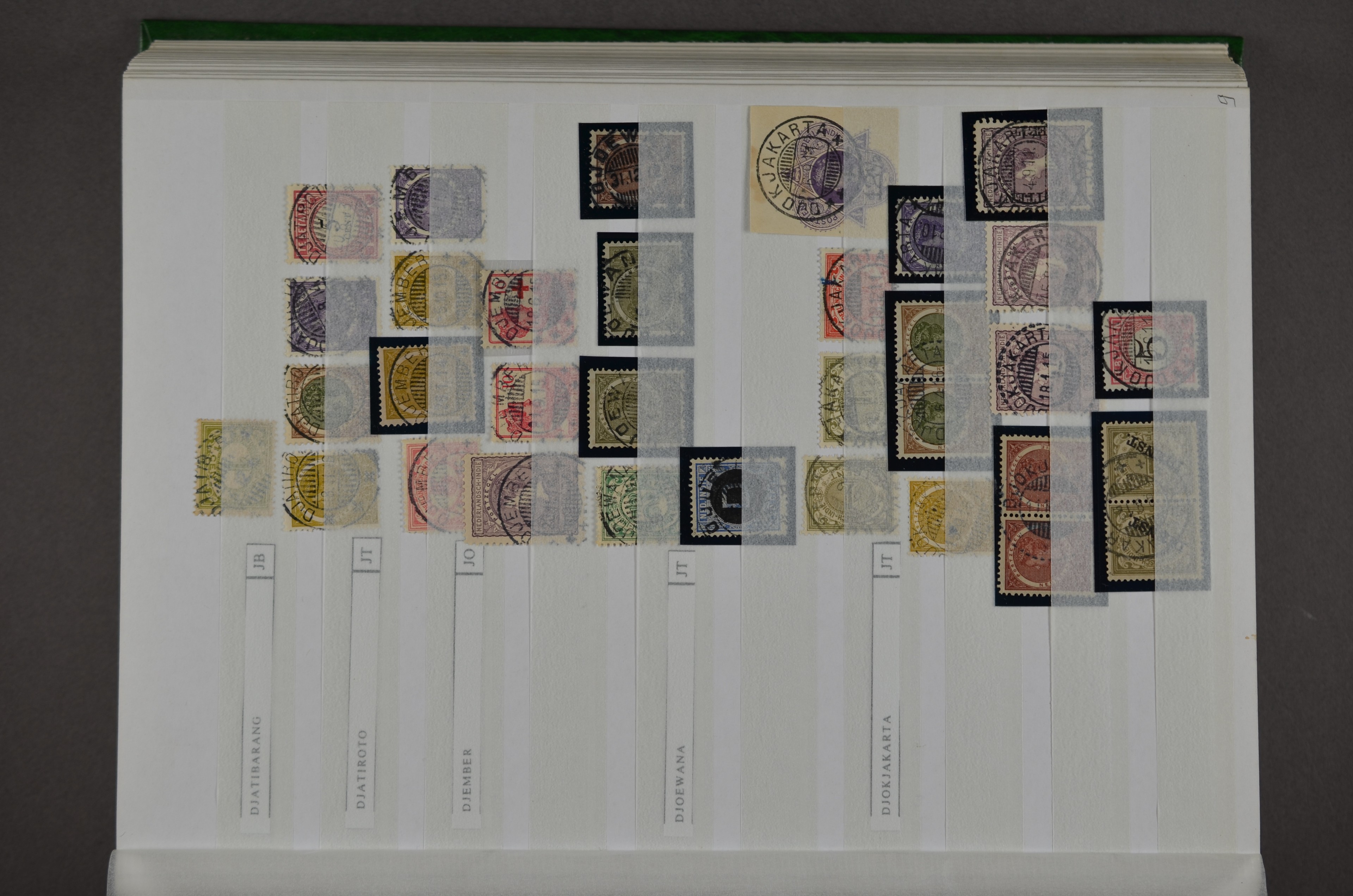 NED.- INDIË KORTEBALKSTEMPELS, geweldige verzameling in Mulder-kwaliteit van verschillende typen van eenzelfde kantoor op losse zegels en knipsels, met diverse stempels in violet, alfabetisch van A t/m W opgezet met veel schaarse en zeldzame kantoren zoals Anjer (R), Balei Selasa, Bojan (RR), Gianjar (R), Hina[ko] (RRR), Karimondjawa (R), Kotamobagoe, Mangoenredja, Moearateweh, Oeloe Siaoe, Padang-Oelak Tanding (RR), Pakanbaroe, Paloer (R), Pangoeroeran (R), Poespo, Rondeng (R), Samboe, Seulimeum, Soempioeh, Tagoelandang (RR), etc. Fantastische collectie van dit boeiende stempeltype om goed op te zetten of te detailleren
