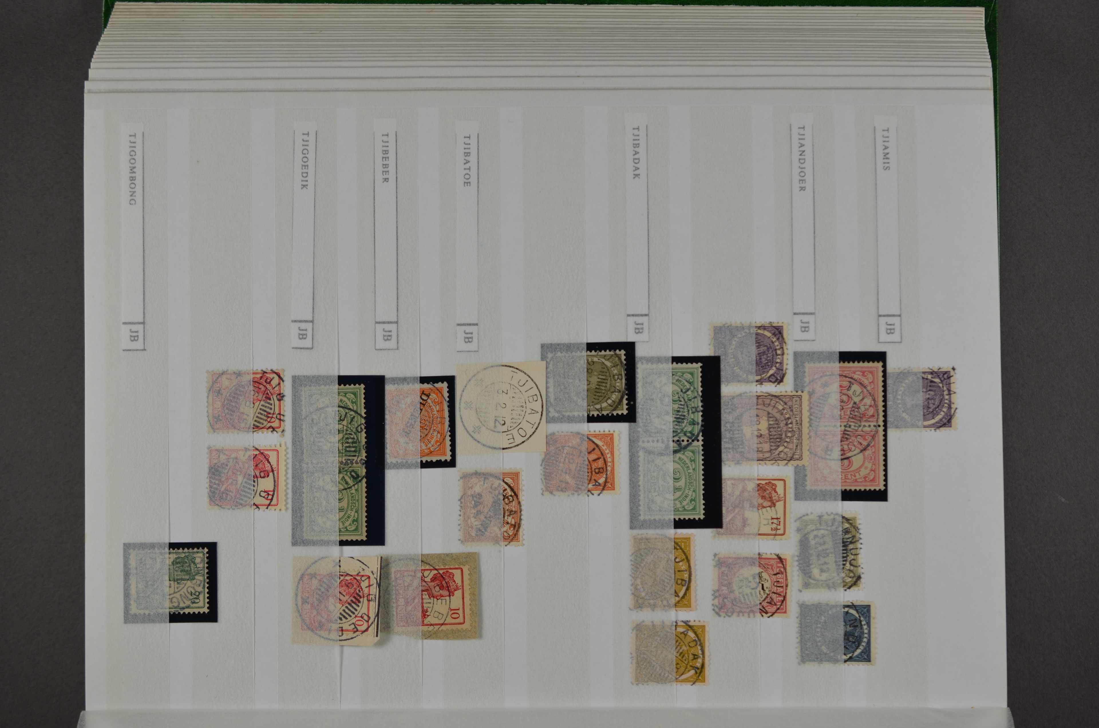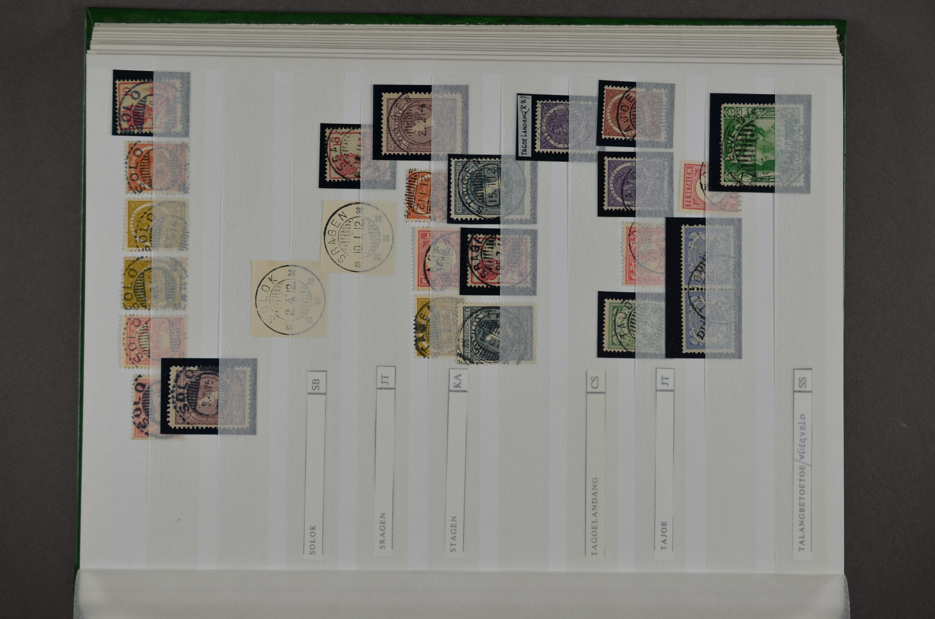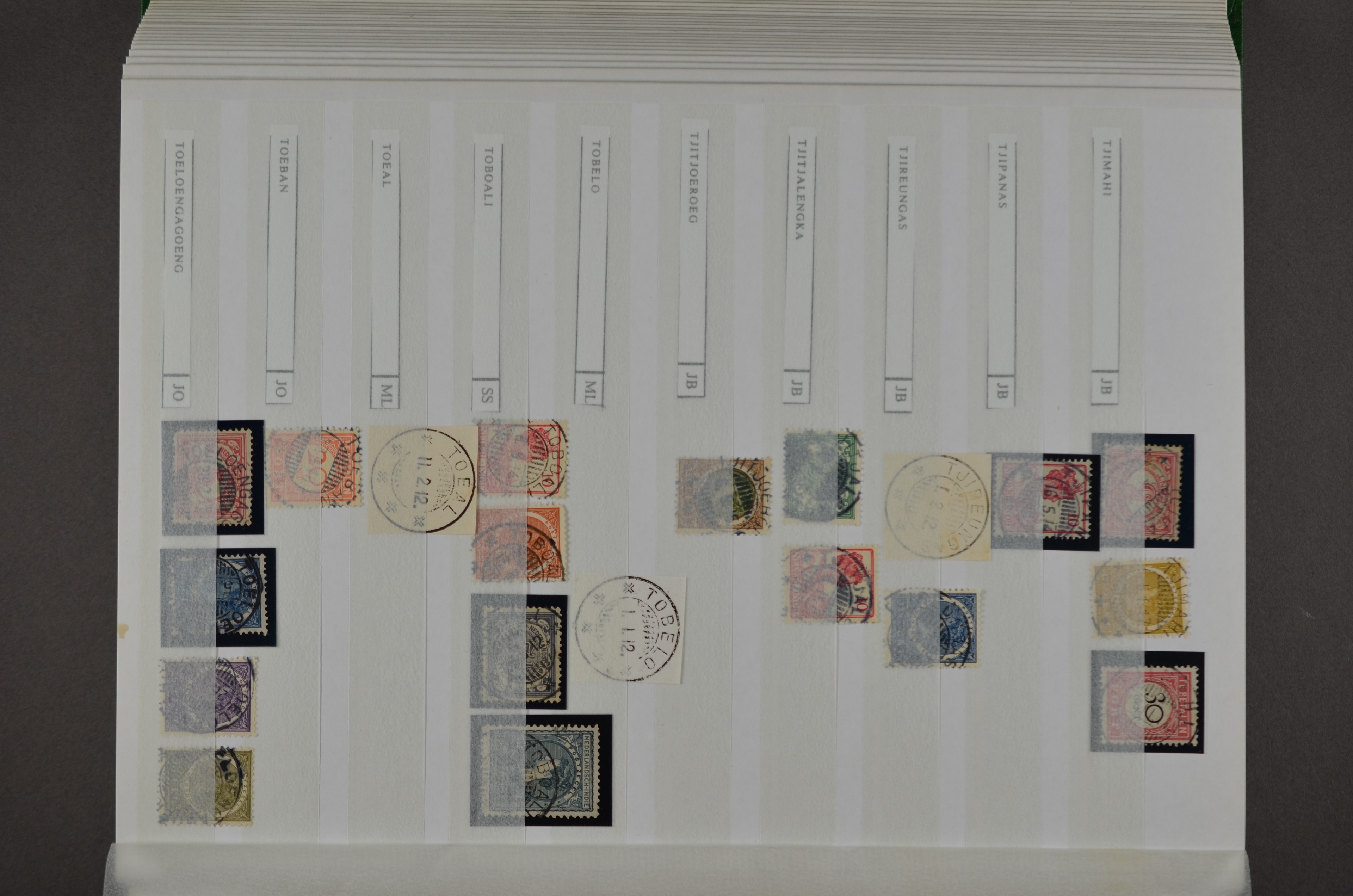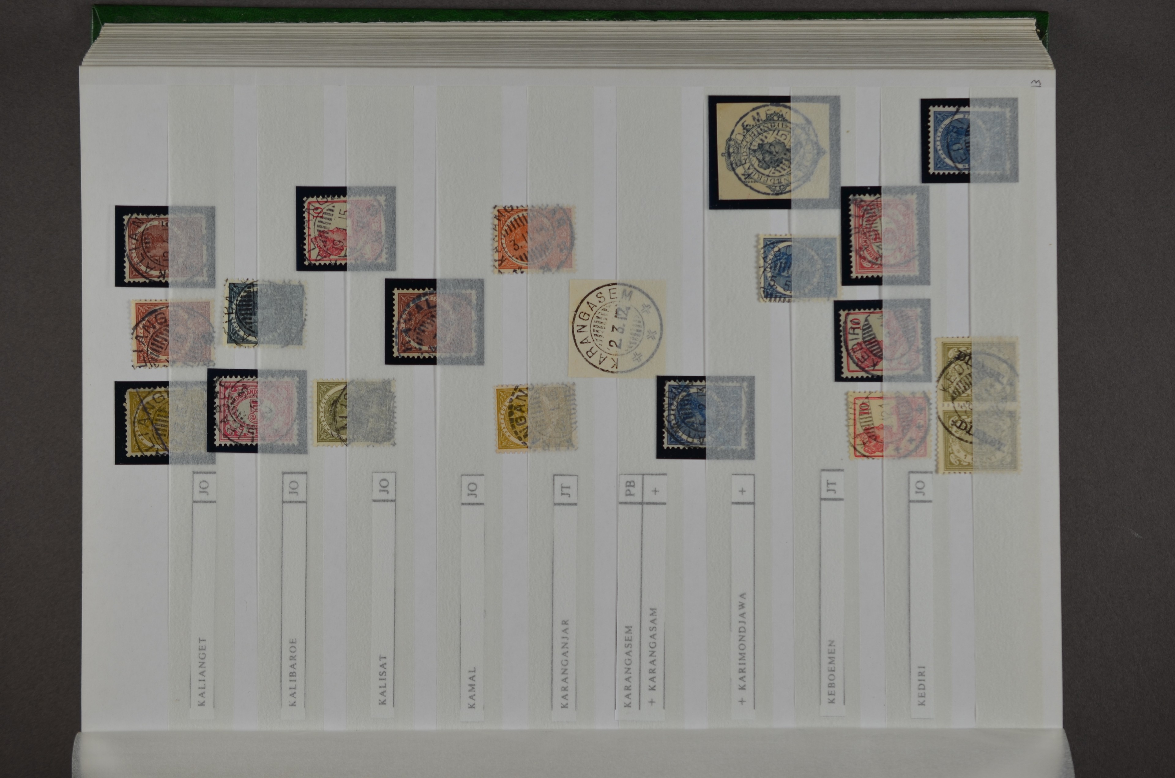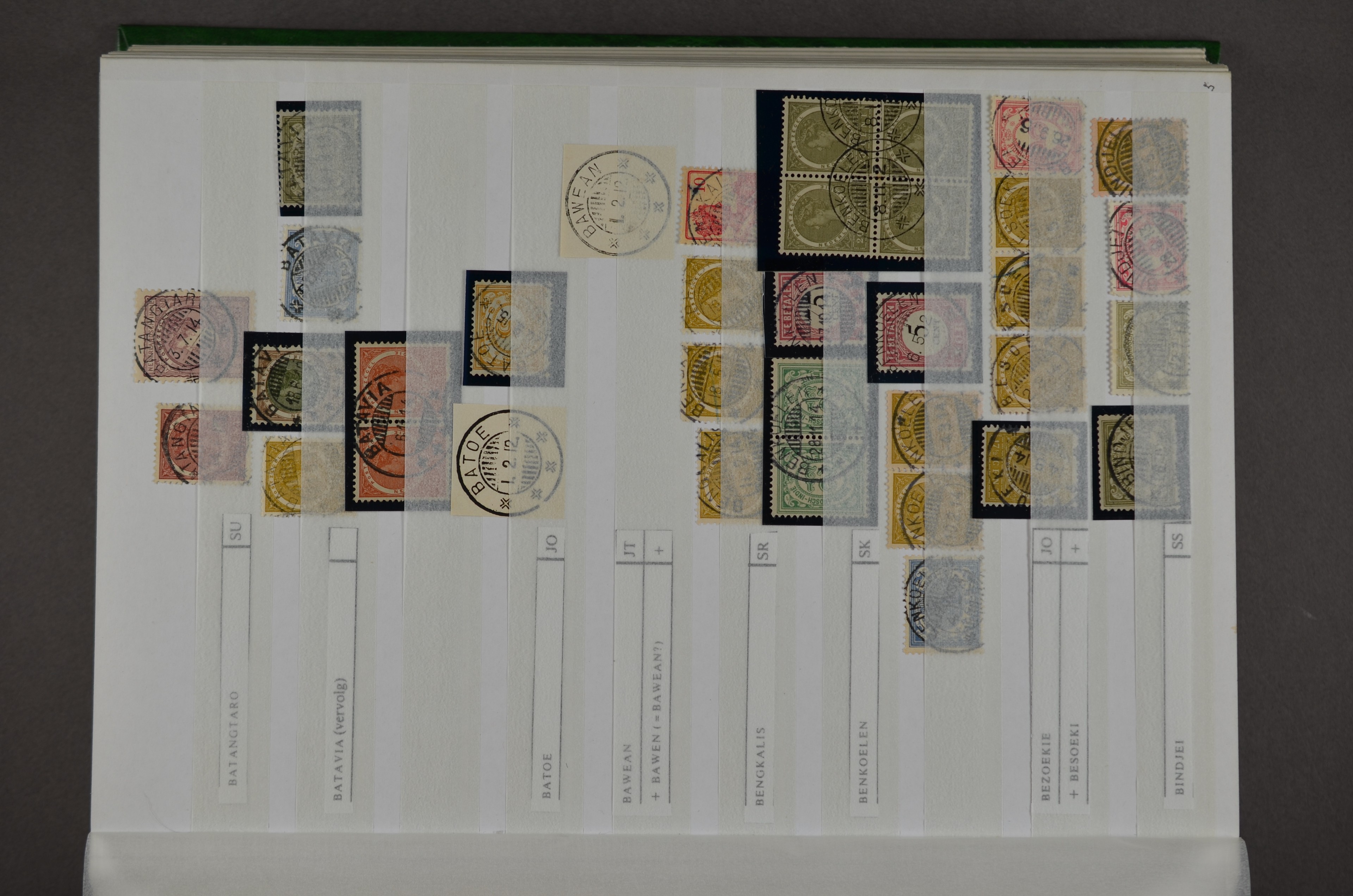 NED.- INDIË KORTEBALKSTEMPELS, geweldige verzameling in Mulder-kwaliteit van verschillende typen van eenzelfde kantoor op losse zegels en knipsels, met diverse stempels in violet, alfabetisch van A t/m W opgezet met veel schaarse en zeldzame kantoren zoals Anjer (R), Balei Selasa, Bojan (RR), Gianjar (R), Hina[ko] (RRR), Karimondjawa (R), Kotamobagoe, Mangoenredja, Moearateweh, Oeloe Siaoe, Padang-Oelak Tanding (RR), Pakanbaroe, Paloer (R), Pangoeroeran (R), Poespo, Rondeng (R), Samboe, Seulimeum, Soempioeh, Tagoelandang (RR), etc. Fantastische collectie van dit boeiende stempeltype om goed op te zetten of te detailleren