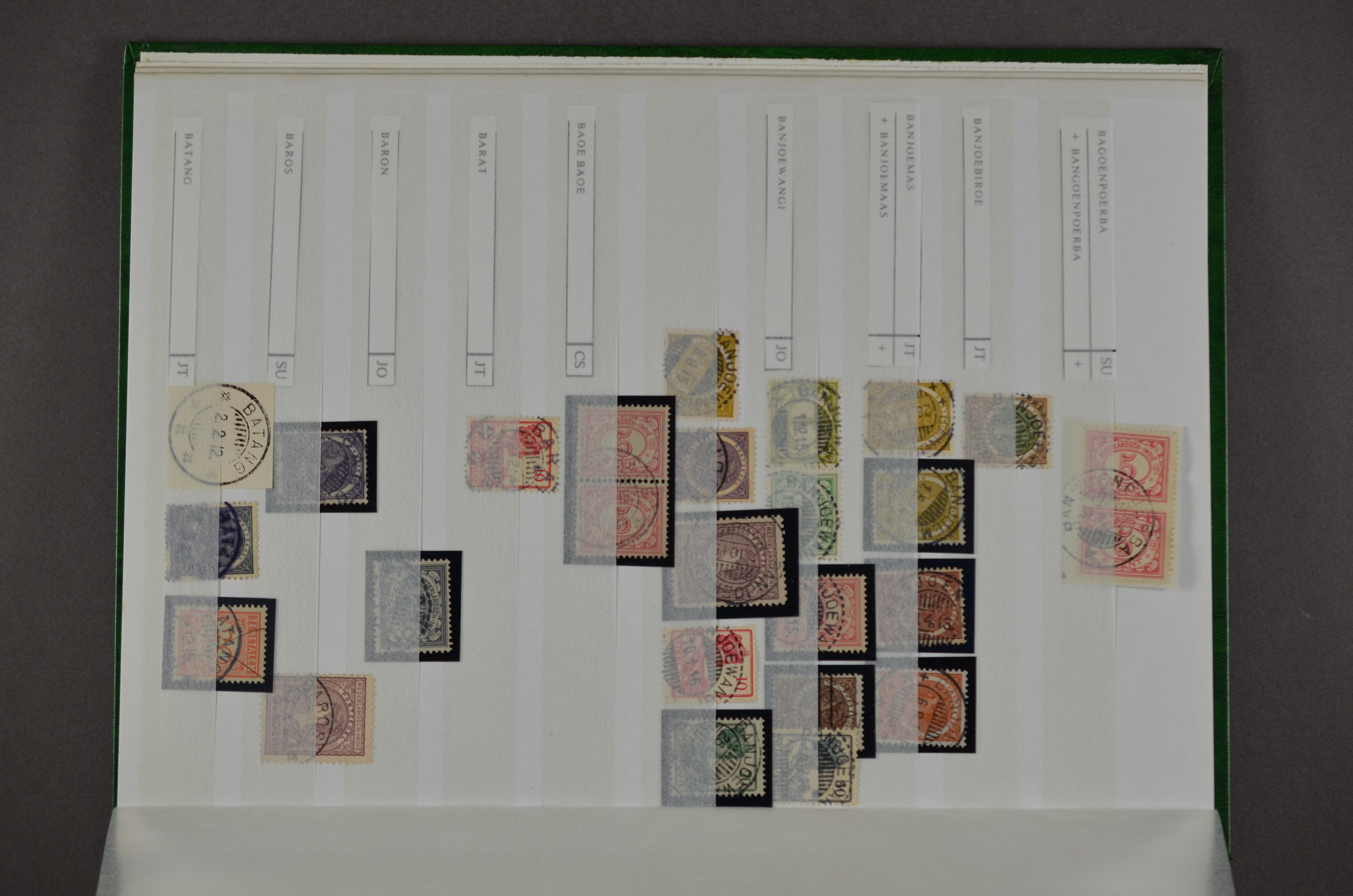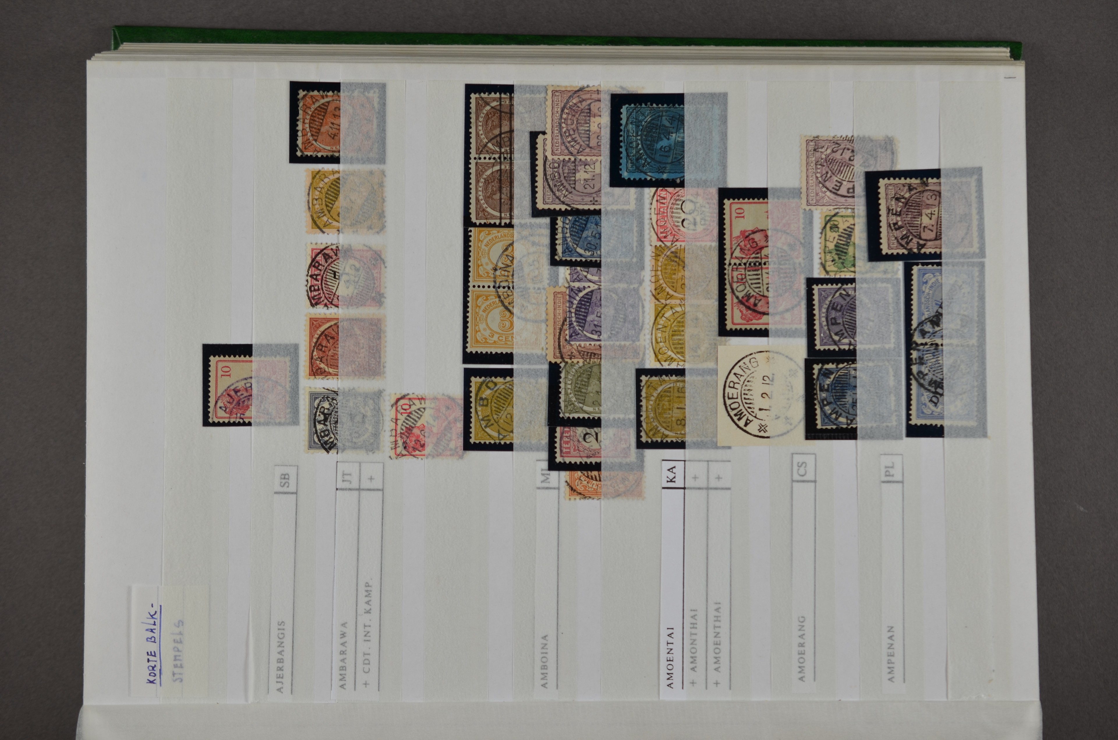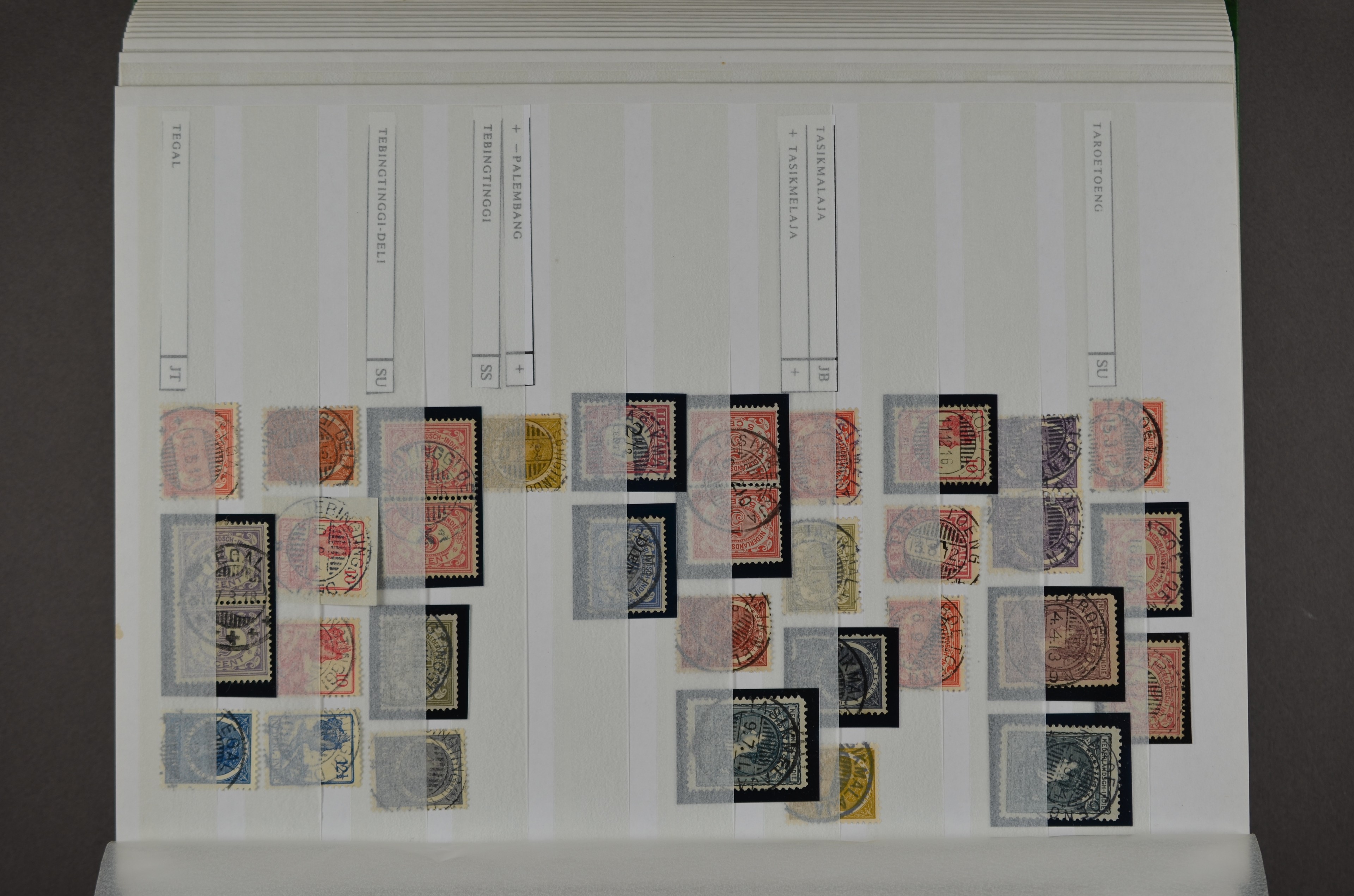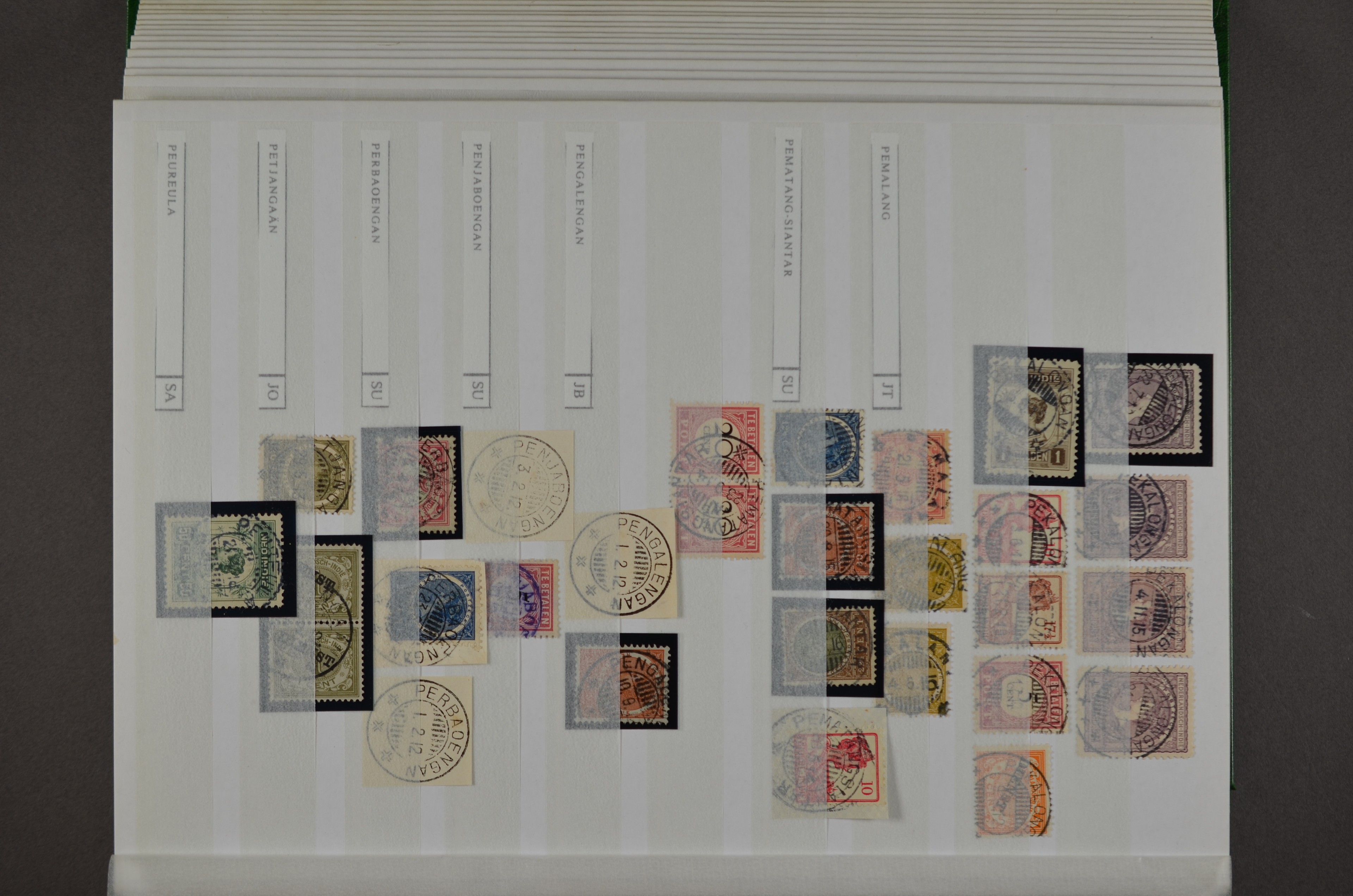 NED.- INDIË KORTEBALKSTEMPELS, geweldige verzameling in Mulder-kwaliteit van verschillende typen van eenzelfde kantoor op losse zegels en knipsels, met diverse stempels in violet, alfabetisch van A t/m W opgezet met veel schaarse en zeldzame kantoren zoals Anjer (R), Balei Selasa, Bojan (RR), Gianjar (R), Hina[ko] (RRR), Karimondjawa (R), Kotamobagoe, Mangoenredja, Moearateweh, Oeloe Siaoe, Padang-Oelak Tanding (RR), Pakanbaroe, Paloer (R), Pangoeroeran (R), Poespo, Rondeng (R), Samboe, Seulimeum, Soempioeh, Tagoelandang (RR), etc. Fantastische collectie van dit boeiende stempeltype om goed op te zetten of te detailleren