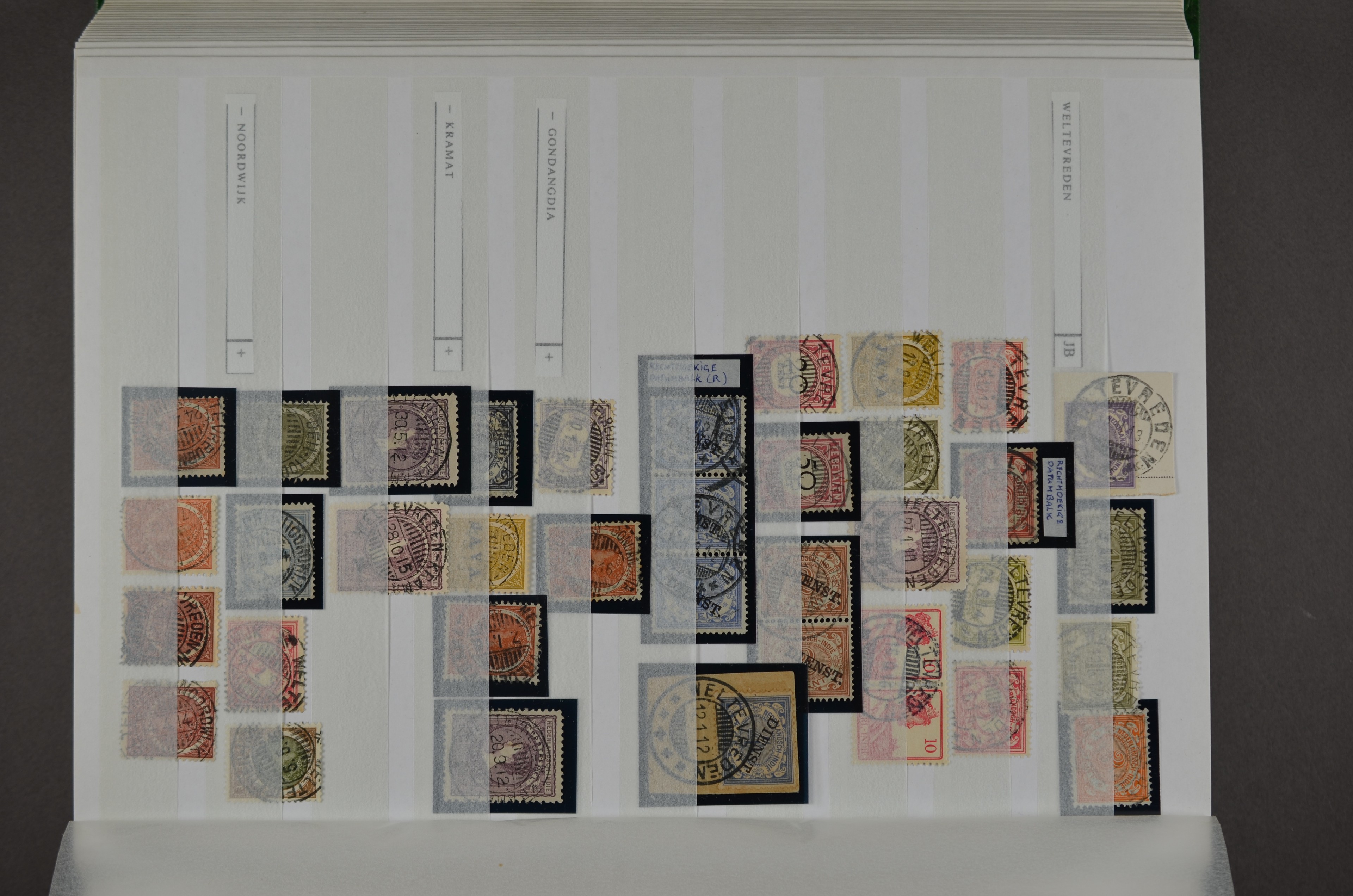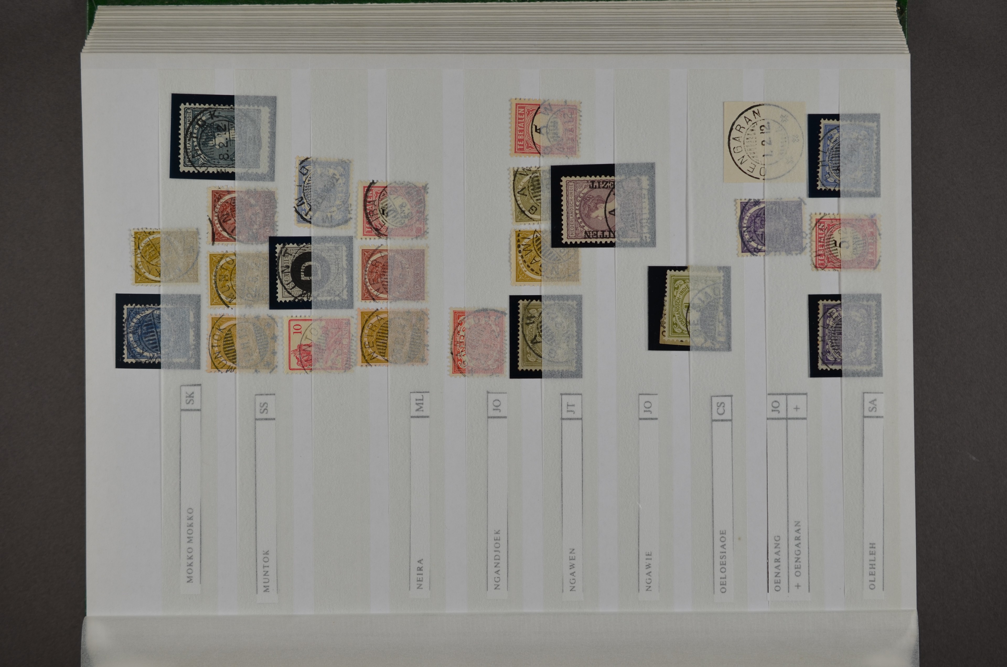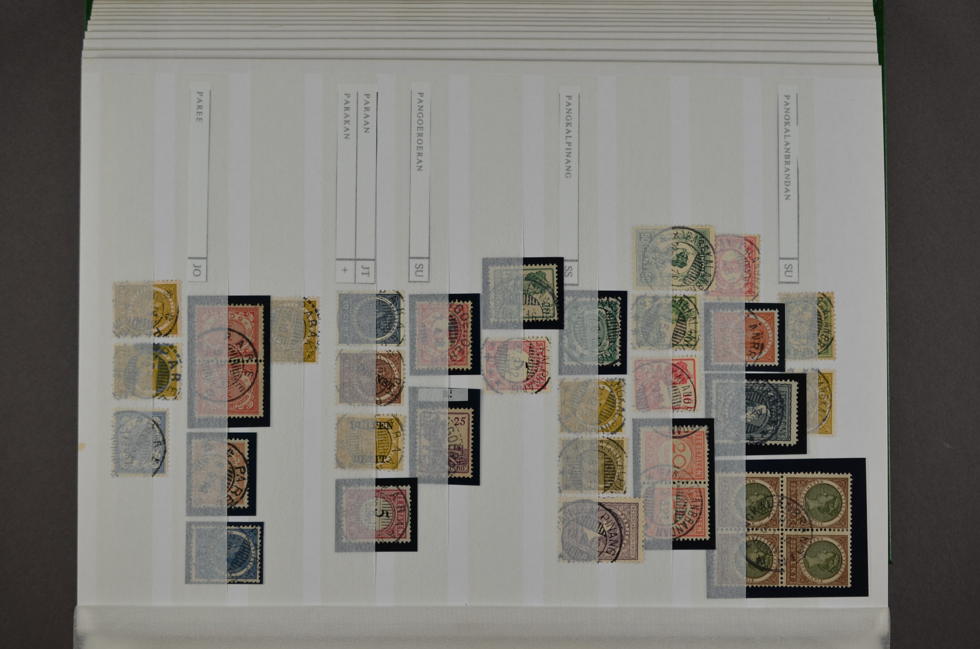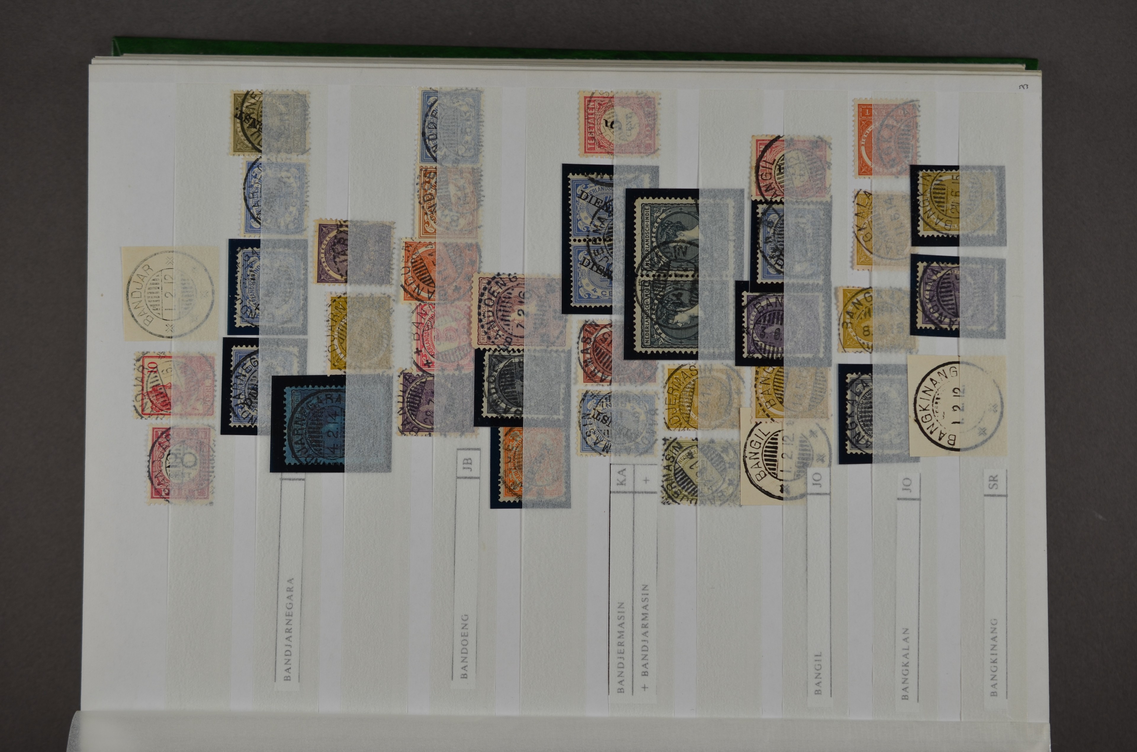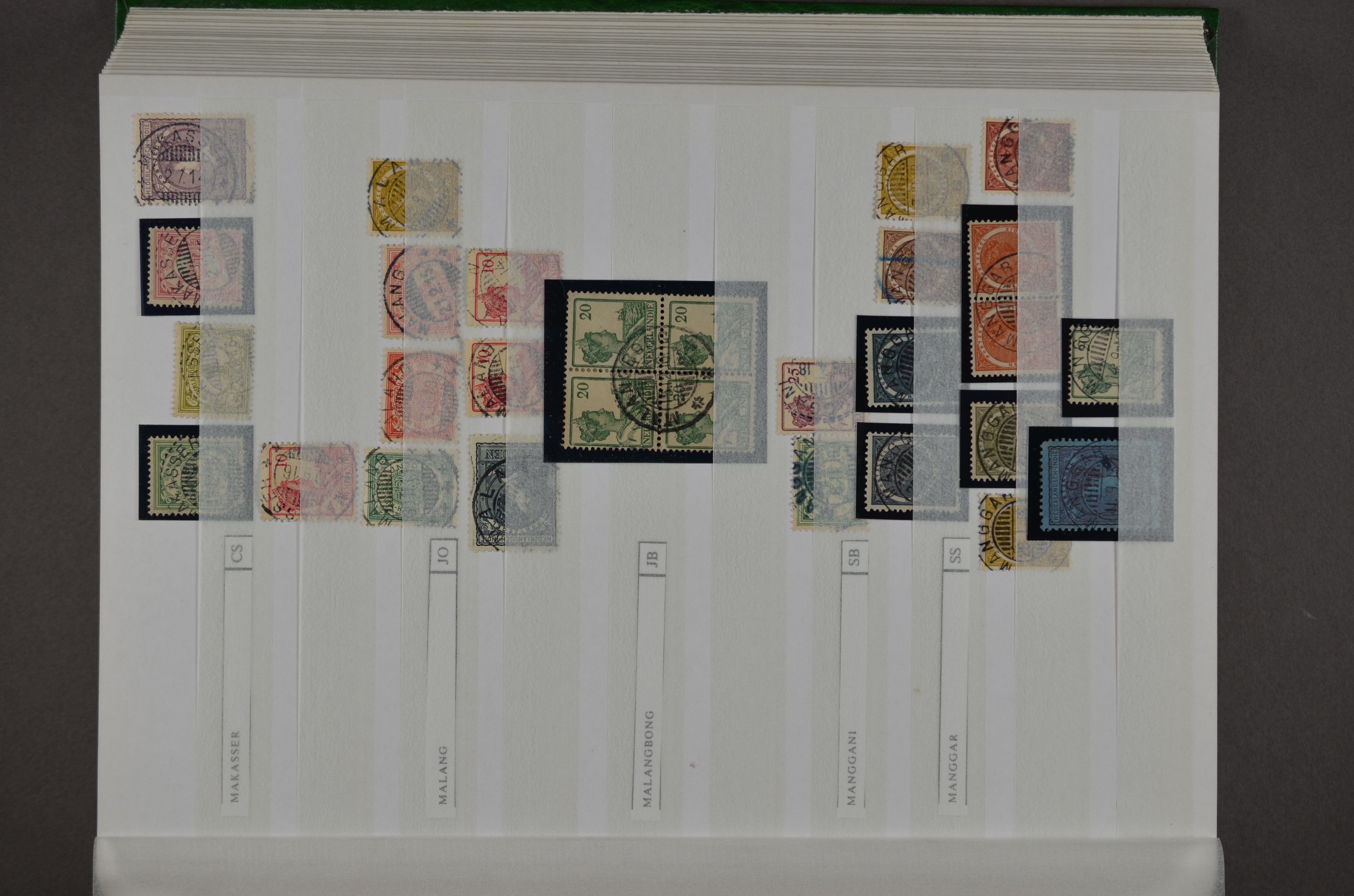 NED.- INDIË KORTEBALKSTEMPELS, geweldige verzameling in Mulder-kwaliteit van verschillende typen van eenzelfde kantoor op losse zegels en knipsels, met diverse stempels in violet, alfabetisch van A t/m W opgezet met veel schaarse en zeldzame kantoren zoals Anjer (R), Balei Selasa, Bojan (RR), Gianjar (R), Hina[ko] (RRR), Karimondjawa (R), Kotamobagoe, Mangoenredja, Moearateweh, Oeloe Siaoe, Padang-Oelak Tanding (RR), Pakanbaroe, Paloer (R), Pangoeroeran (R), Poespo, Rondeng (R), Samboe, Seulimeum, Soempioeh, Tagoelandang (RR), etc. Fantastische collectie van dit boeiende stempeltype om goed op te zetten of te detailleren