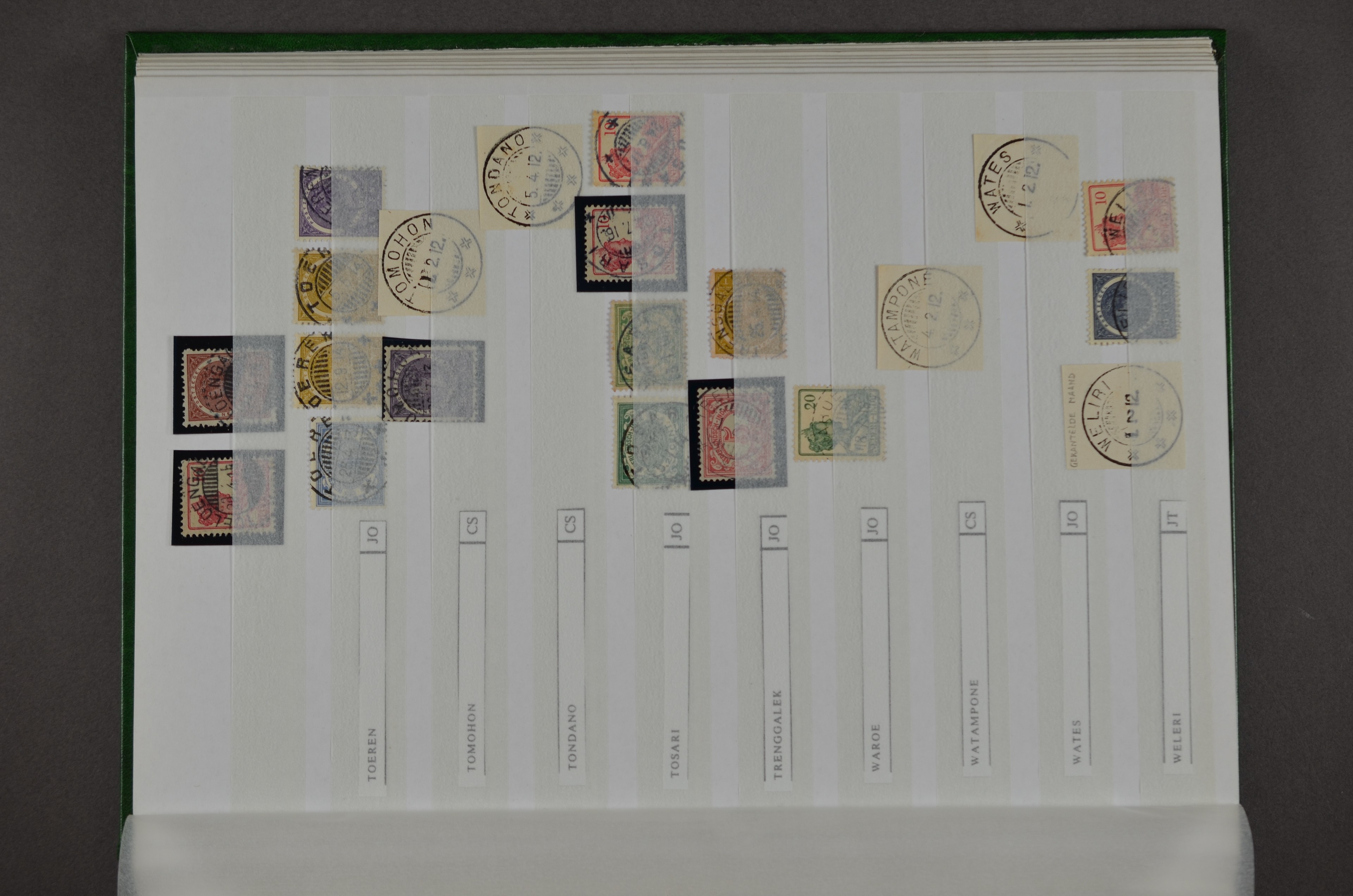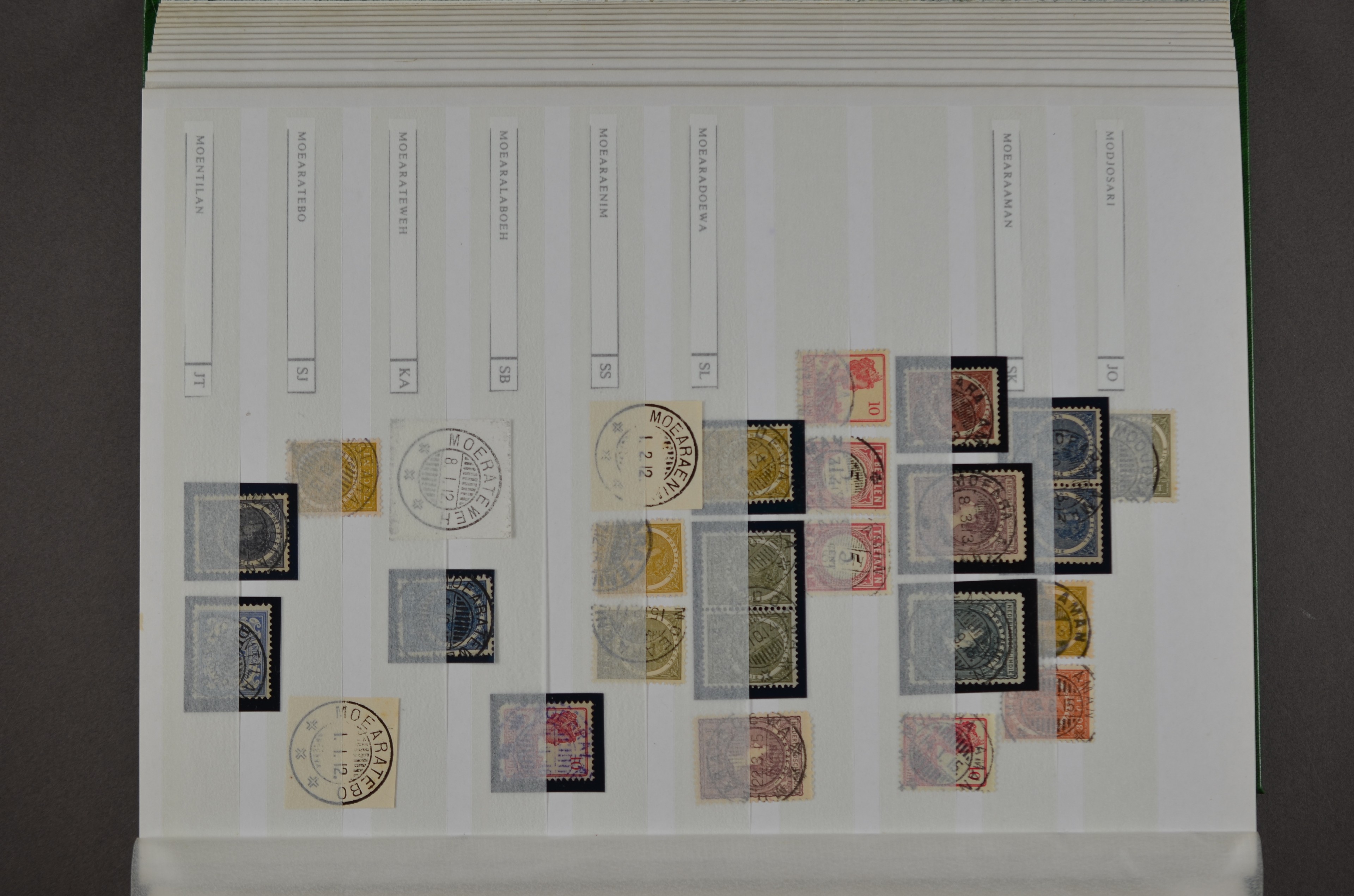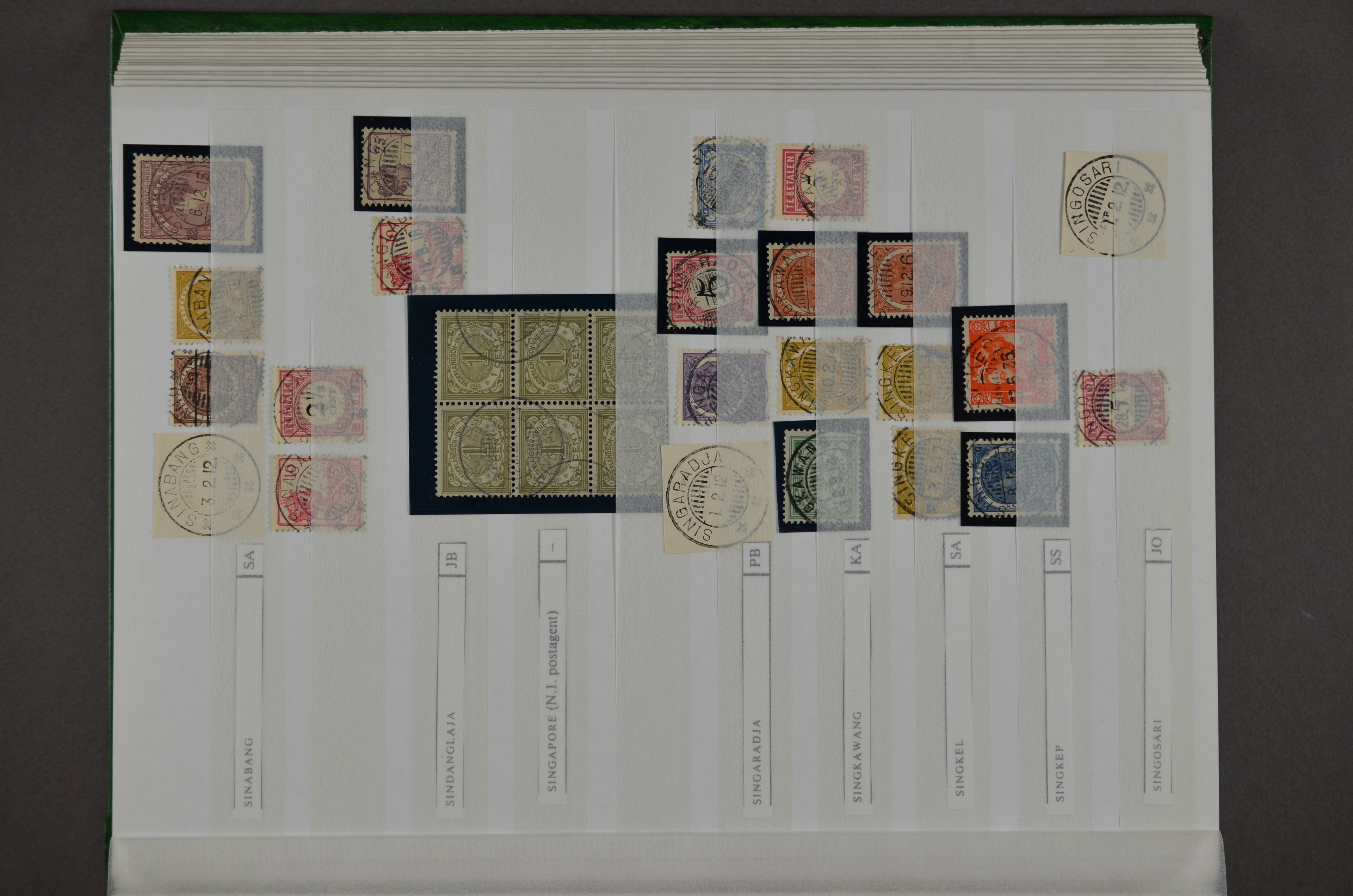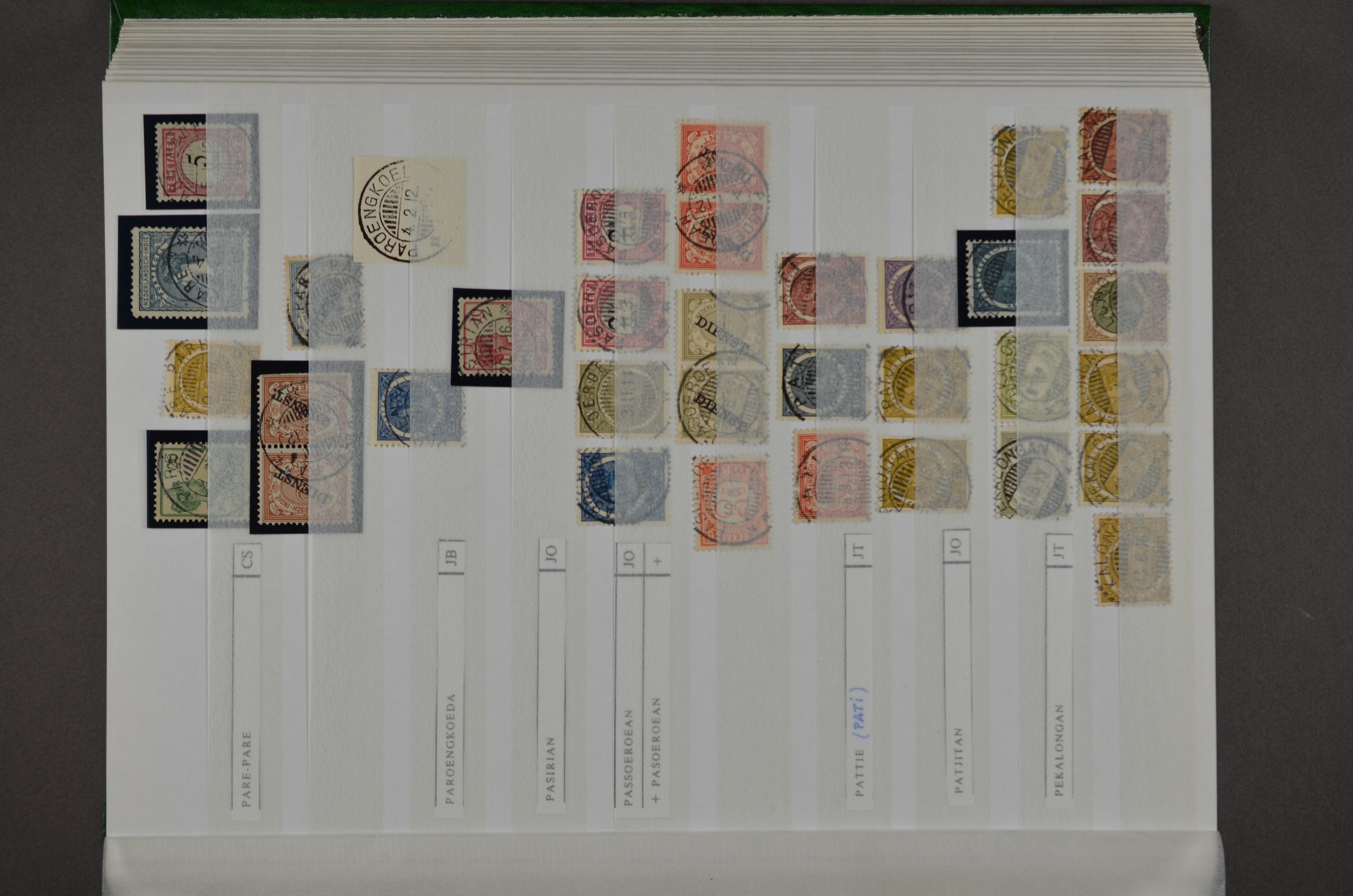 NED.- INDIË KORTEBALKSTEMPELS, geweldige verzameling in Mulder-kwaliteit van verschillende typen van eenzelfde kantoor op losse zegels en knipsels, met diverse stempels in violet, alfabetisch van A t/m W opgezet met veel schaarse en zeldzame kantoren zoals Anjer (R), Balei Selasa, Bojan (RR), Gianjar (R), Hina[ko] (RRR), Karimondjawa (R), Kotamobagoe, Mangoenredja, Moearateweh, Oeloe Siaoe, Padang-Oelak Tanding (RR), Pakanbaroe, Paloer (R), Pangoeroeran (R), Poespo, Rondeng (R), Samboe, Seulimeum, Soempioeh, Tagoelandang (RR), etc. Fantastische collectie van dit boeiende stempeltype om goed op te zetten of te detailleren