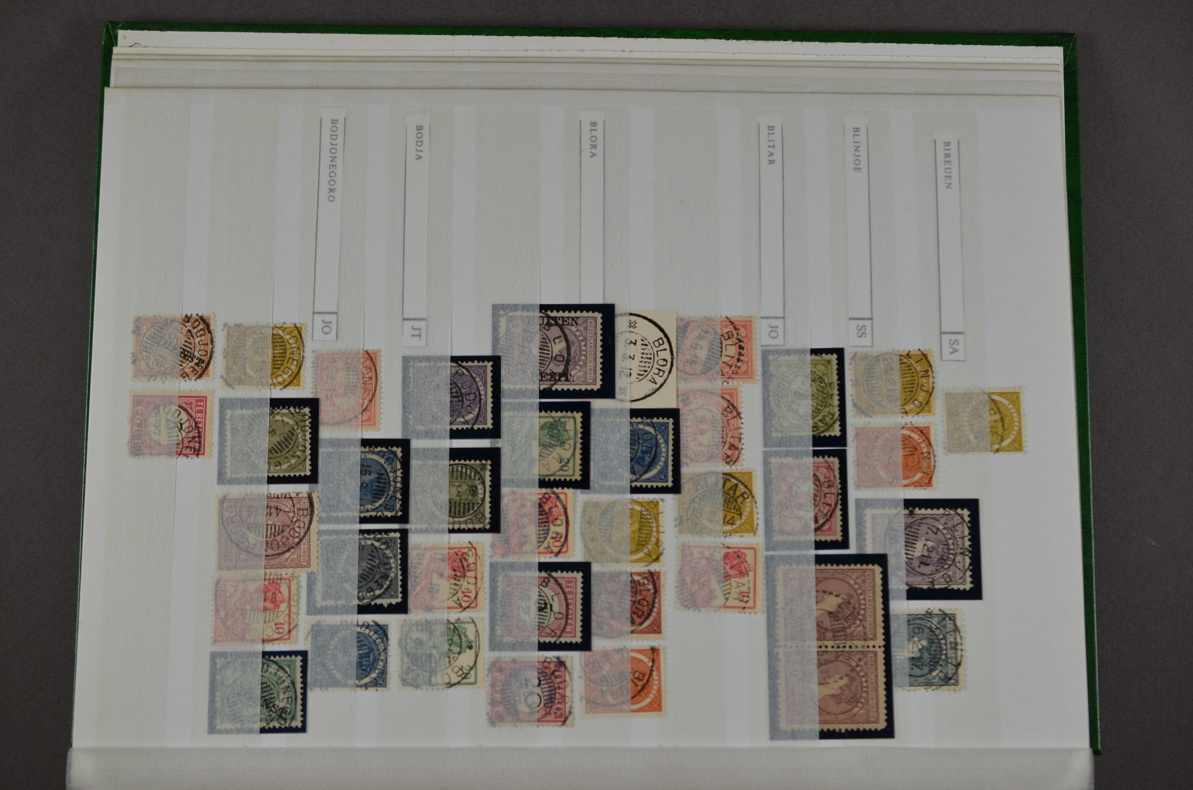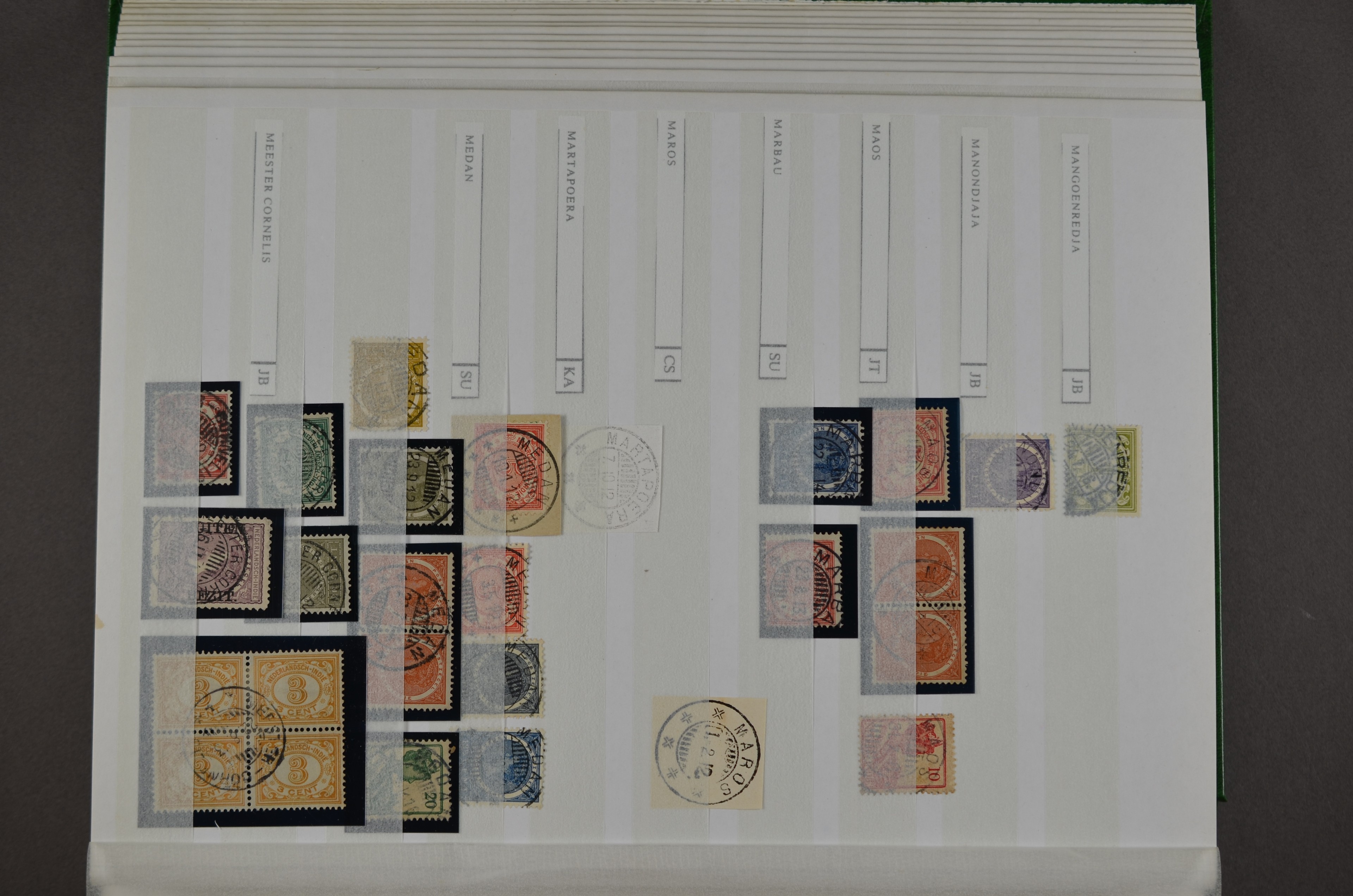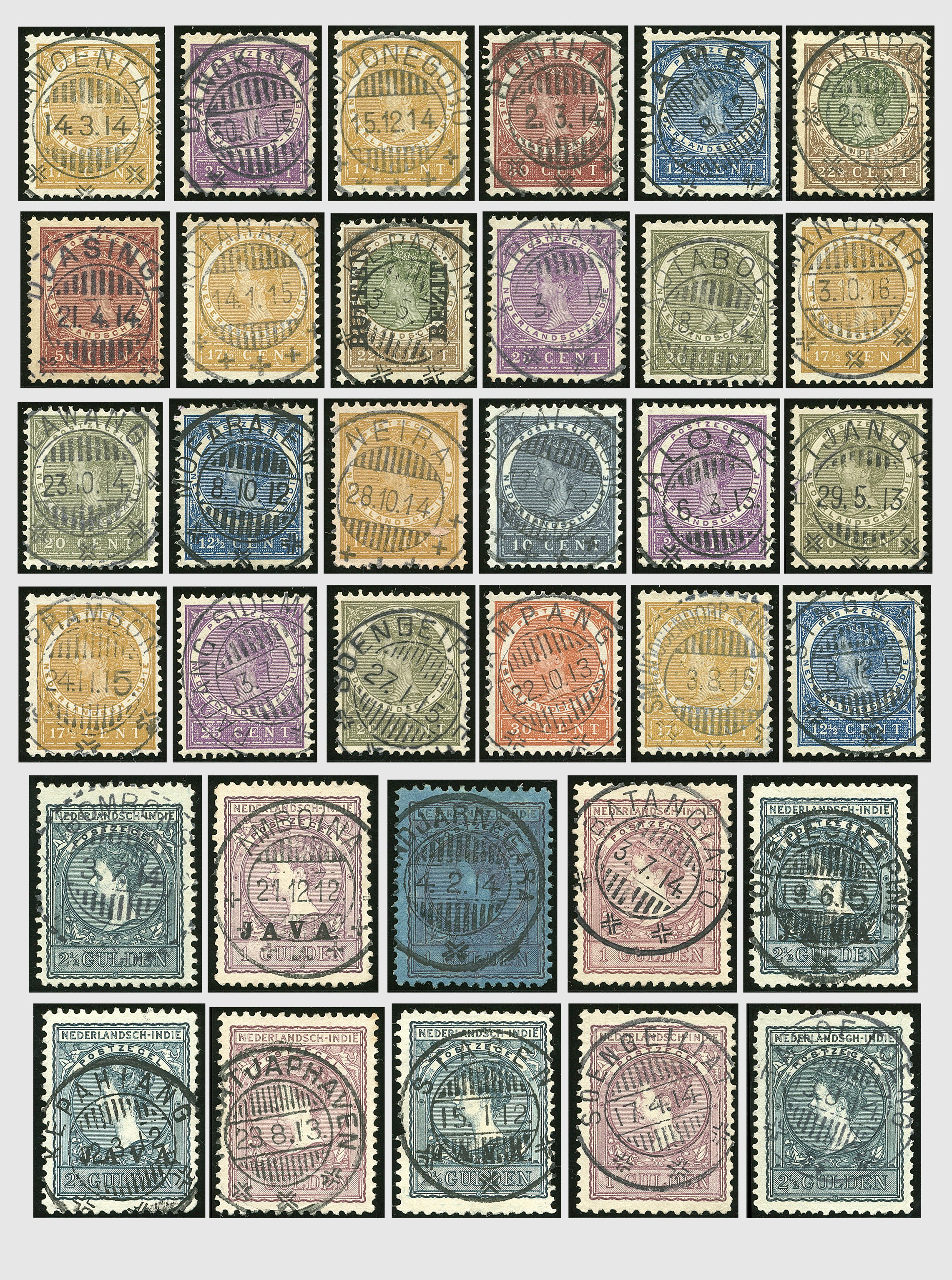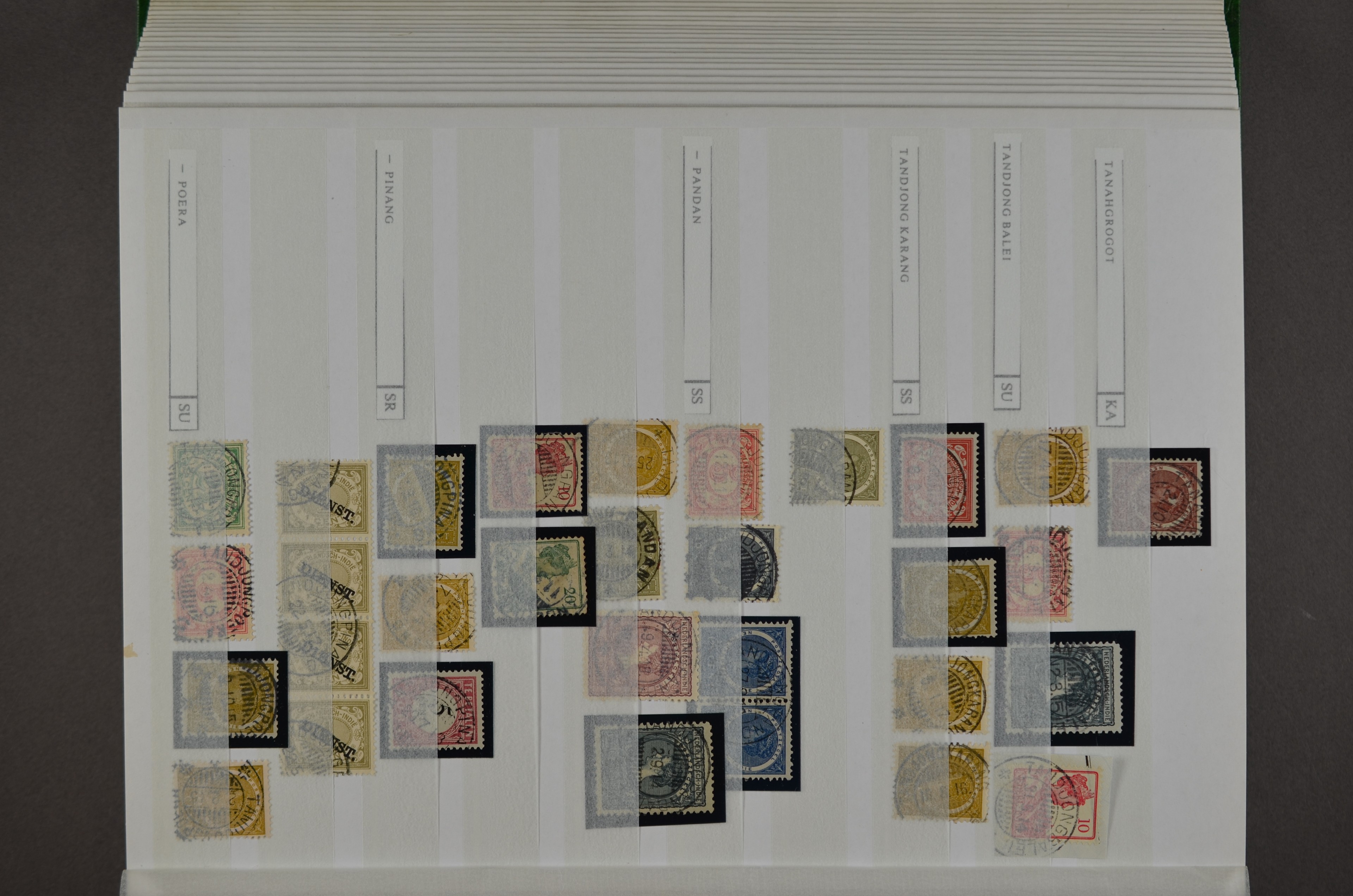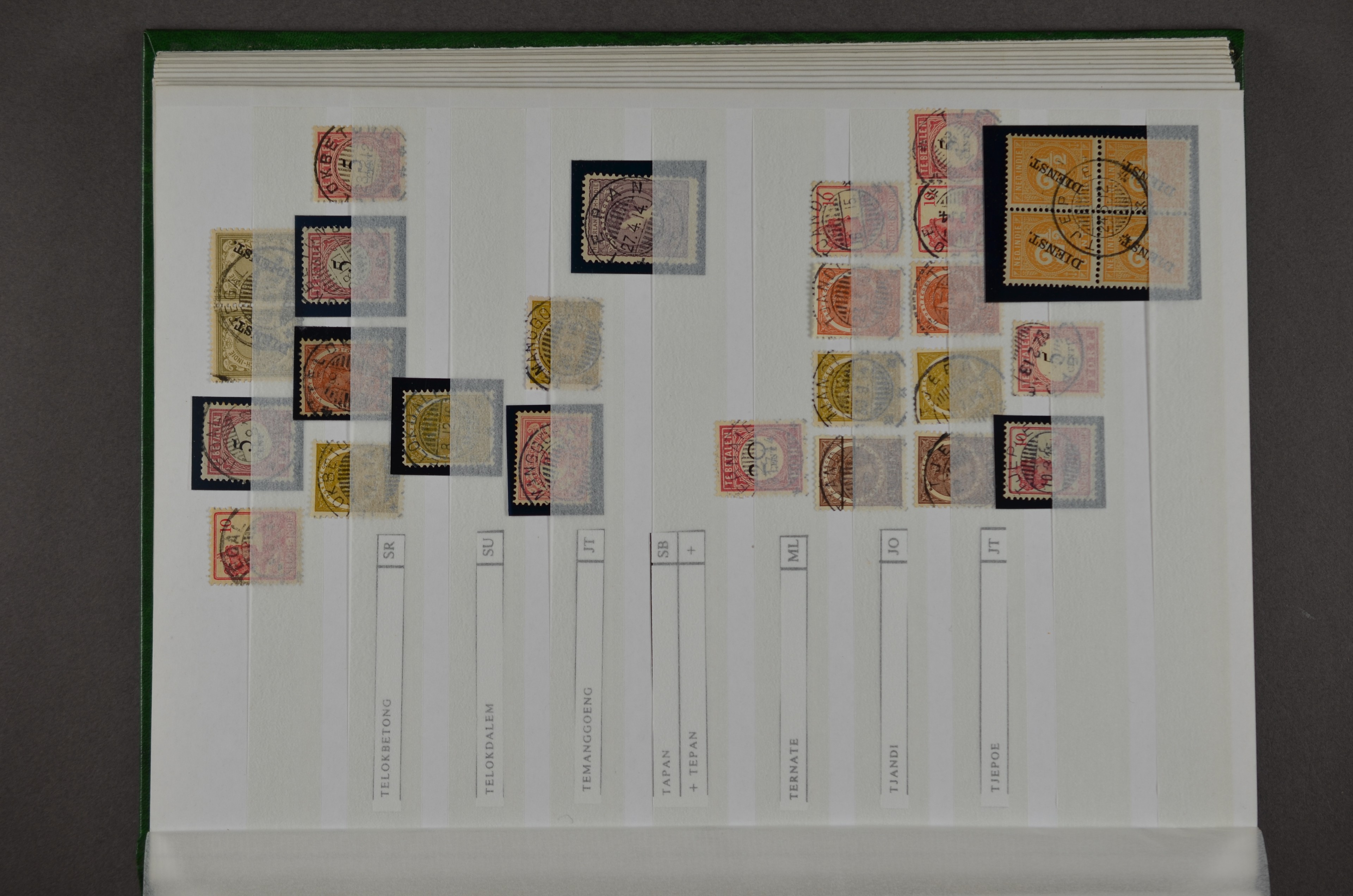 NED.- INDIË KORTEBALKSTEMPELS, geweldige verzameling in Mulder-kwaliteit van verschillende typen van eenzelfde kantoor op losse zegels en knipsels, met diverse stempels in violet, alfabetisch van A t/m W opgezet met veel schaarse en zeldzame kantoren zoals Anjer (R), Balei Selasa, Bojan (RR), Gianjar (R), Hina[ko] (RRR), Karimondjawa (R), Kotamobagoe, Mangoenredja, Moearateweh, Oeloe Siaoe, Padang-Oelak Tanding (RR), Pakanbaroe, Paloer (R), Pangoeroeran (R), Poespo, Rondeng (R), Samboe, Seulimeum, Soempioeh, Tagoelandang (RR), etc. Fantastische collectie van dit boeiende stempeltype om goed op te zetten of te detailleren