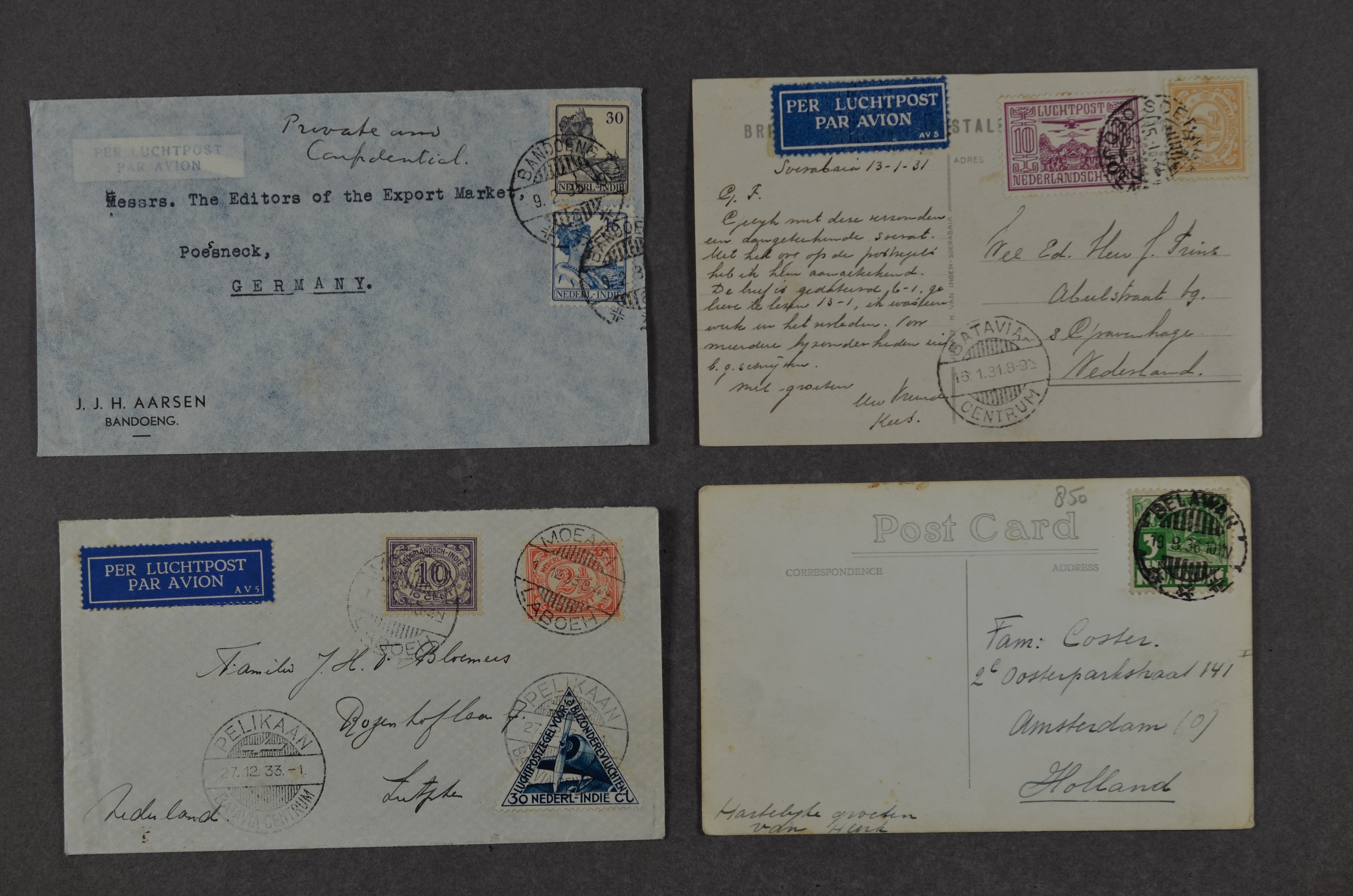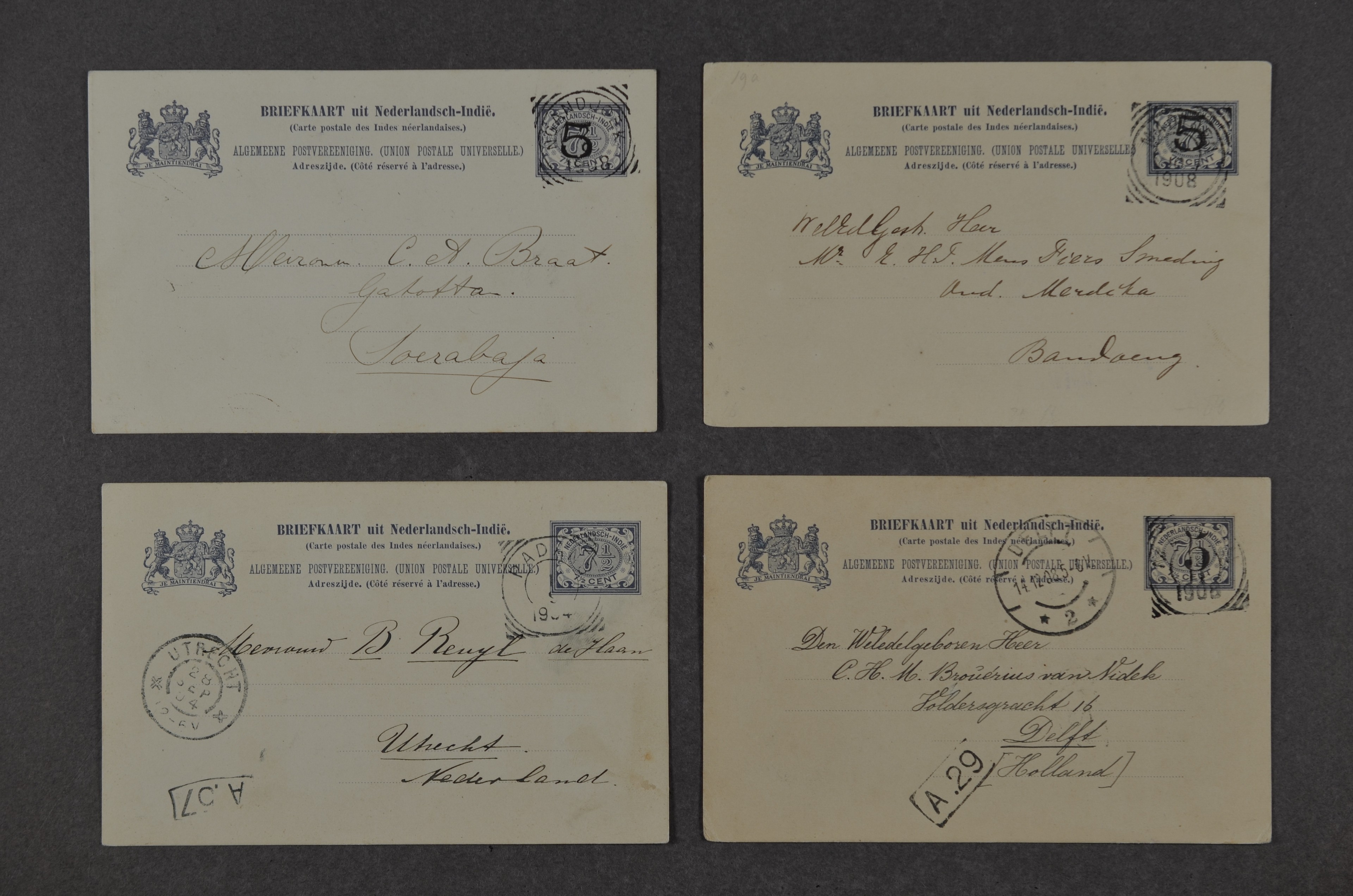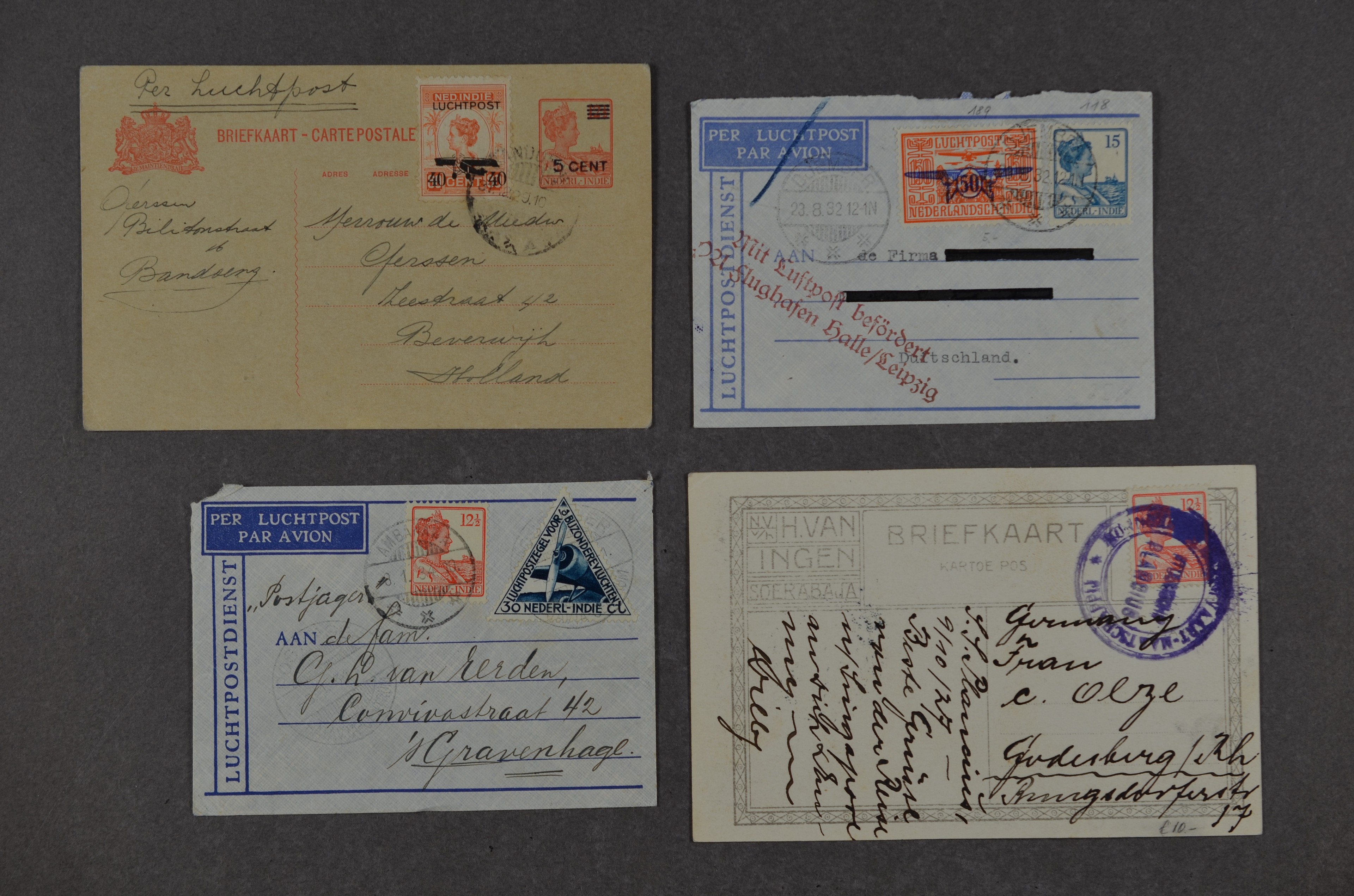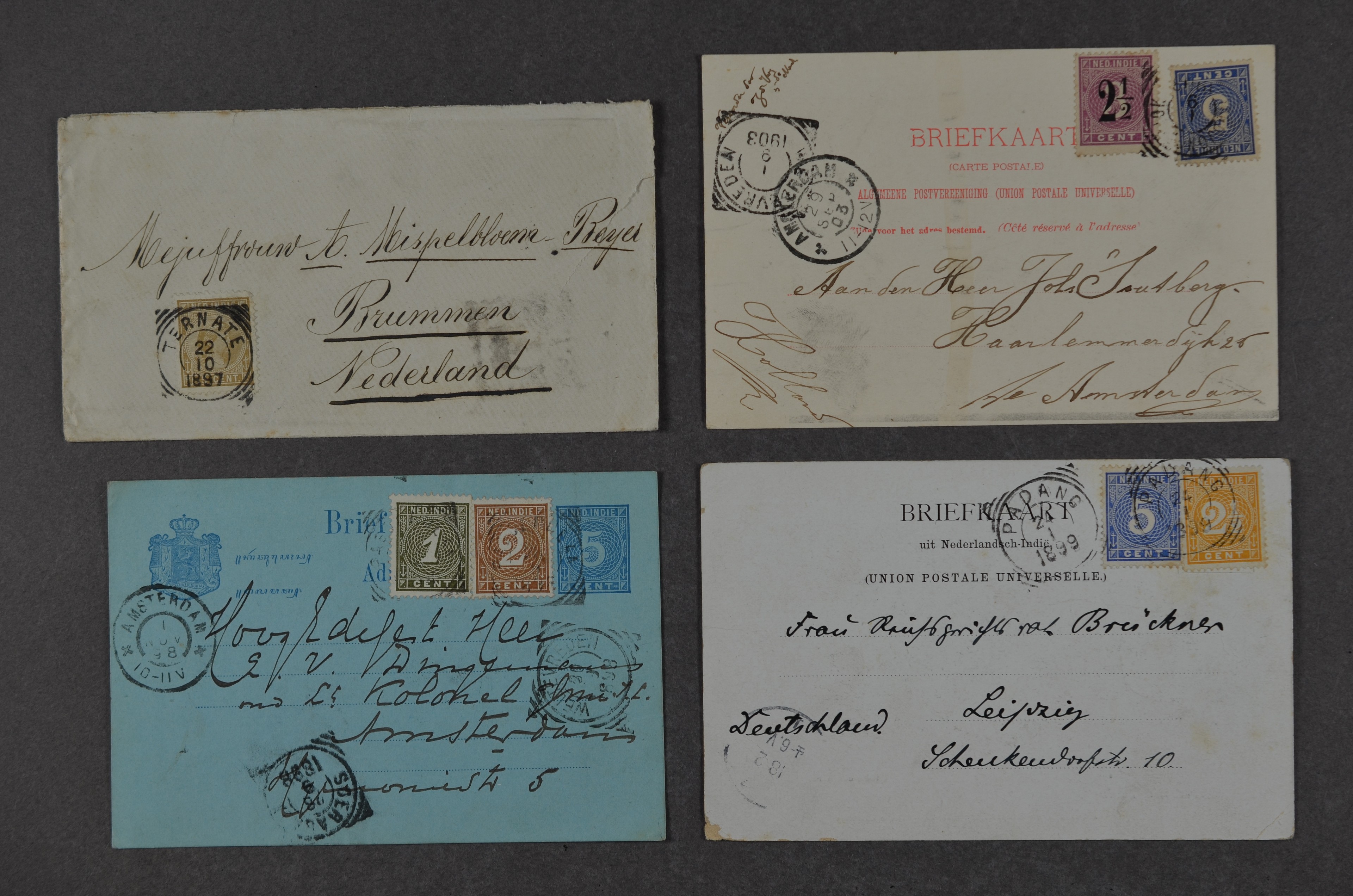 NED.- INDIË, meer dan 425 poststukken vanaf ca. 1860 w.o. met mooie frankeringen, allerlei soorten stempels incl. propaganda/gelegenheid (met iets uit Japanse bezetting), aangetekend, expresse, censuur, luchtpost, tevens iets Ned. Nieuw-Guinea w.o. 2 met Nederlandse portzegels, etc.