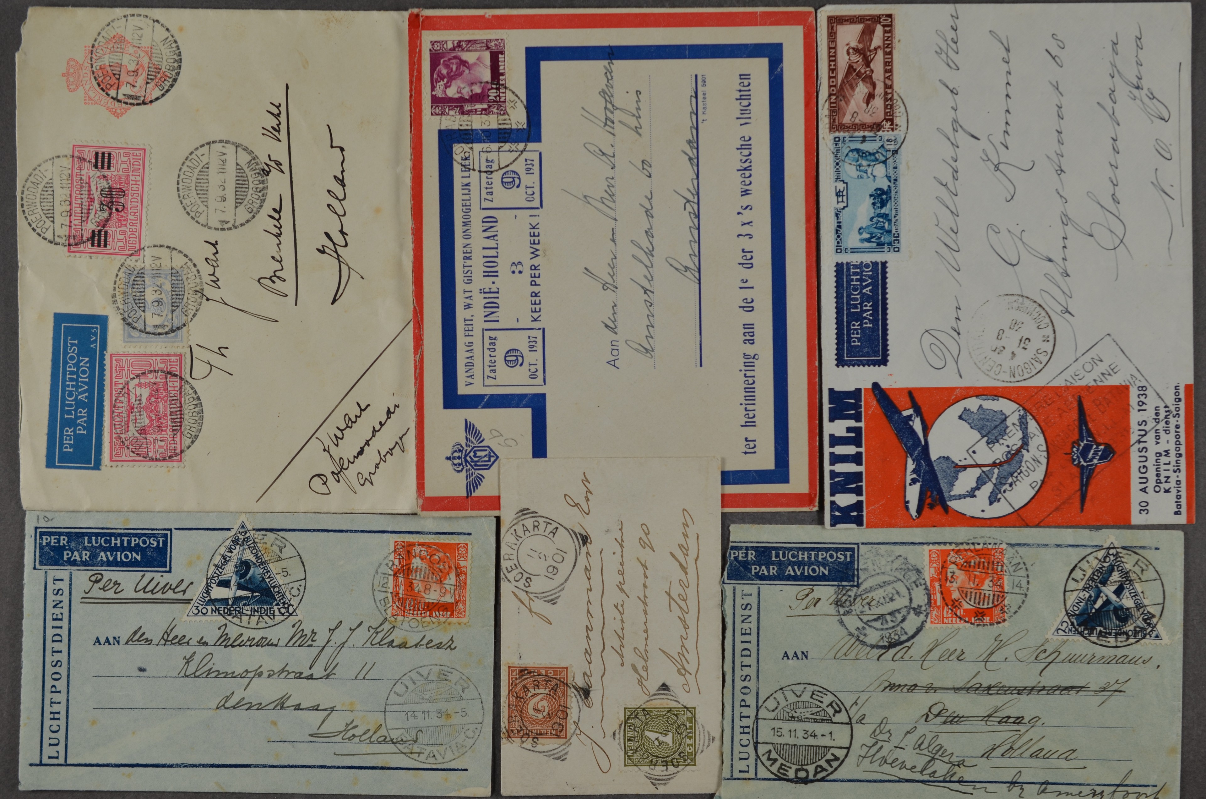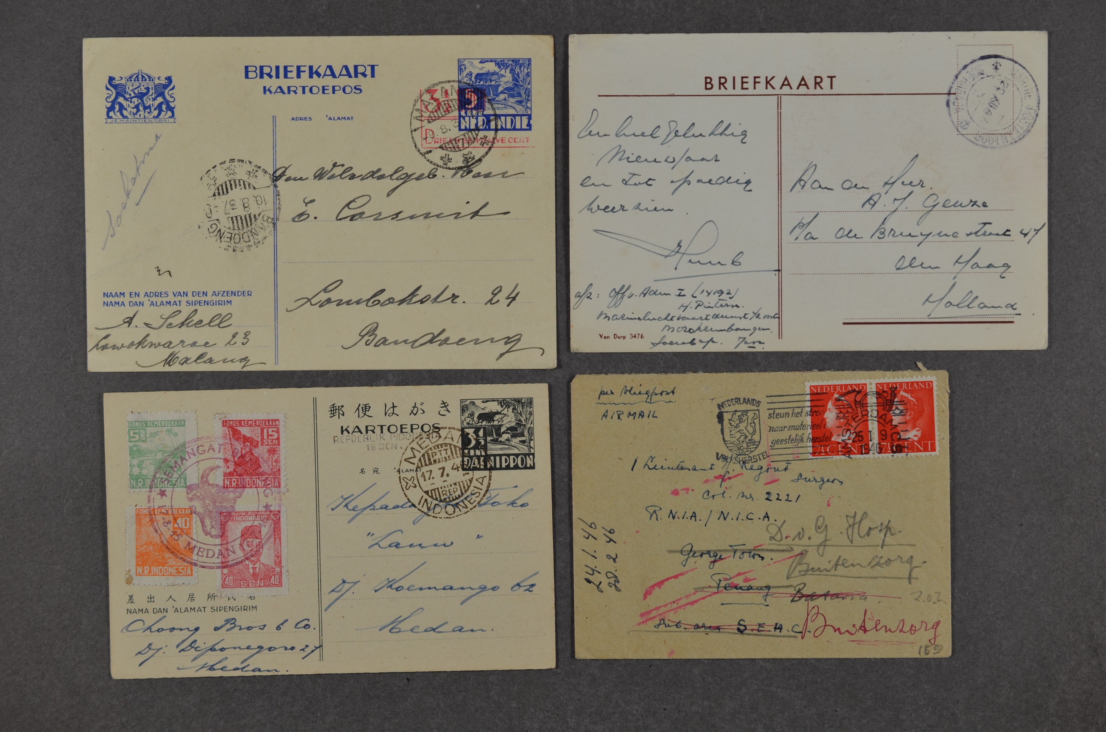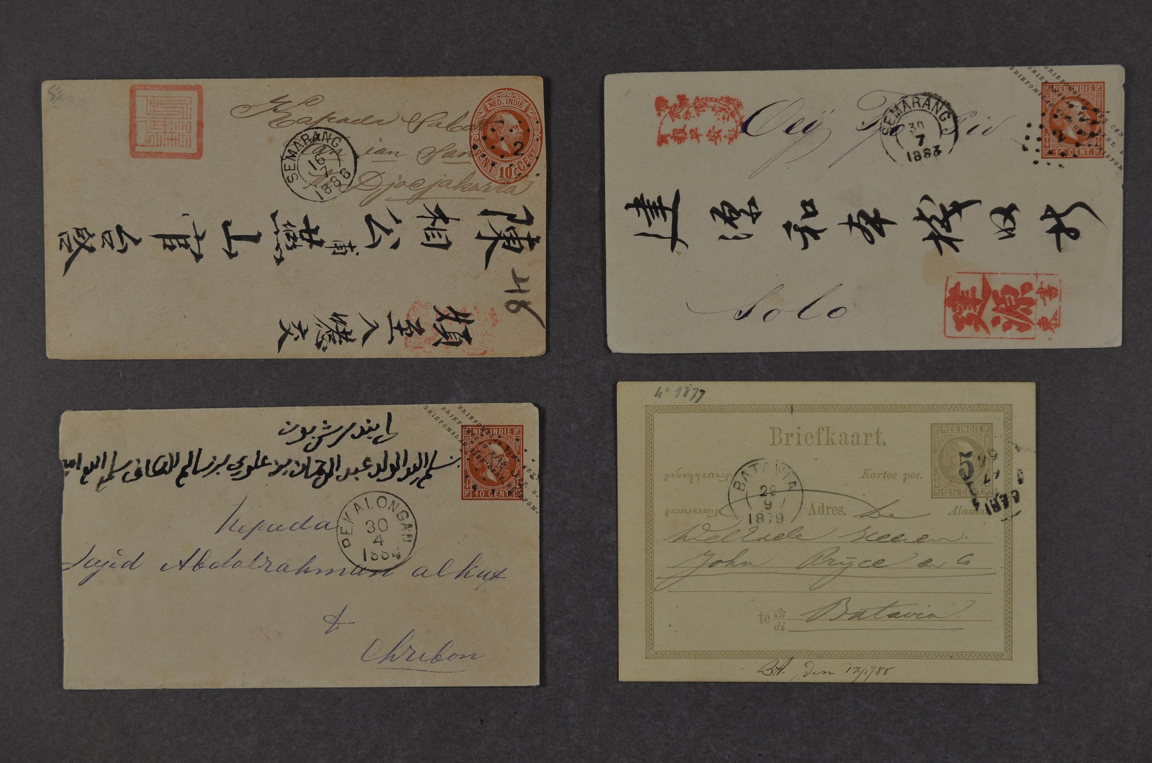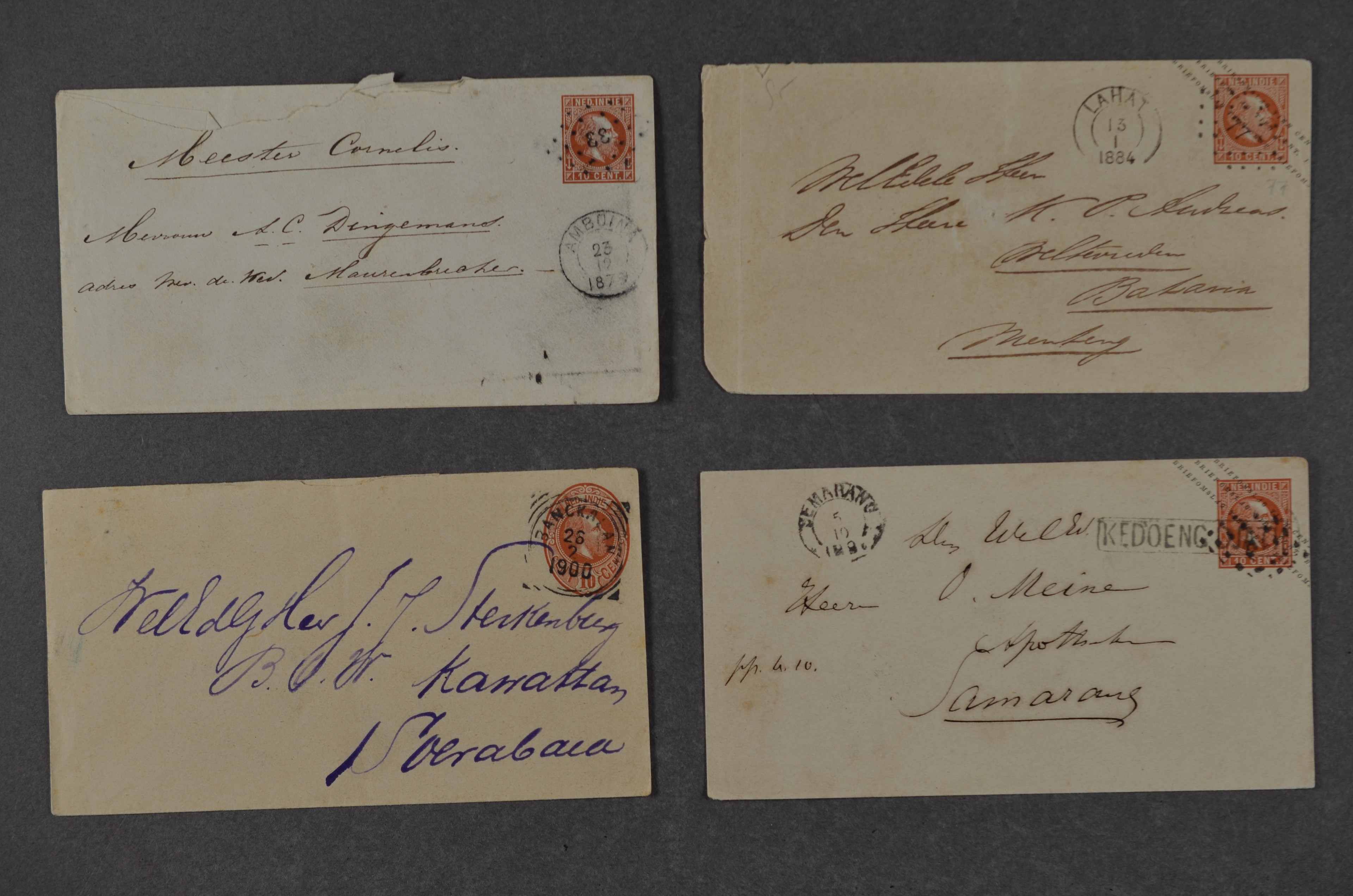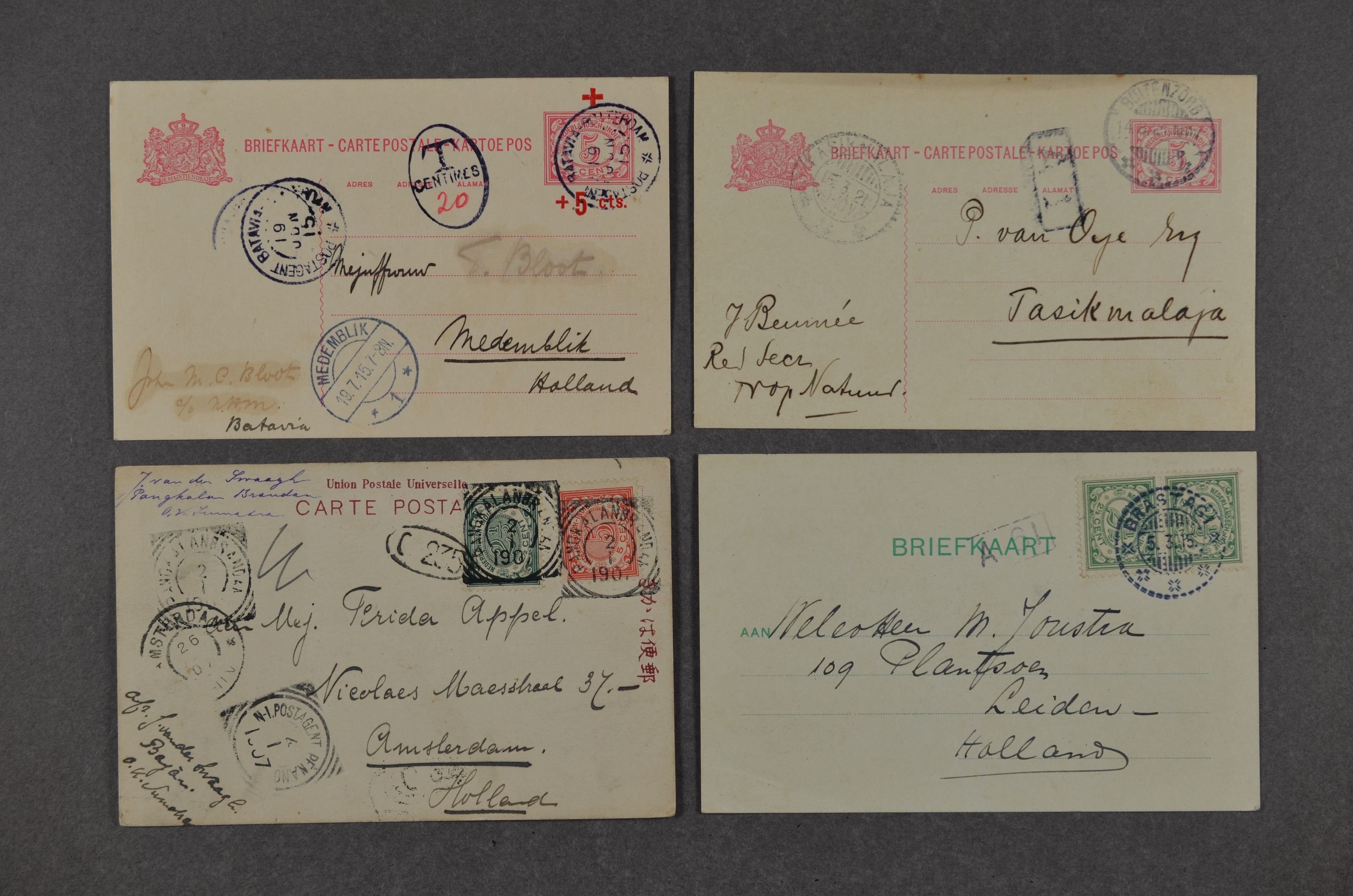 NED.- INDIË, meer dan 425 poststukken vanaf ca. 1860 w.o. met mooie frankeringen, allerlei soorten stempels incl. propaganda/gelegenheid (met iets uit Japanse bezetting), aangetekend, expresse, censuur, luchtpost, tevens iets Ned. Nieuw-Guinea w.o. 2 met Nederlandse portzegels, etc.