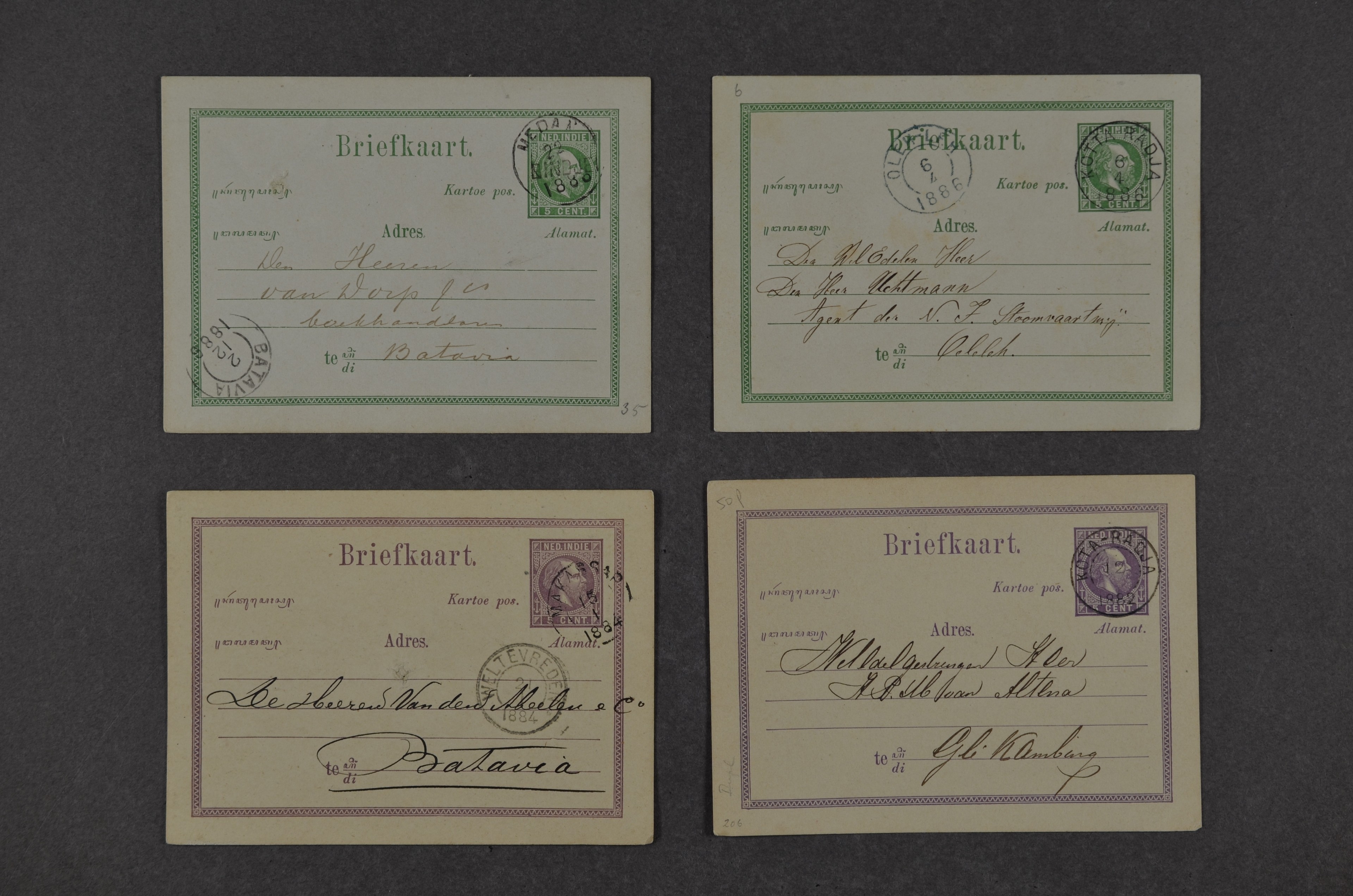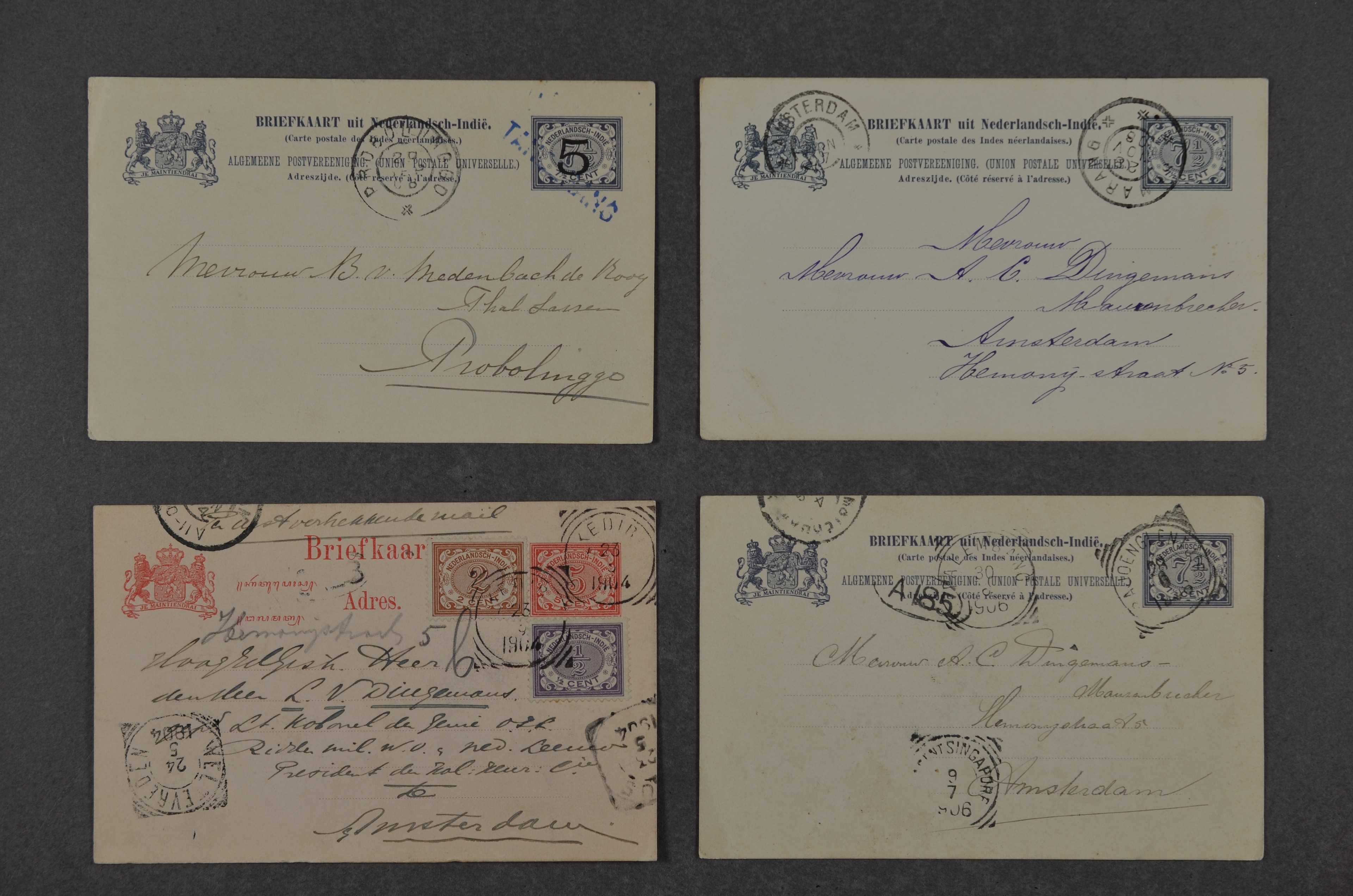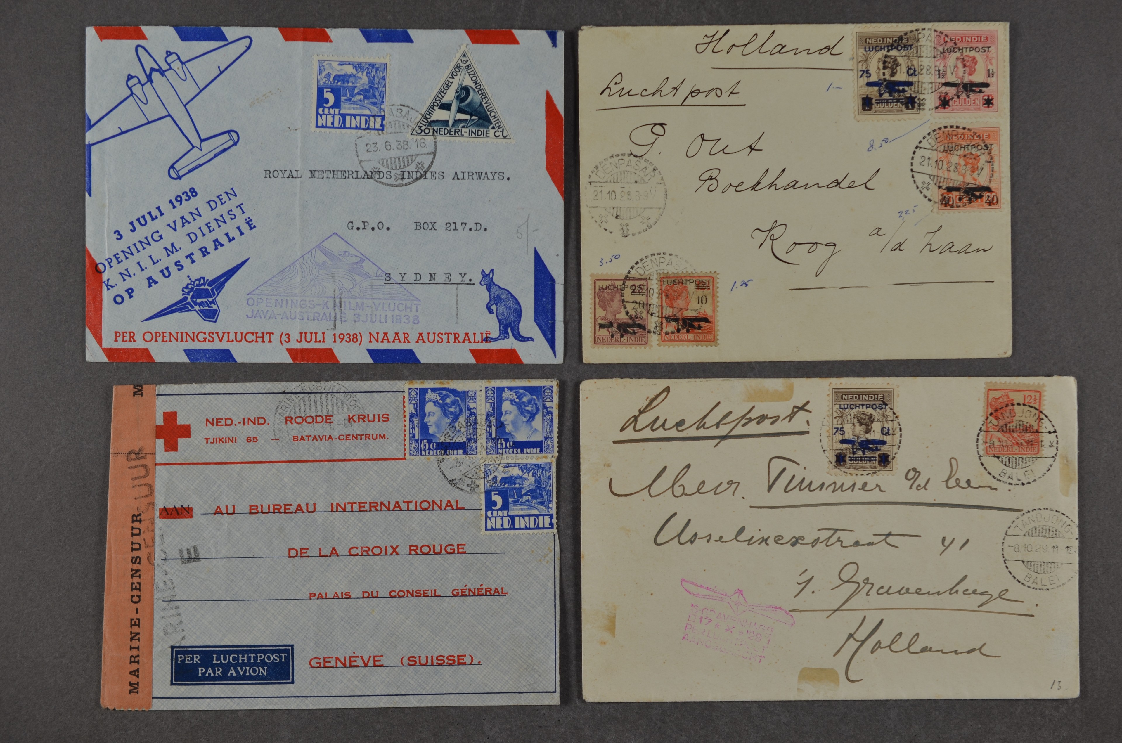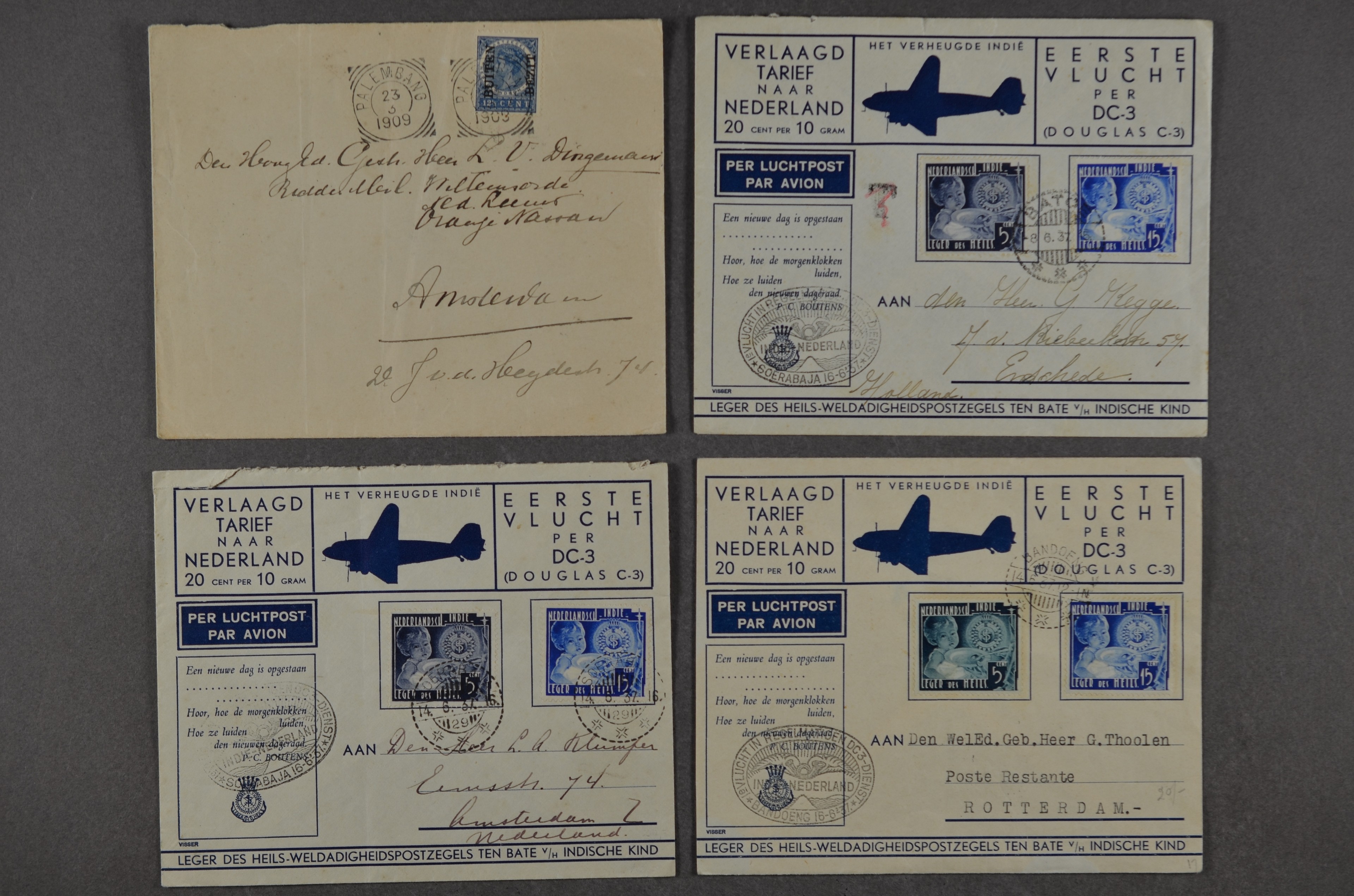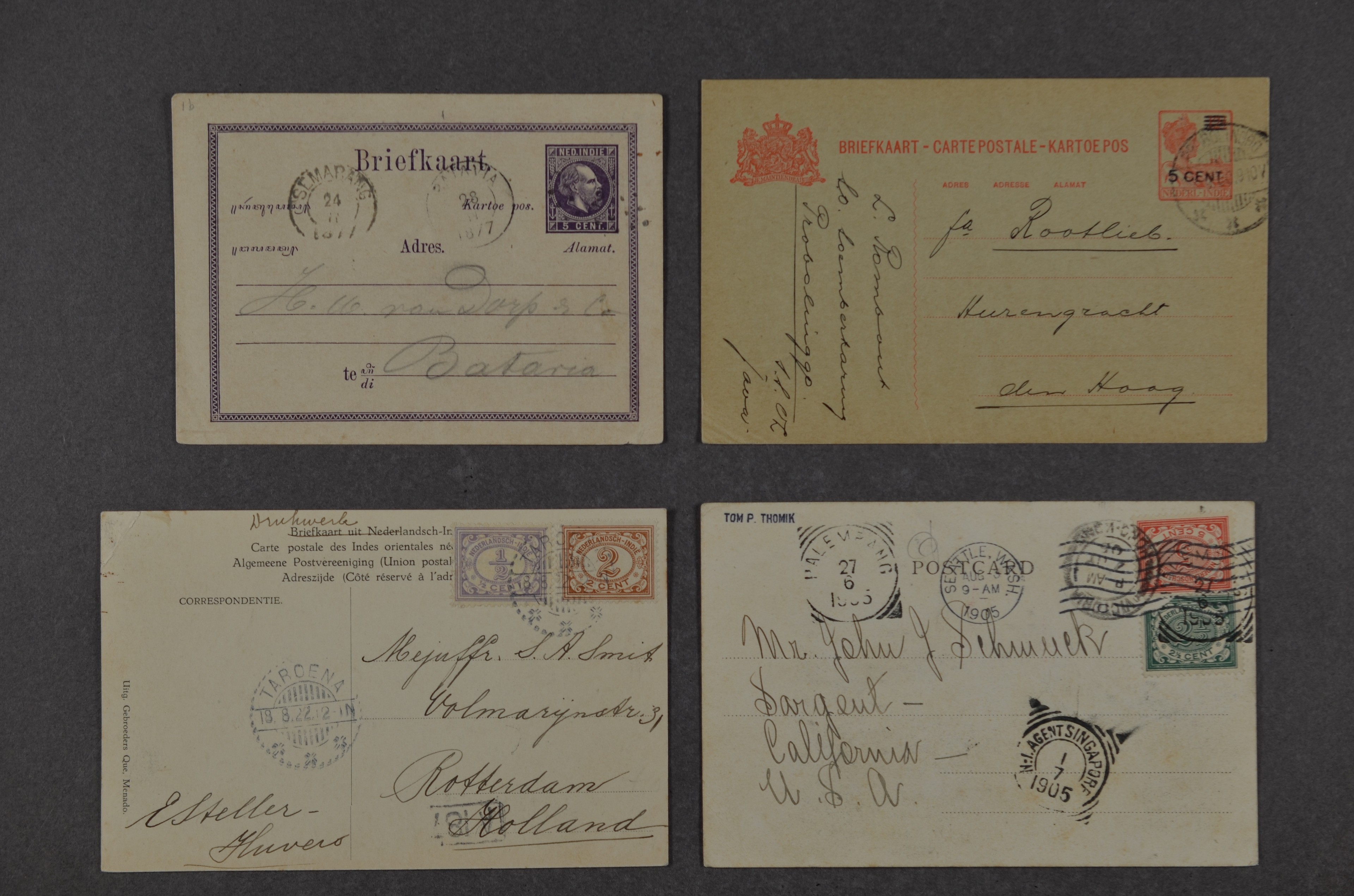 NED.- INDIË, meer dan 425 poststukken vanaf ca. 1860 w.o. met mooie frankeringen, allerlei soorten stempels incl. propaganda/gelegenheid (met iets uit Japanse bezetting), aangetekend, expresse, censuur, luchtpost, tevens iets Ned. Nieuw-Guinea w.o. 2 met Nederlandse portzegels, etc.