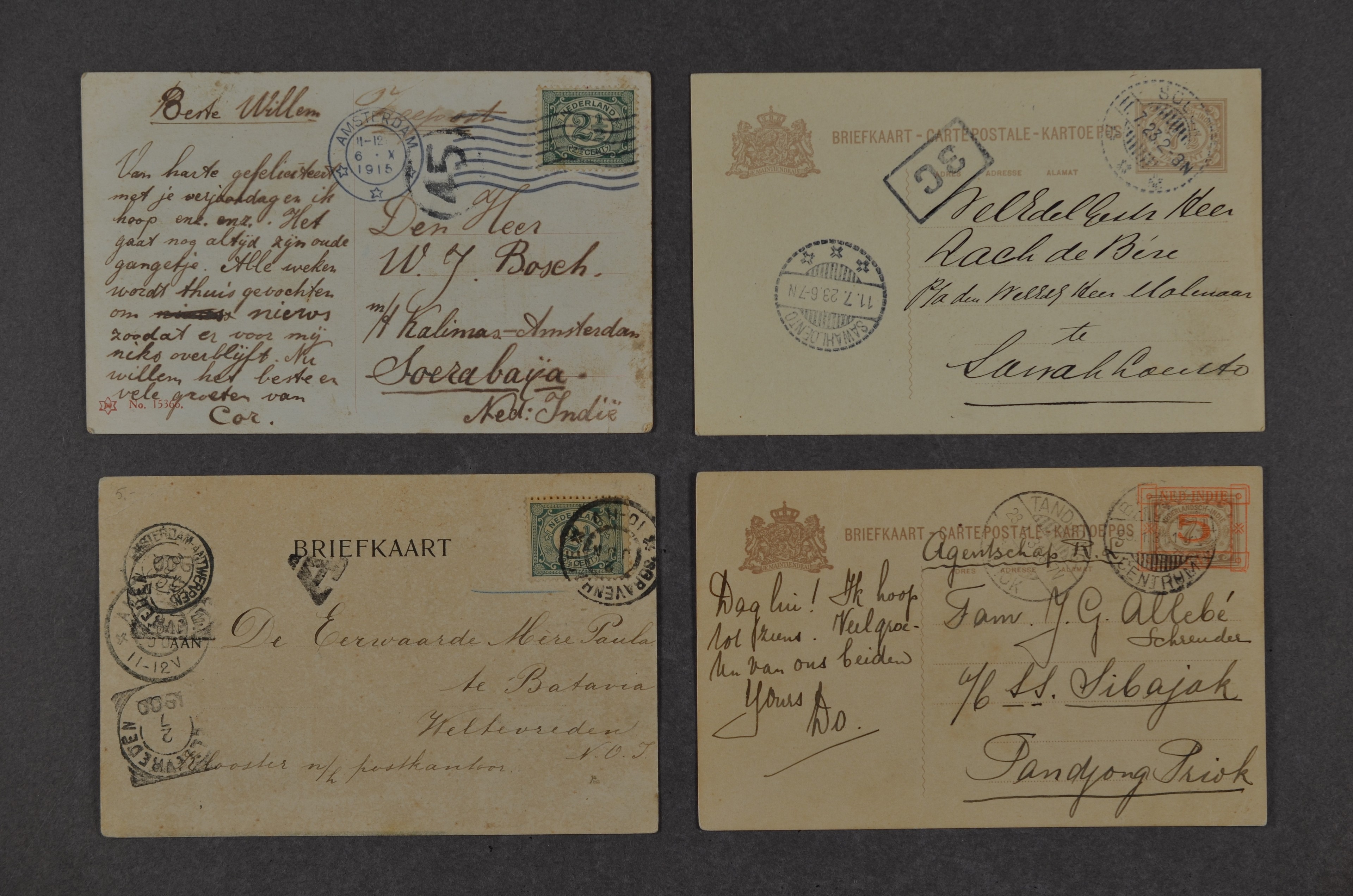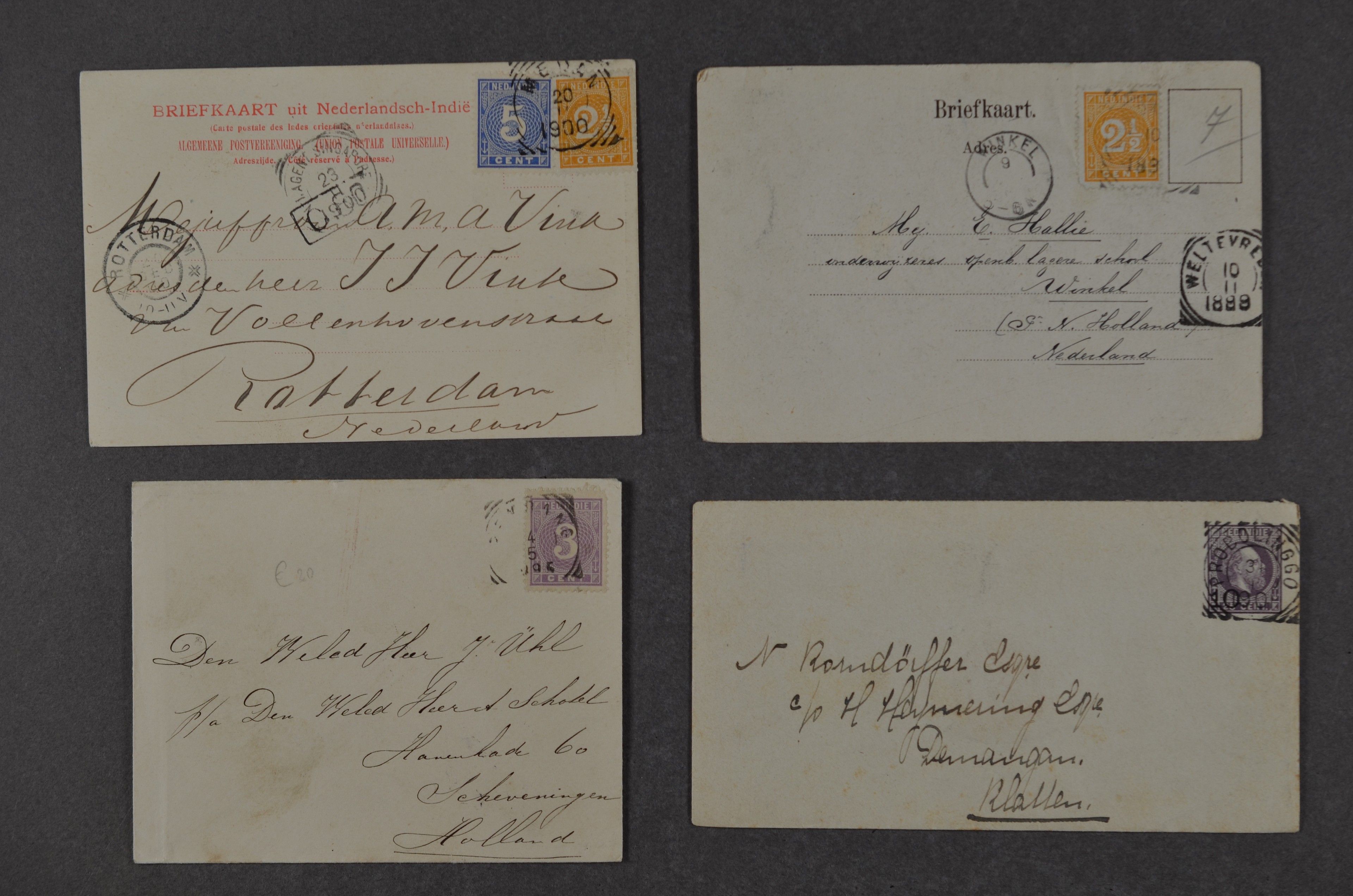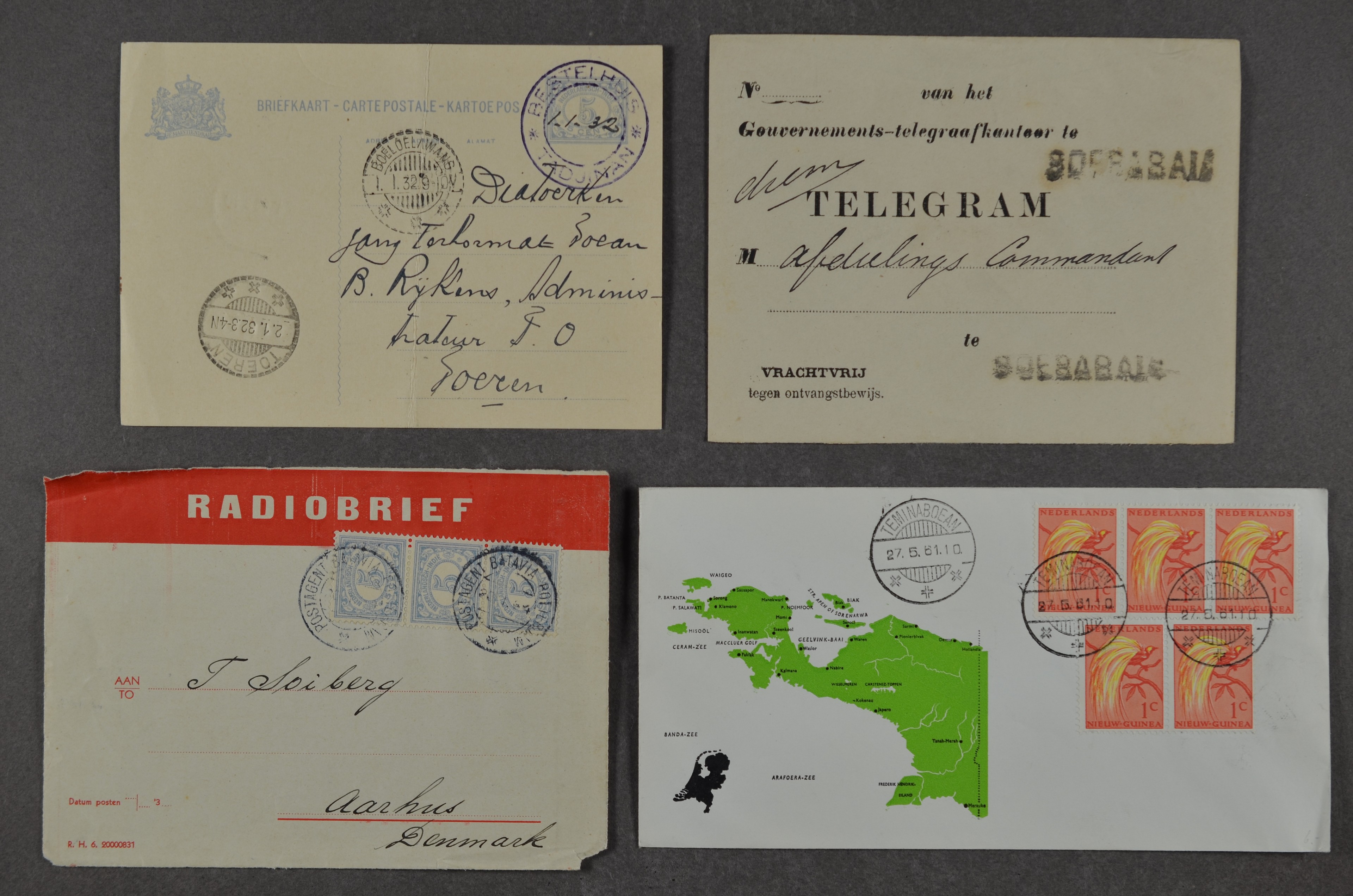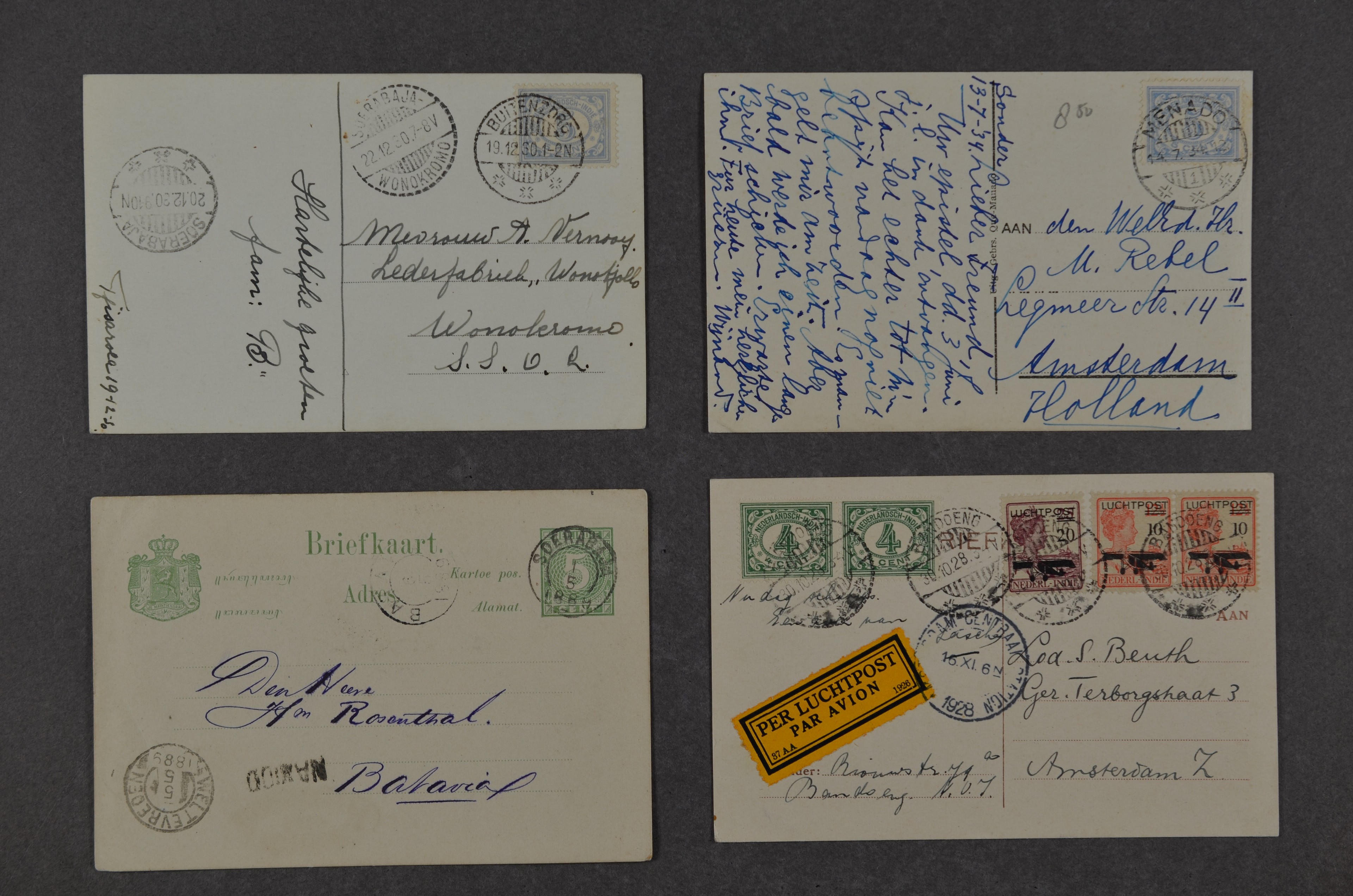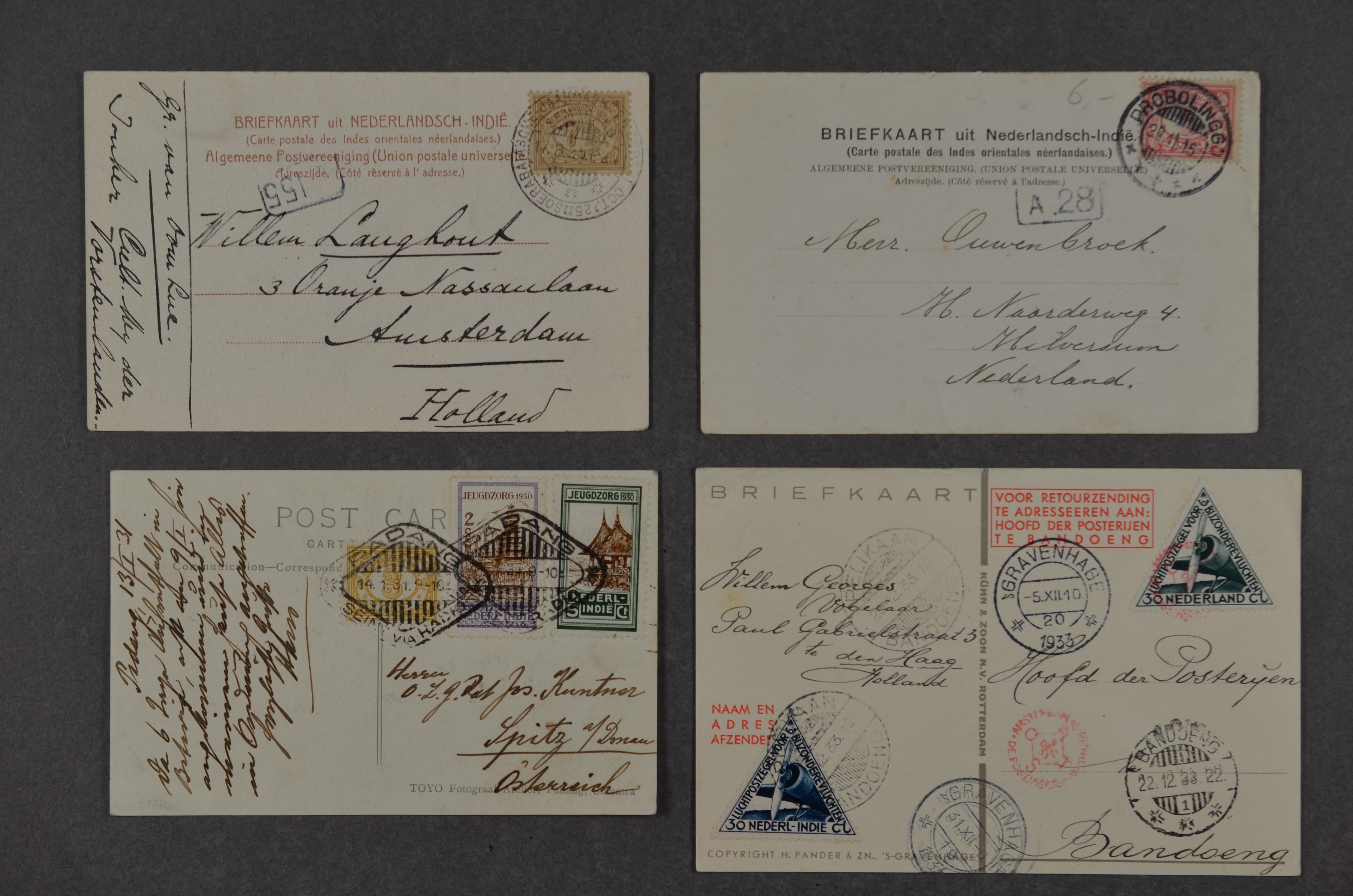 NED.- INDIË, meer dan 425 poststukken vanaf ca. 1860 w.o. met mooie frankeringen, allerlei soorten stempels incl. propaganda/gelegenheid (met iets uit Japanse bezetting), aangetekend, expresse, censuur, luchtpost, tevens iets Ned. Nieuw-Guinea w.o. 2 met Nederlandse portzegels, etc.