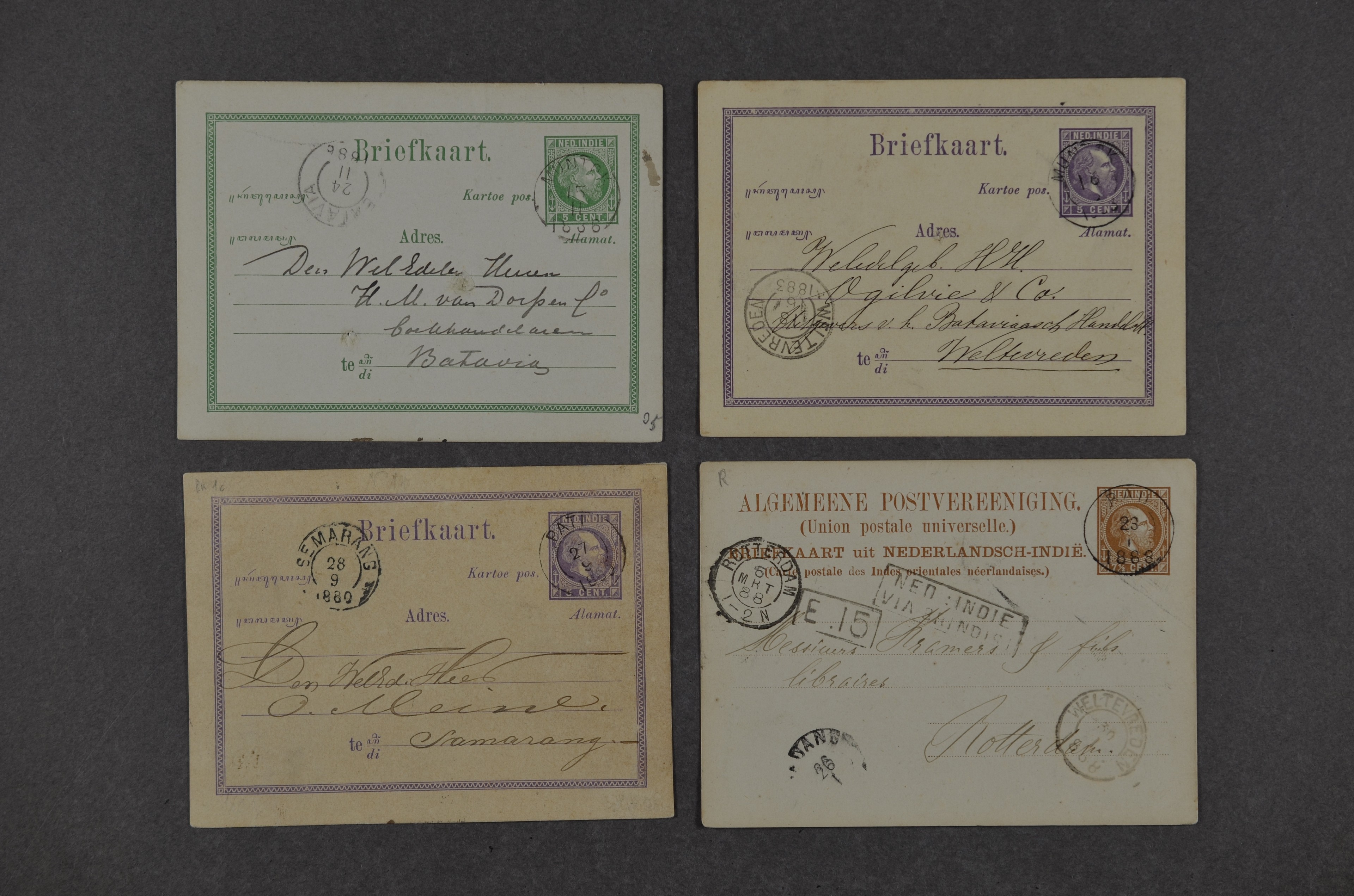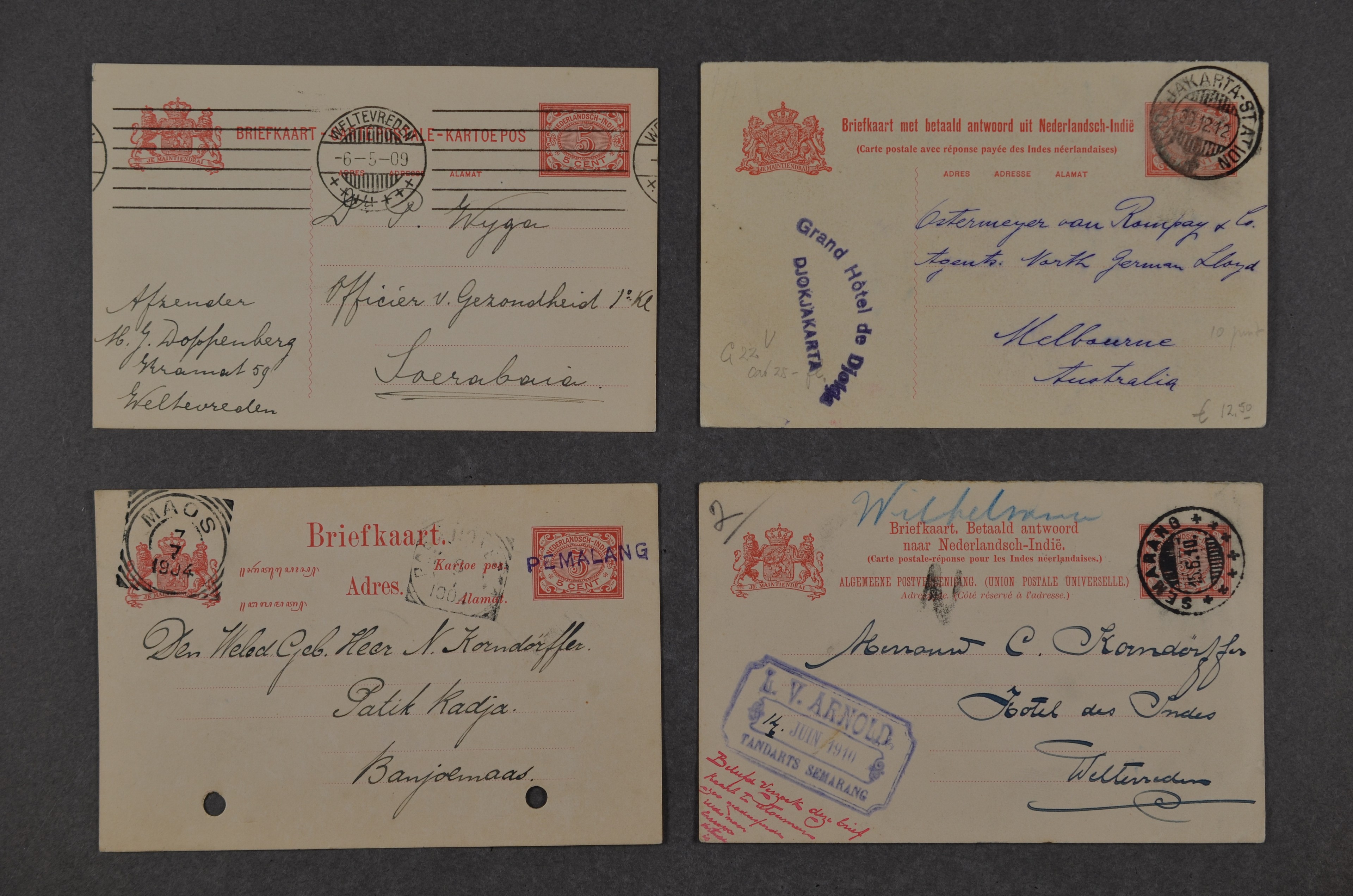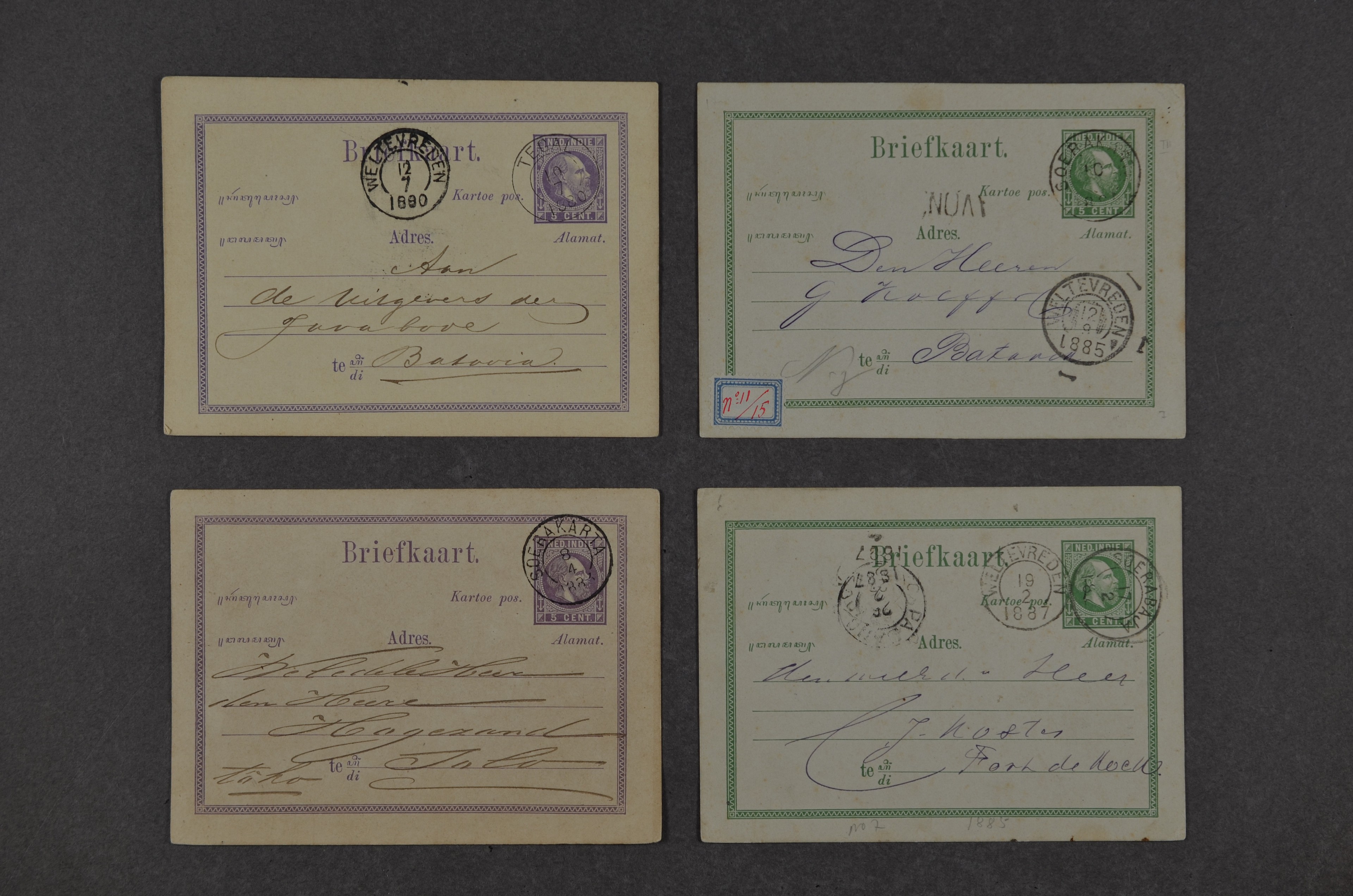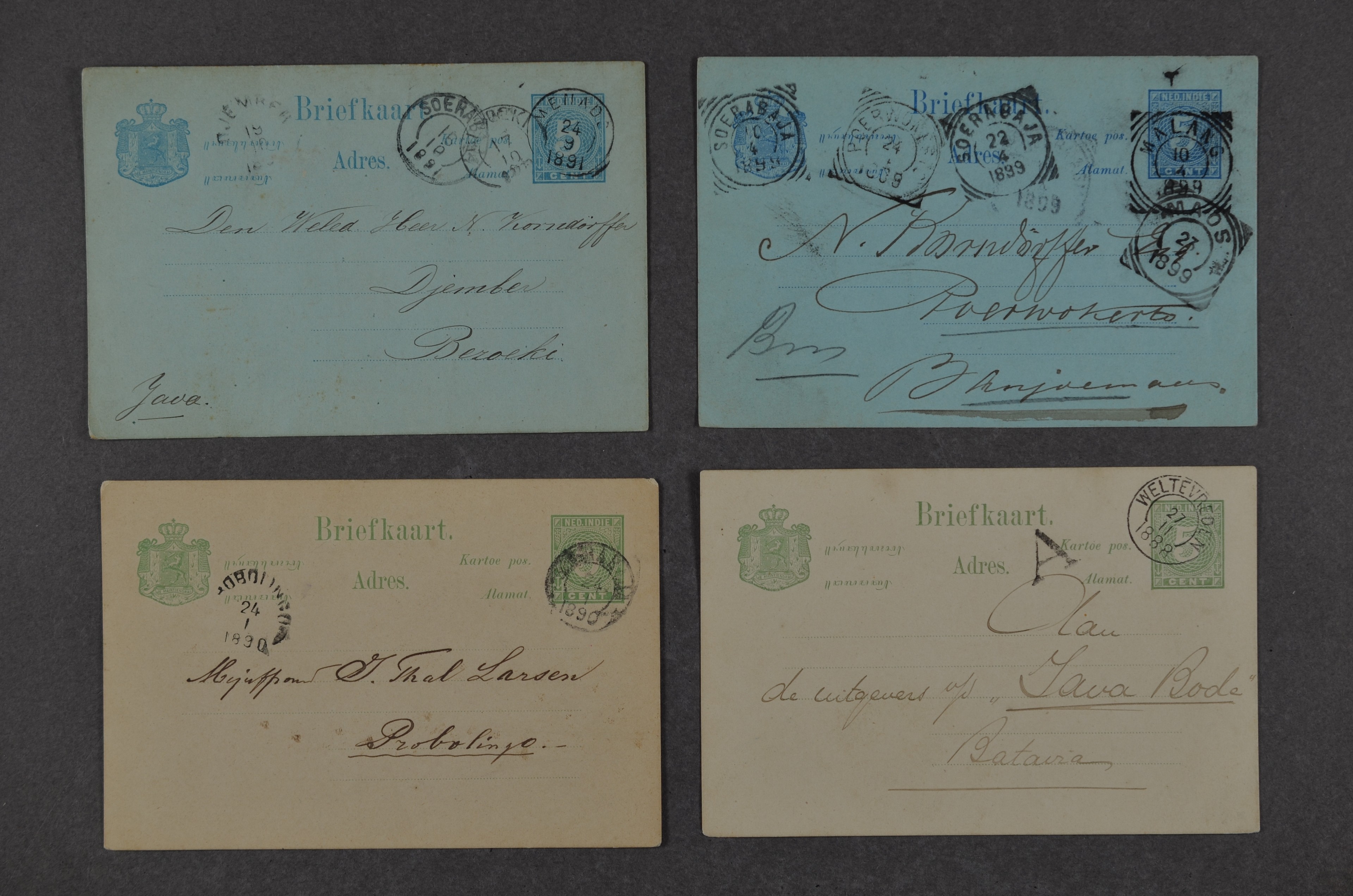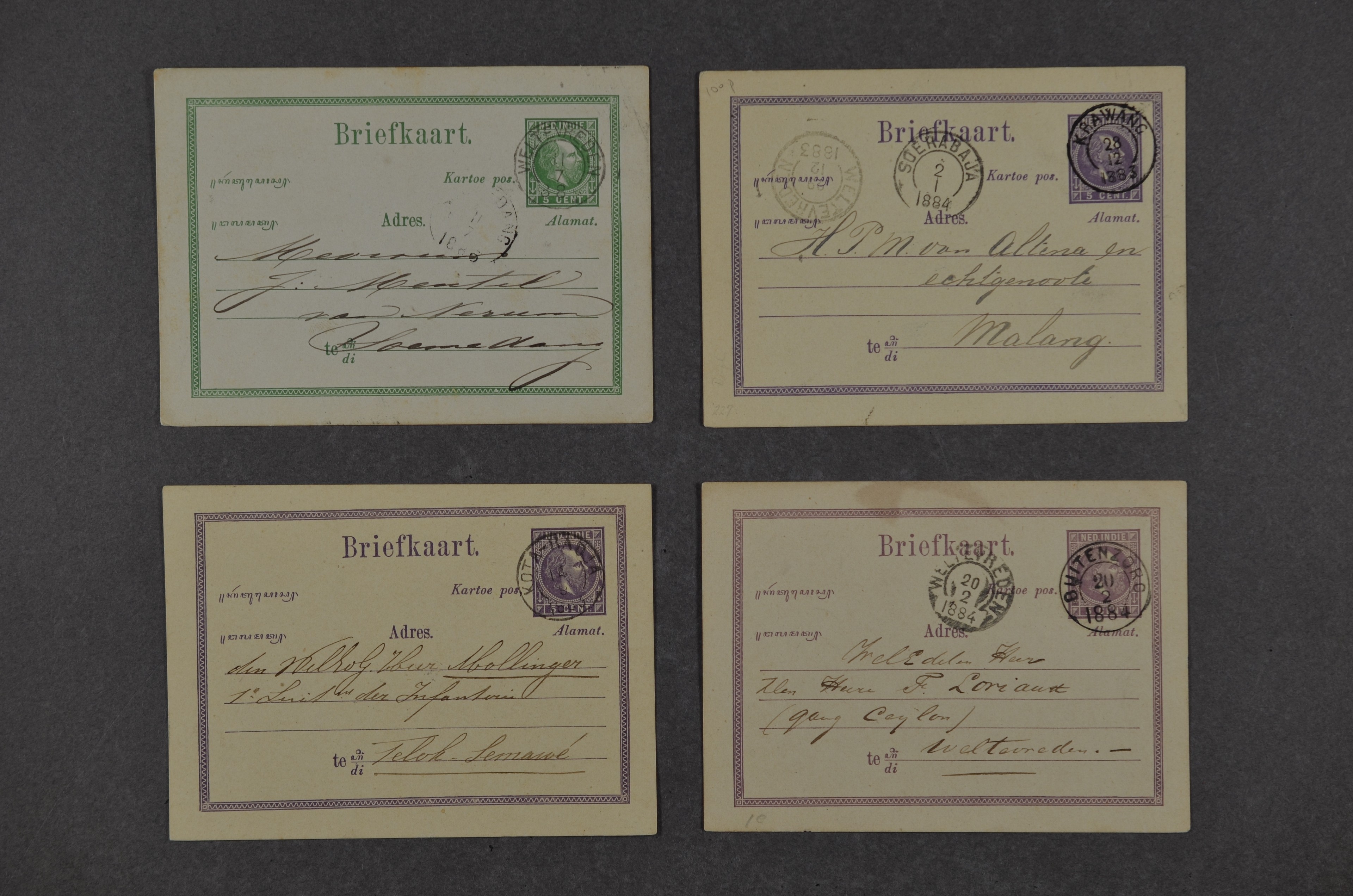 NED.- INDIË, meer dan 425 poststukken vanaf ca. 1860 w.o. met mooie frankeringen, allerlei soorten stempels incl. propaganda/gelegenheid (met iets uit Japanse bezetting), aangetekend, expresse, censuur, luchtpost, tevens iets Ned. Nieuw-Guinea w.o. 2 met Nederlandse portzegels, etc.