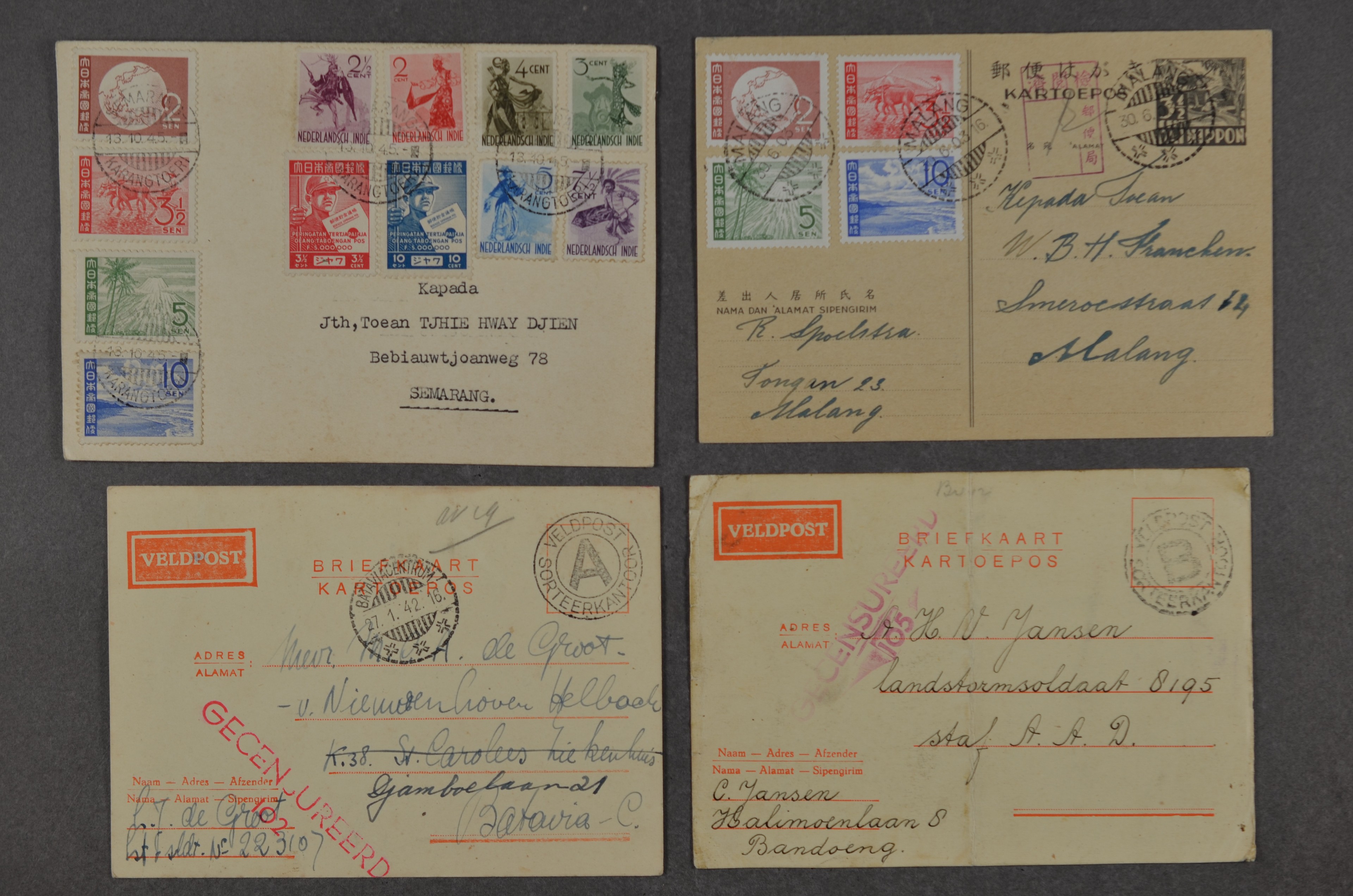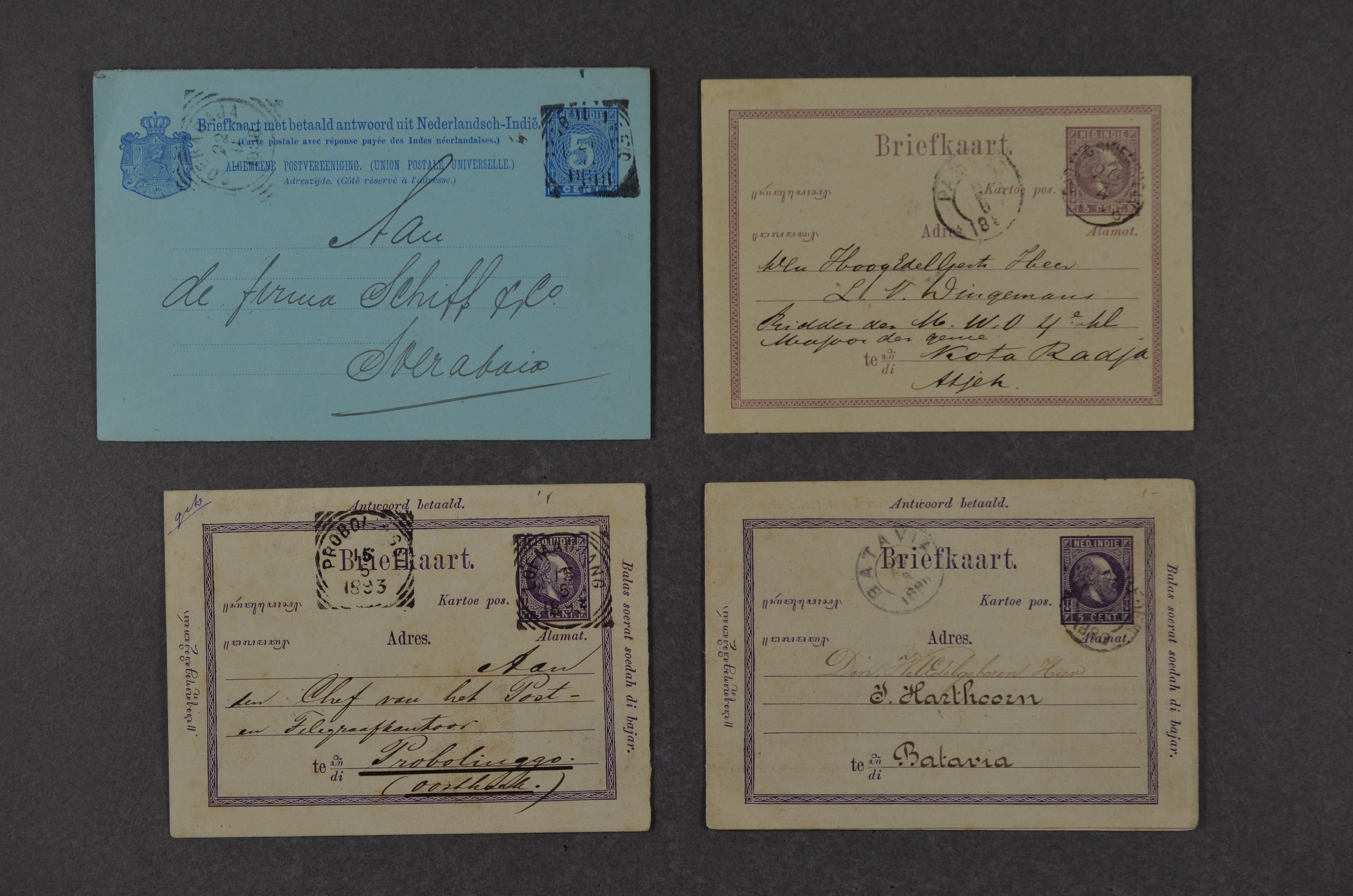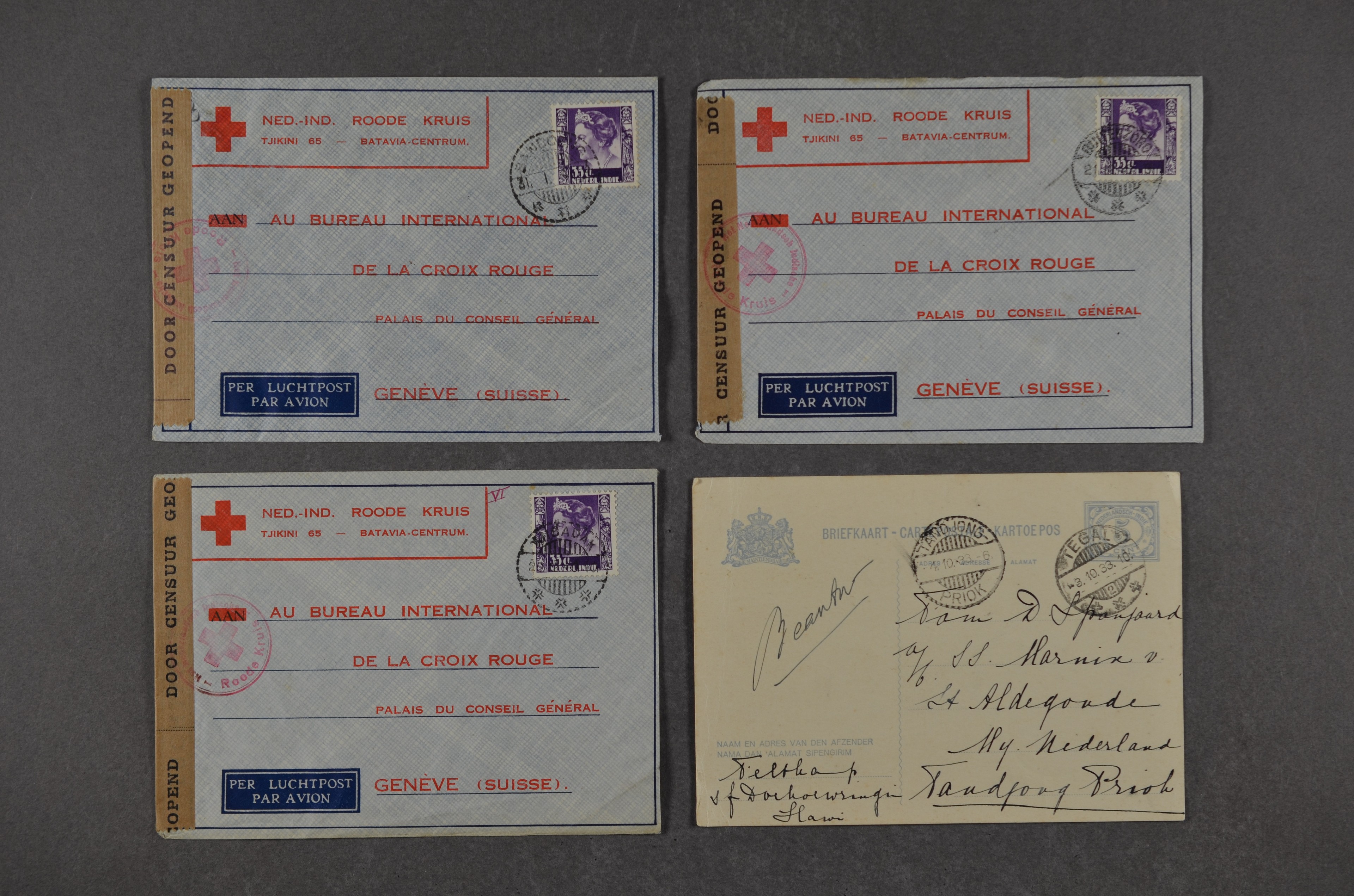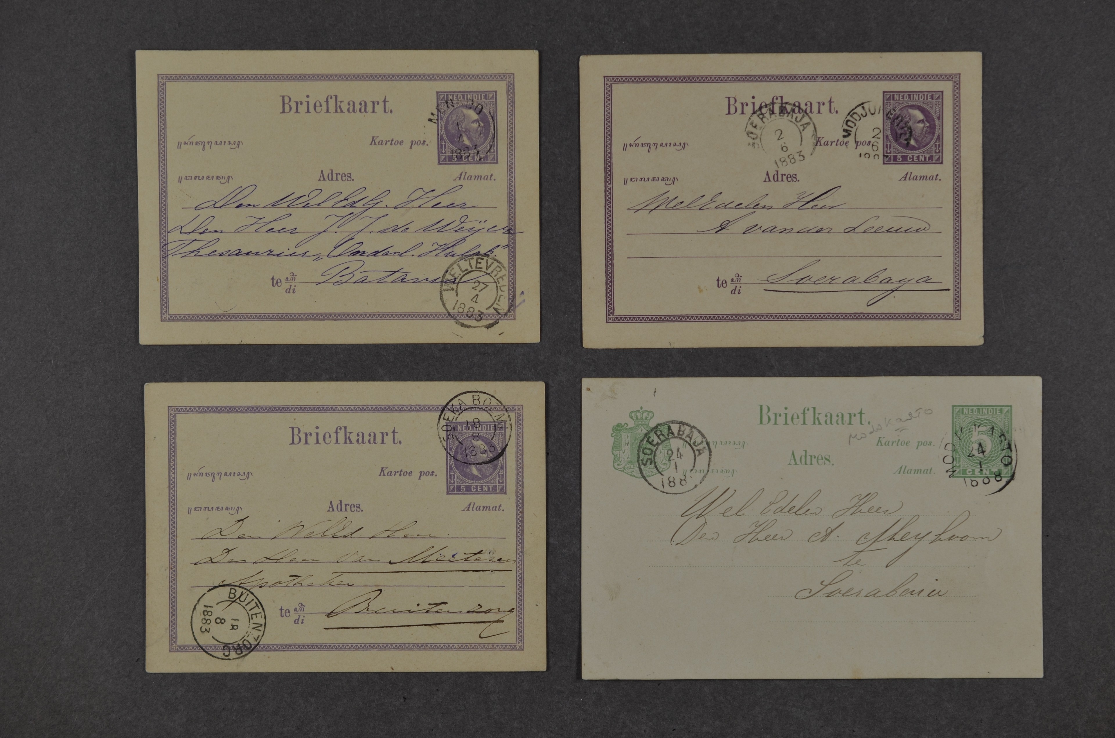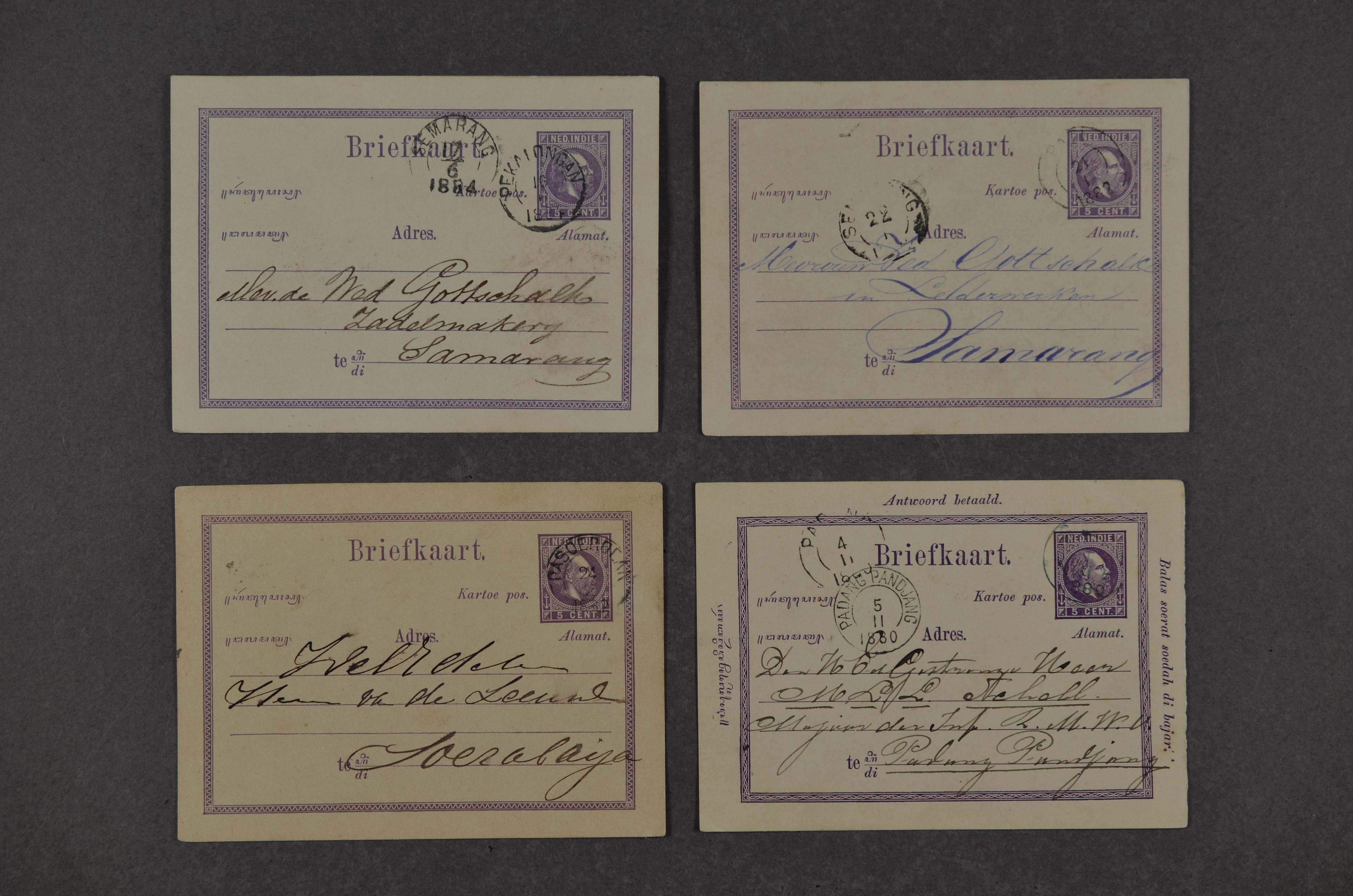 NED.- INDIË, meer dan 425 poststukken vanaf ca. 1860 w.o. met mooie frankeringen, allerlei soorten stempels incl. propaganda/gelegenheid (met iets uit Japanse bezetting), aangetekend, expresse, censuur, luchtpost, tevens iets Ned. Nieuw-Guinea w.o. 2 met Nederlandse portzegels, etc.