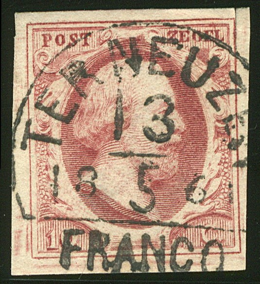 TER NEUZEN C (EY.250) op 10 cent nr. 2l-Pl.VI-33. Breed gerande zegel (rechtsboven ca. 4 mm op de rand ingeknipt) met ideale afst. met late datum 13-5-1861