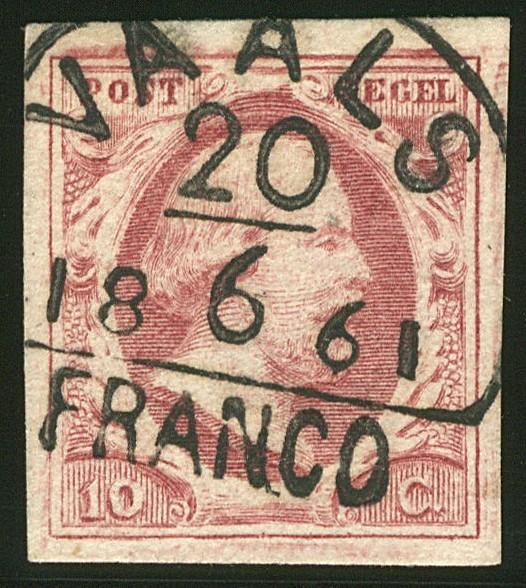 VAALS C klein (EY.125) op 10 cent nr. 2l-Pl.VI-2. Prachtig gerande zegel met ideale afst. met late datum 20-6-1861