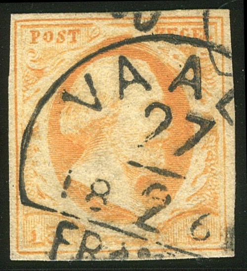VAALS C (EY.RR), op 15 cent donkeroranje nr.3b, het zegel is weliswaar smal gerand maar nergens geraakt en het stempel is vrijwel volledig en uiterst zeldzaam!