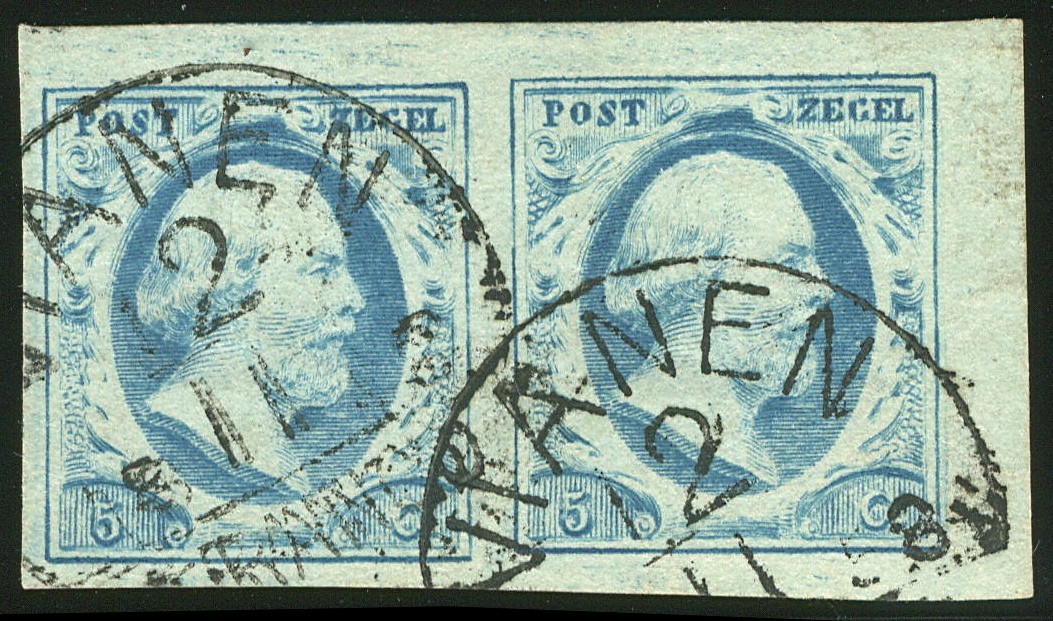 VIANEN C (EY.600) op 5 cent nr. 1k-Pl.III-94/95. Breed gerand pracht hoekpaar met twee scherpe afst.