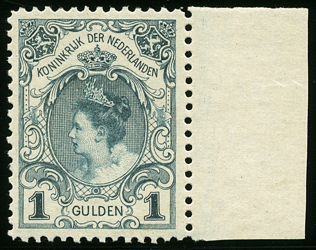 49, 1 gulden blauwgroen, Inhuldigingszegel, postfris prachtex. met rechtervelrand en cert. Muis (1989) € 1500