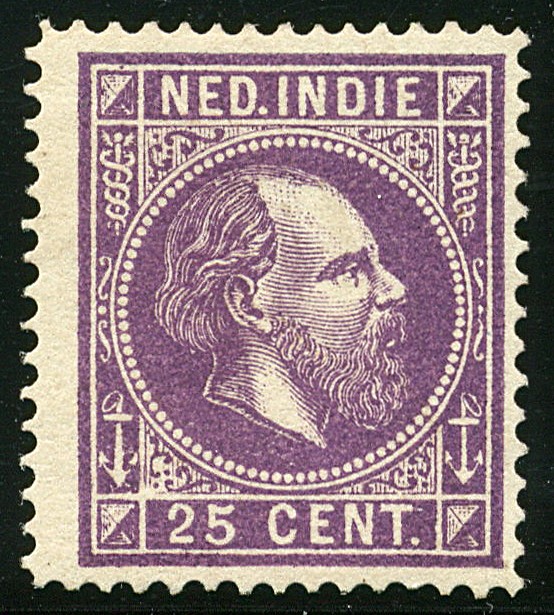 13B, 25 cent donkerpaars, Lt.14 gr.g., ongebr. goed getand ex., beh. 'n enkel papierrestje op gomzijde, een prachtstuk en zeer zeldzaam € 1000