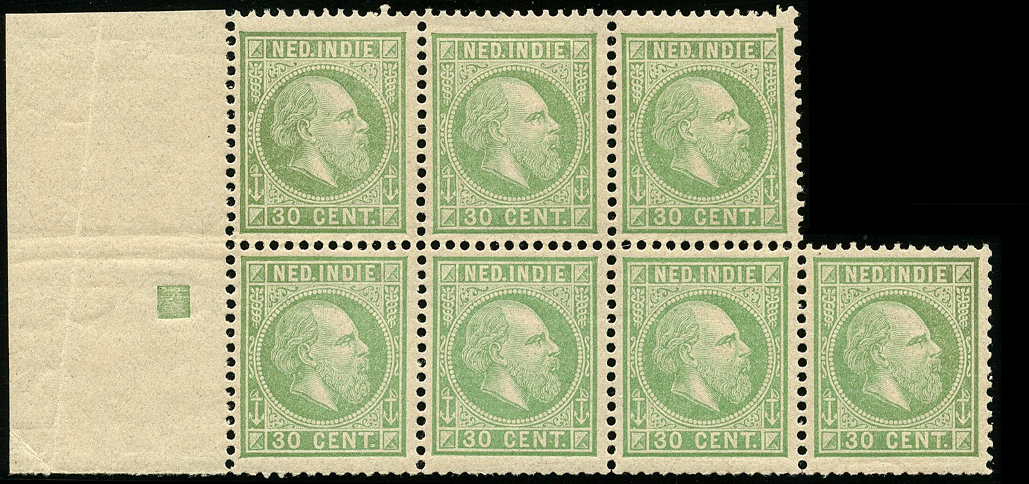 14K, 30 cent groen, Kt.12½ gr.g., in postfris randblok van zeven € 3150