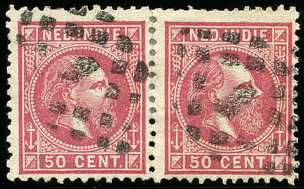 15G + 15F, 50 cent karmijn in de gecombineerde tanding 11½ x 12-12½ x 12, gebruikt prachtpaar € 275