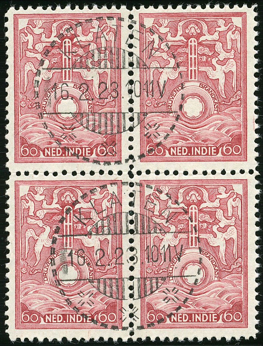BRANDKAST 2, 60 cent rood in blok van vier met volledige Langebalk-afstempeling Klaten 16-2-1923 € 360