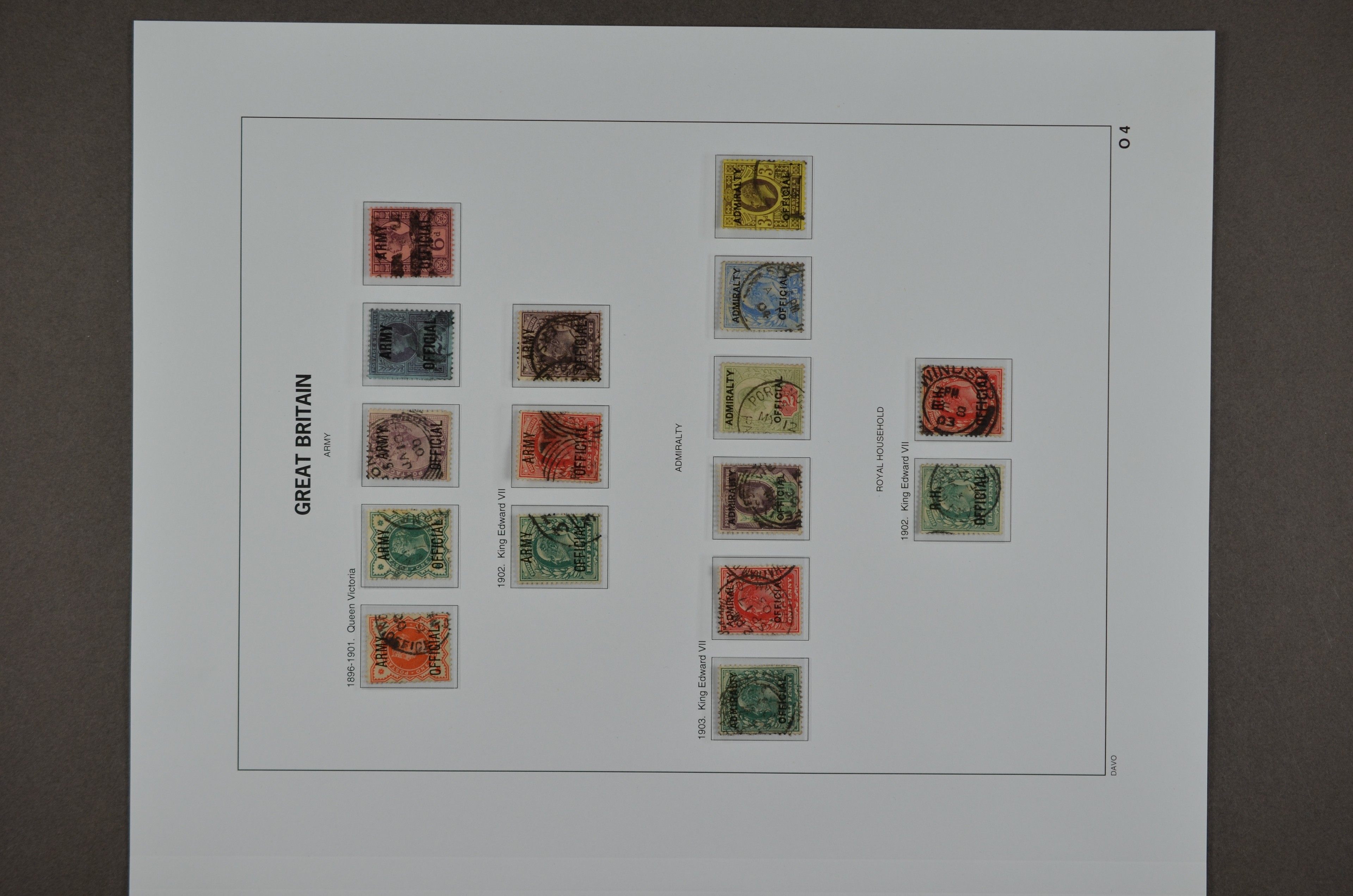 GREAT BRITAIN, Government Parcels Officials, O.61-O.78, Army O.41-O.52, Admiralty O.101-O.106 and Royal Household O.91-O.92, all very fine used on albumpages. Cat. value £.6269