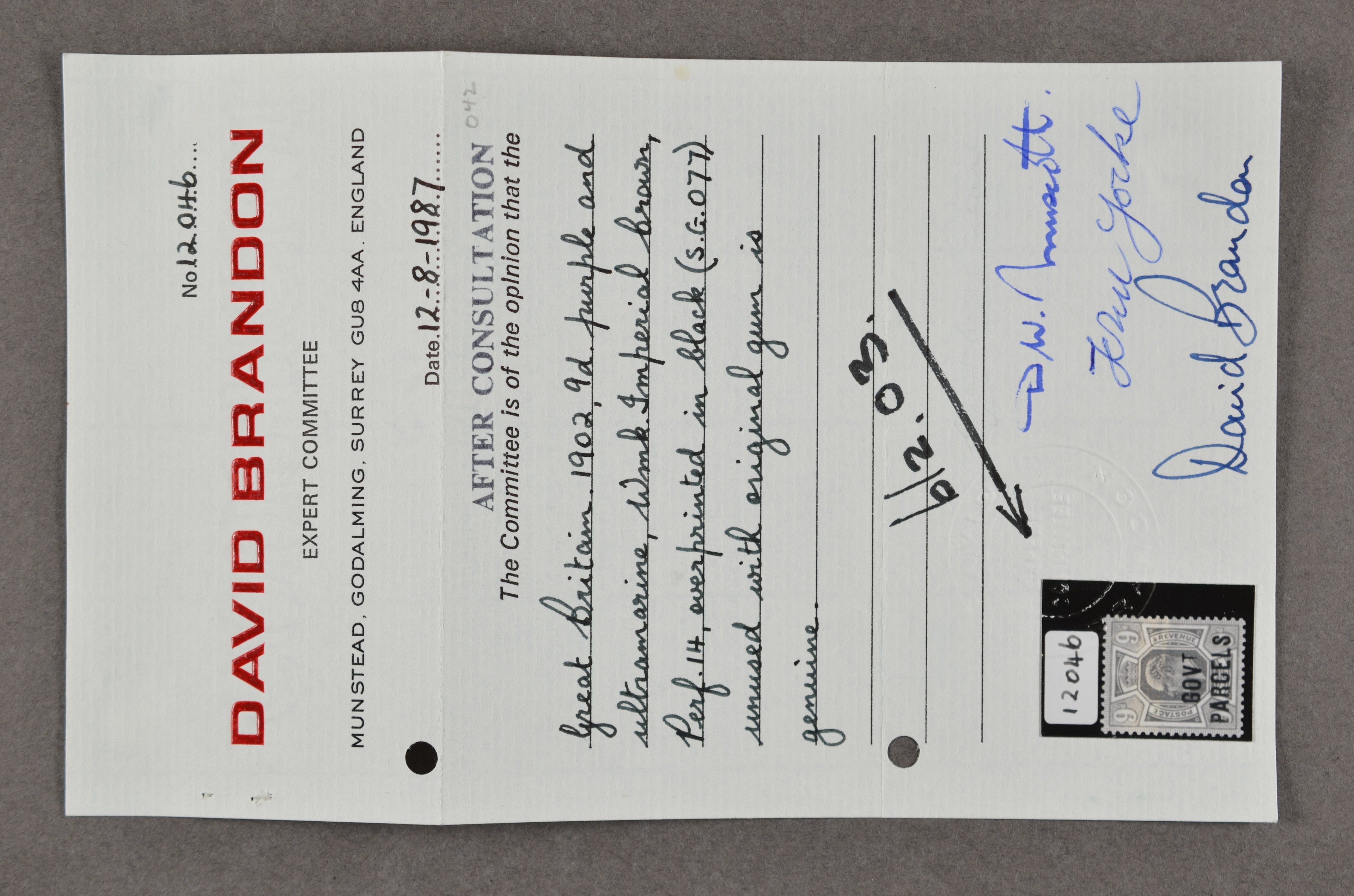 GREAT BRITAIN, Government Parcels Officials, S.G. O.72 and O.77 lightly hinged, very fine quality (O.77 with certificate), cat.value £.1300