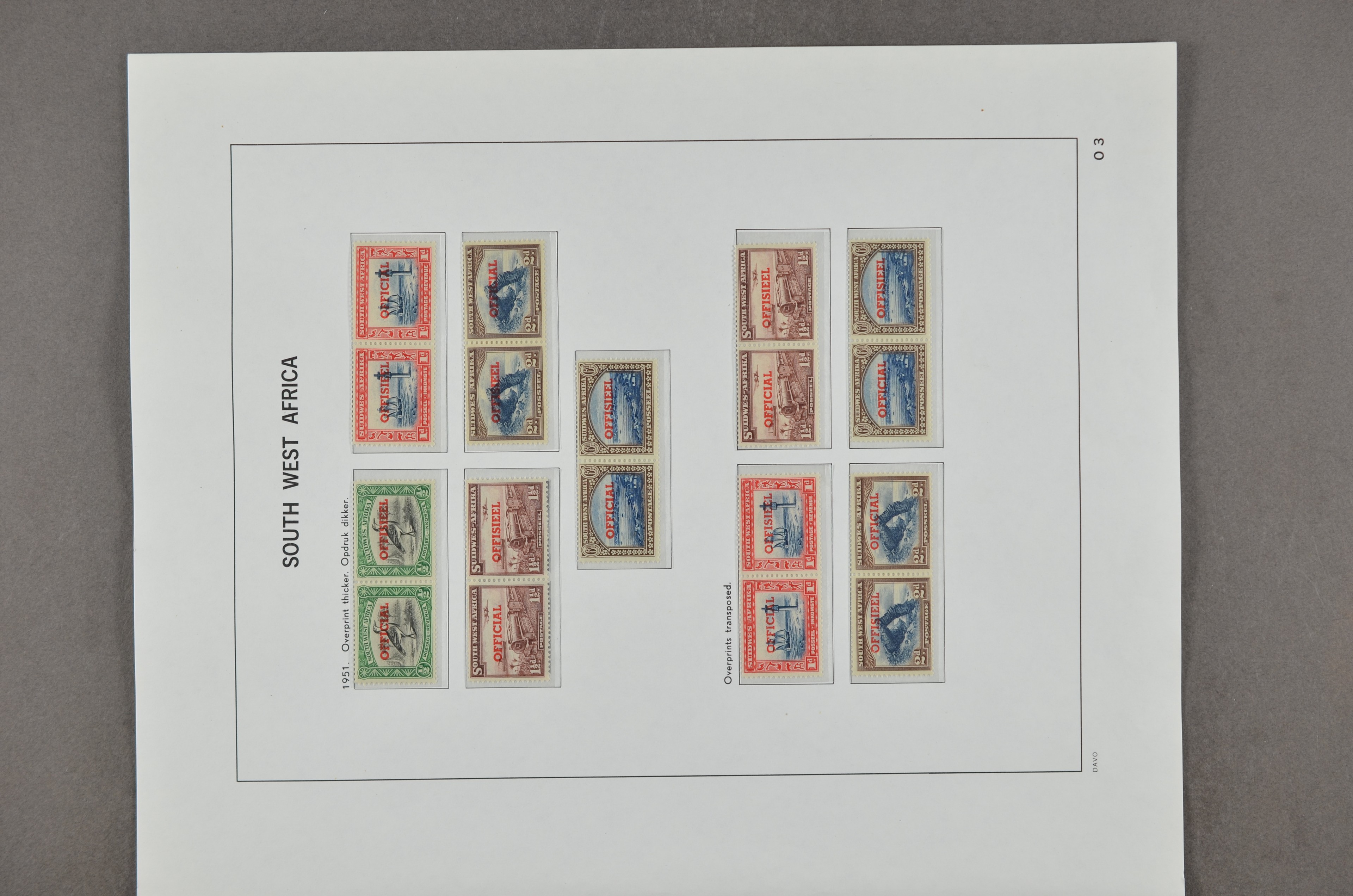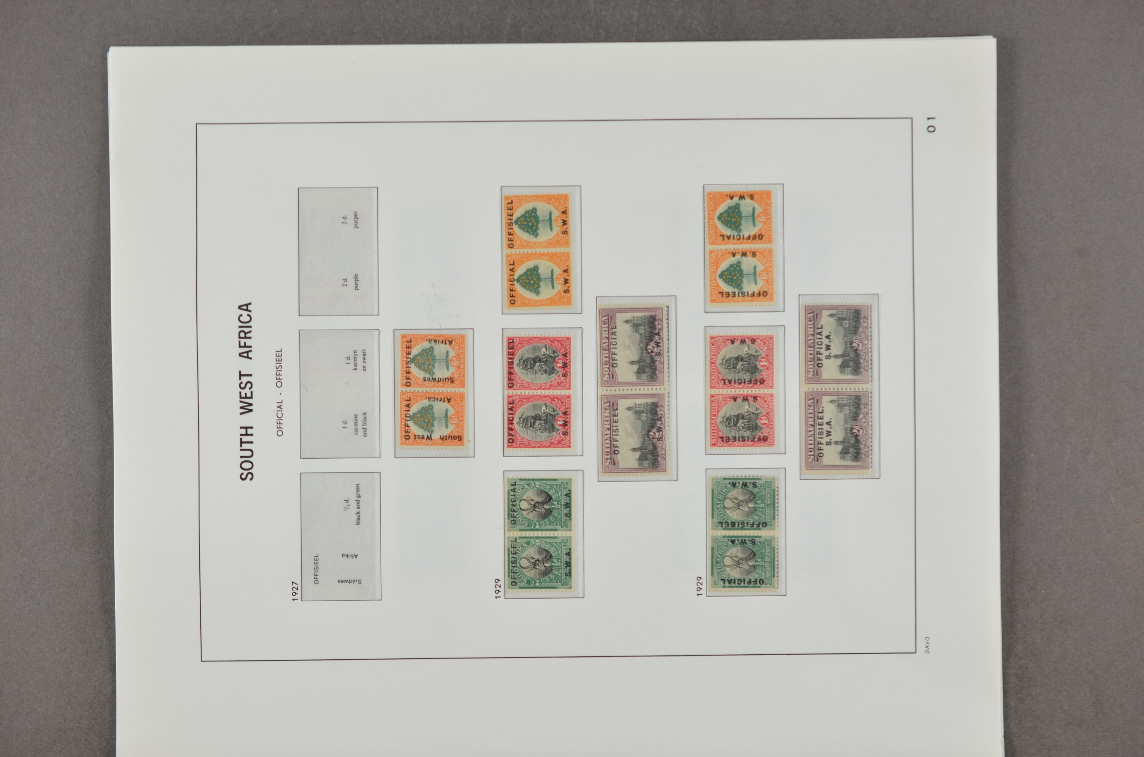 BR.COMMONWEALTH, South West Africa 1923-1952, beautiful collection on albumpages */**, well filled with a lot of better sets f.e.: S.G.1/12, 13/14, 16/27, 29/40, 49/54, 57, 58/67, 74/85, etc., also nice Due and Service and some varieties like 'No Stop', etc.