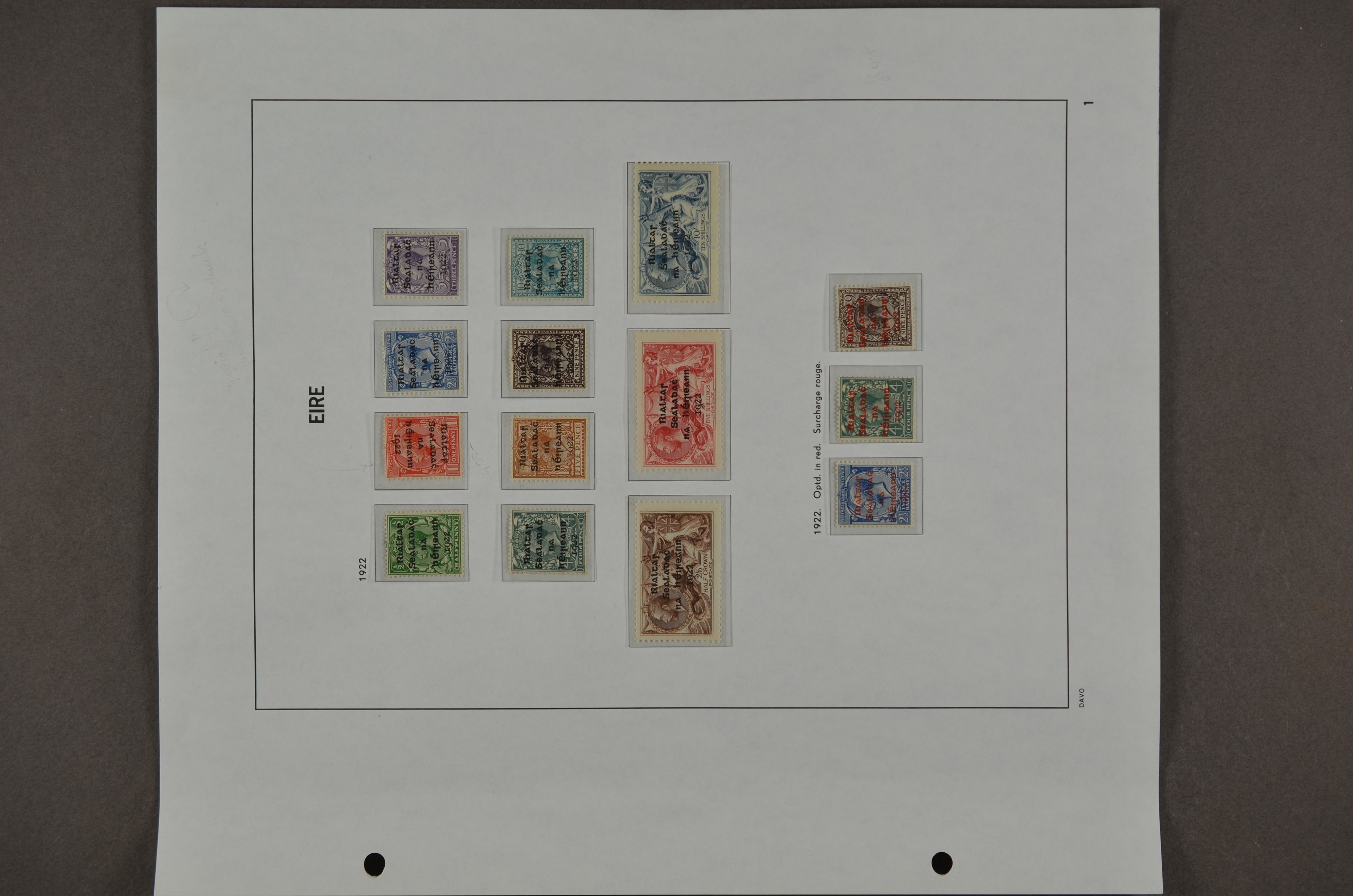 IRELAND 1922-1940, */**, collection 'overprints' on albumpages with S.G.17/21, (set of 3), 83/85, 86/88, 99/101, 102/04, (incl. 2a variety), etc.