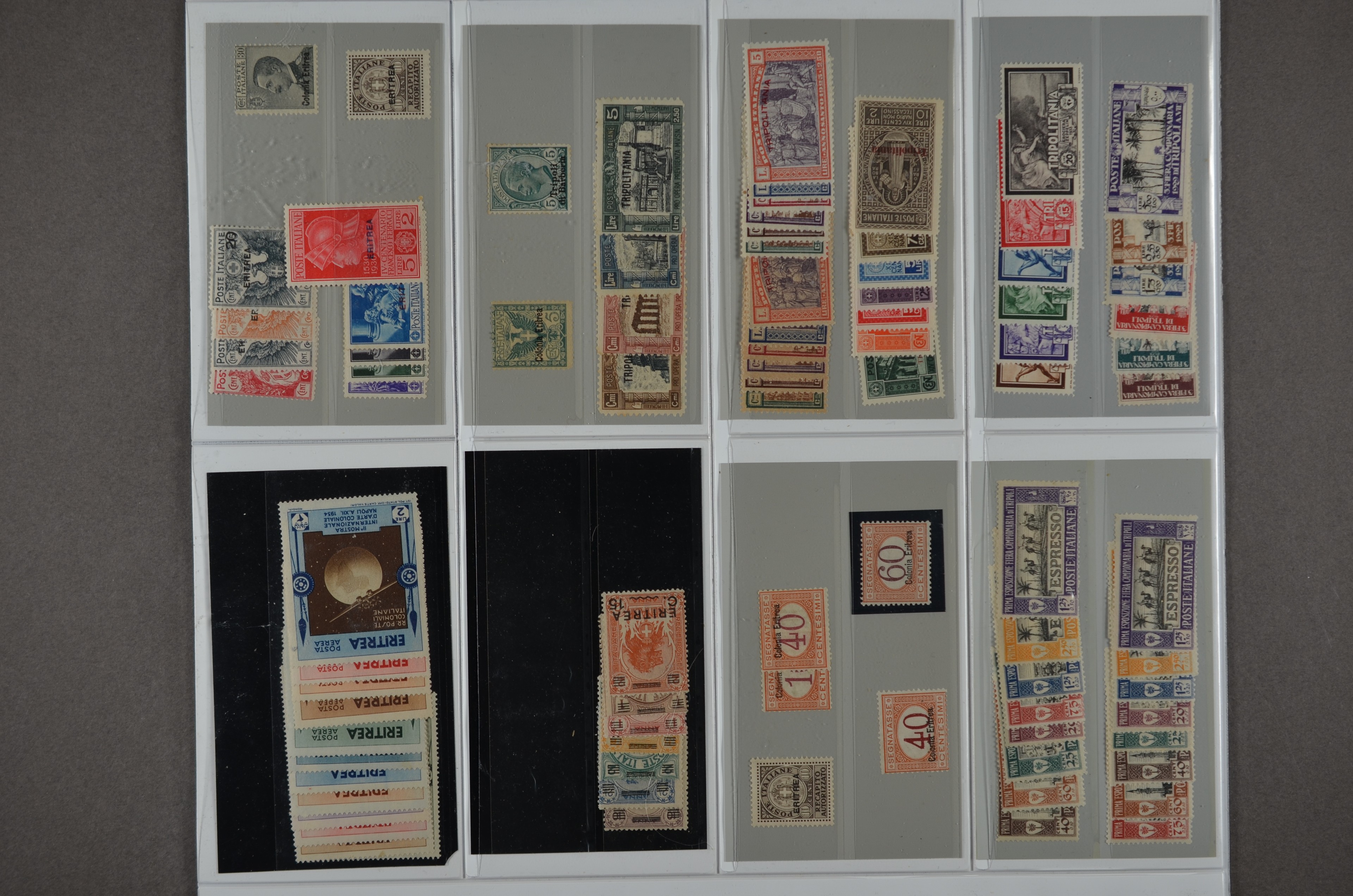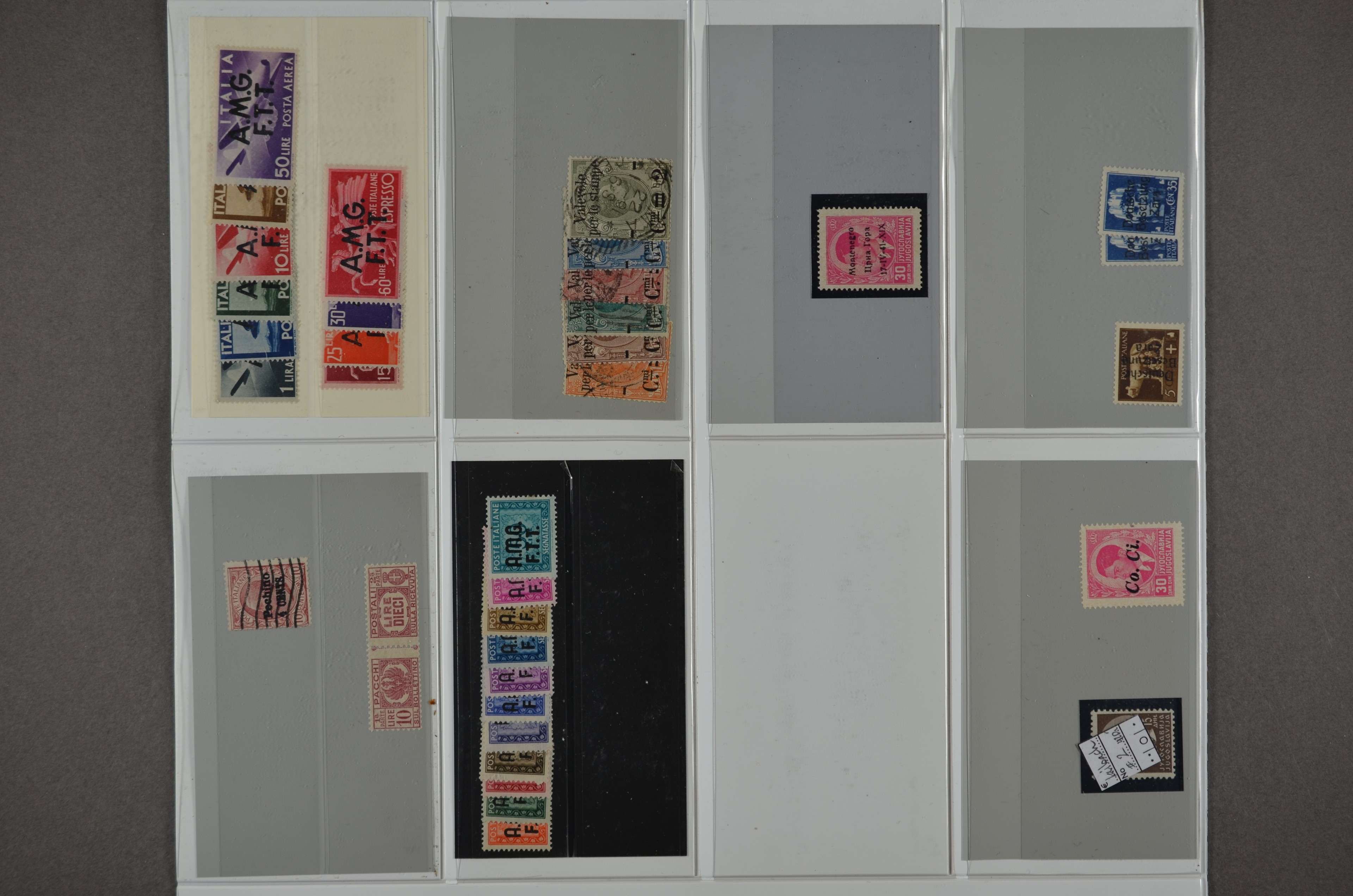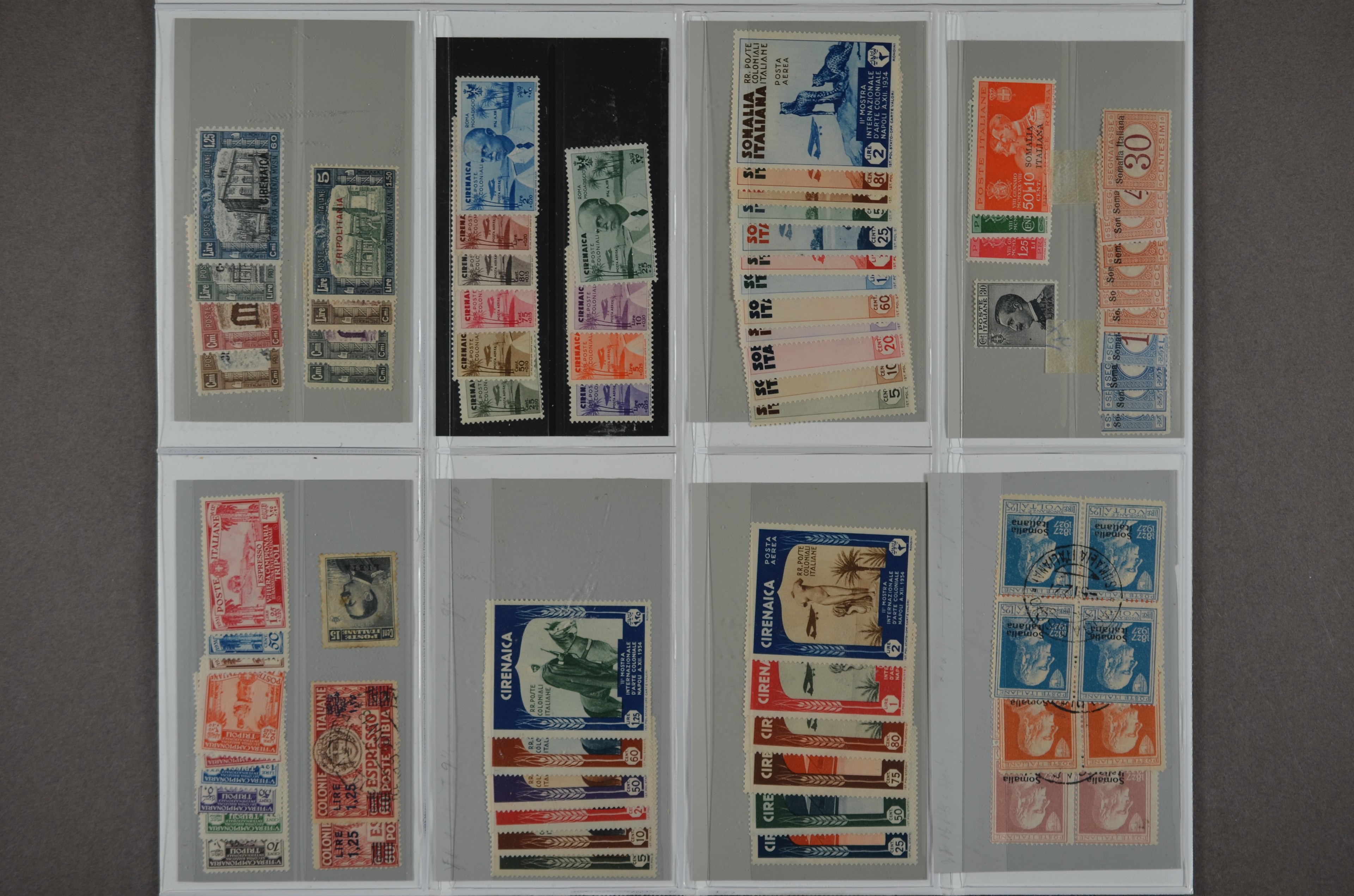 ITALY, OCCUPATION & COLONIES 1851-1957, o/*/** singles and sets on stockcards with f.e.: Italy 415/34, 774/76, 784/85, 793/94, Pacchi 1/6, Fiume 123I/28I, Old Djuba P1/10, etc., etc. Nice lot with high value