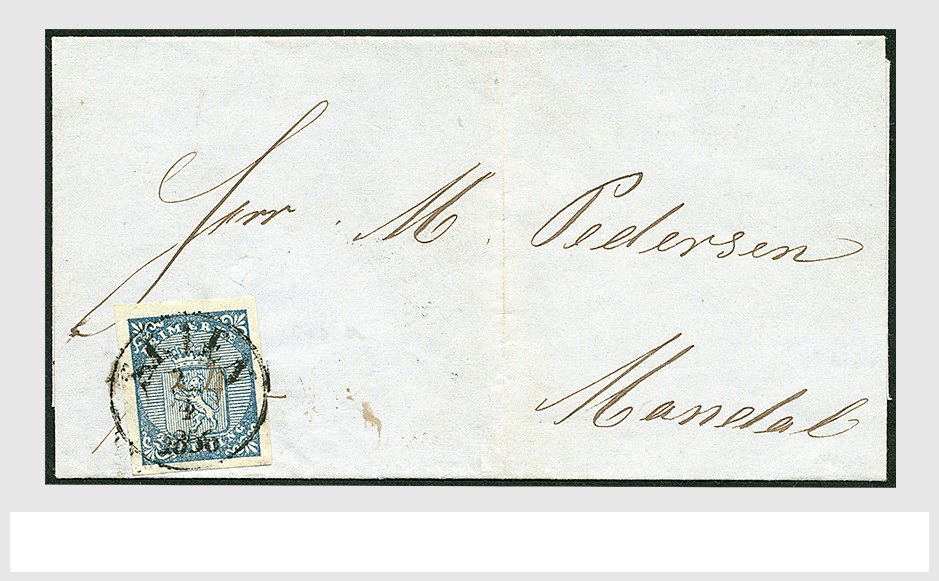 NORWAY 1856, 4 Skilling blue on cover from Beilen 24/4/1856 (manuscript date) to Mandal