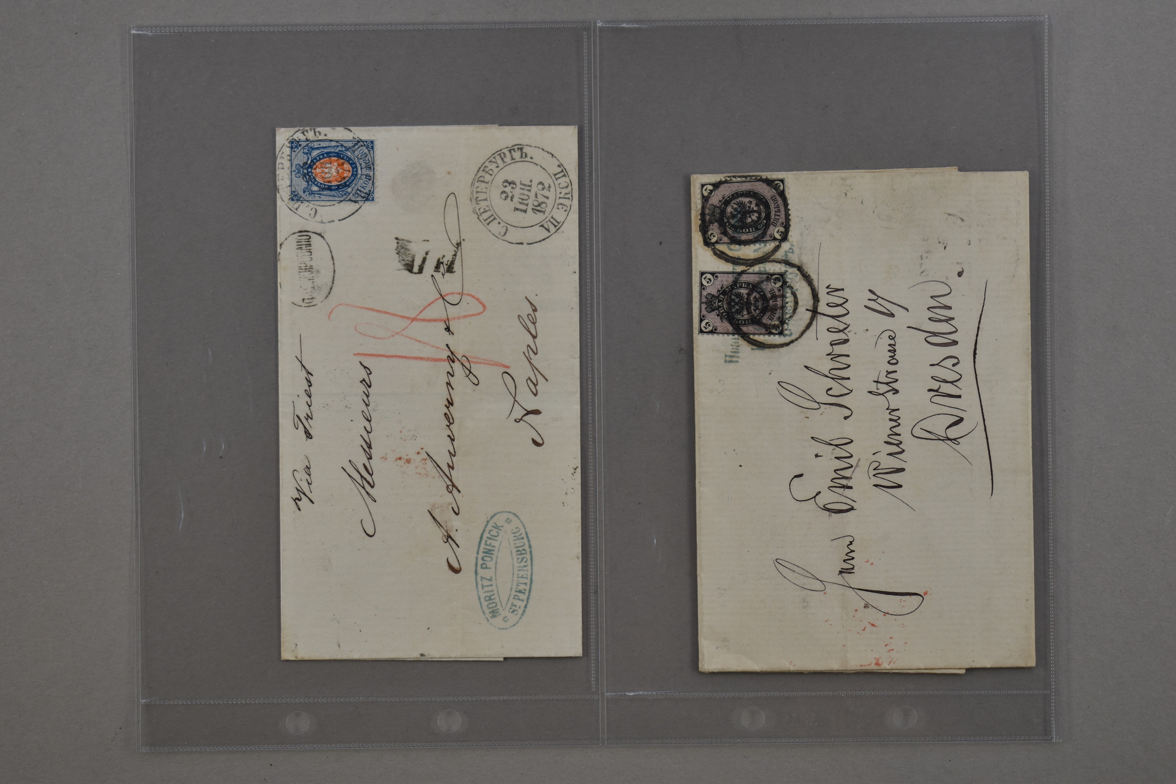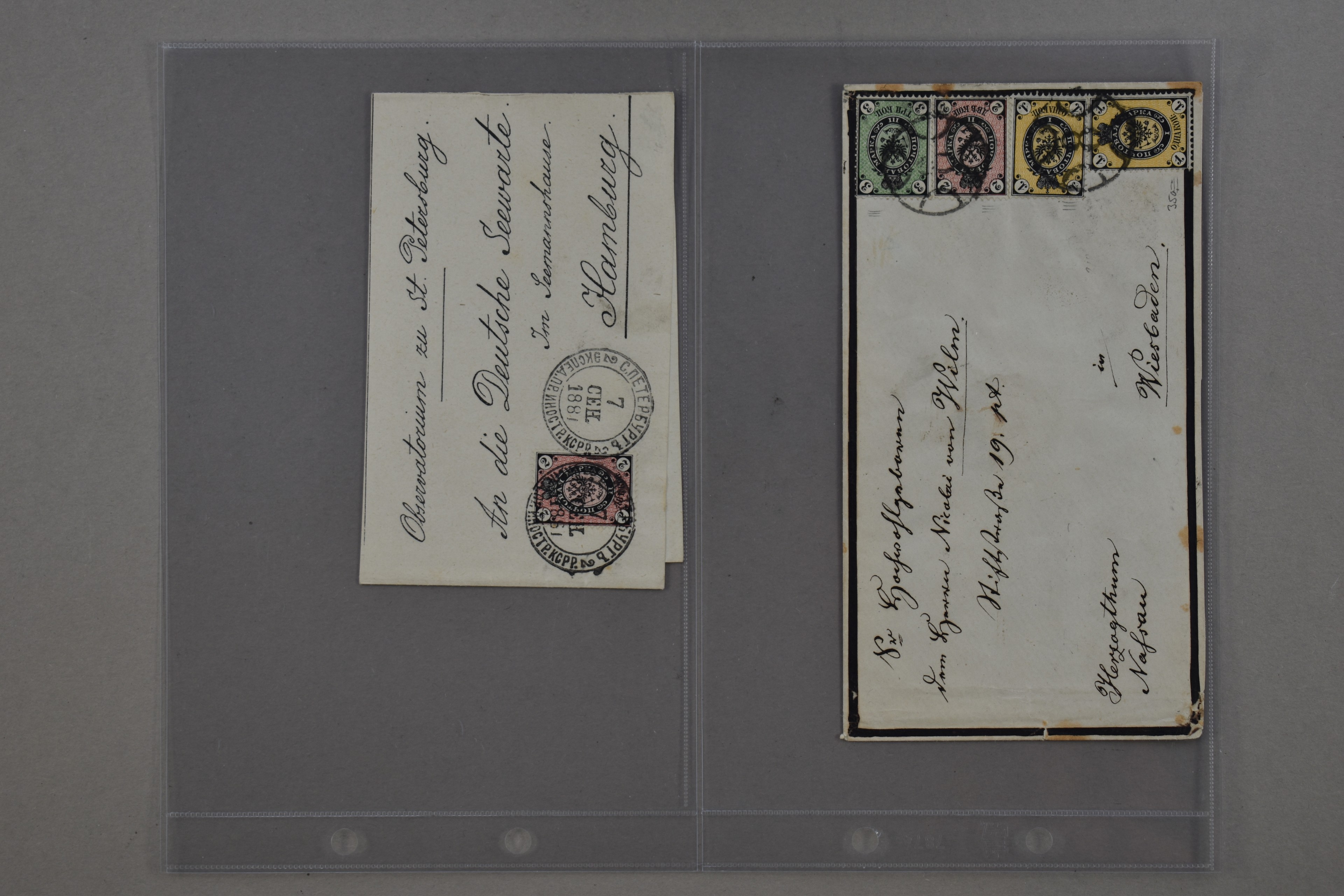 RUSSIA 1858-1884, very clean lot of 11 covers with beautiful single-, two- and three-colour frankings and better cancellations (a cover with no.1, according Mr. Buchsbajew this stamp does not belong on the cover). Fabulous lot for the specialist