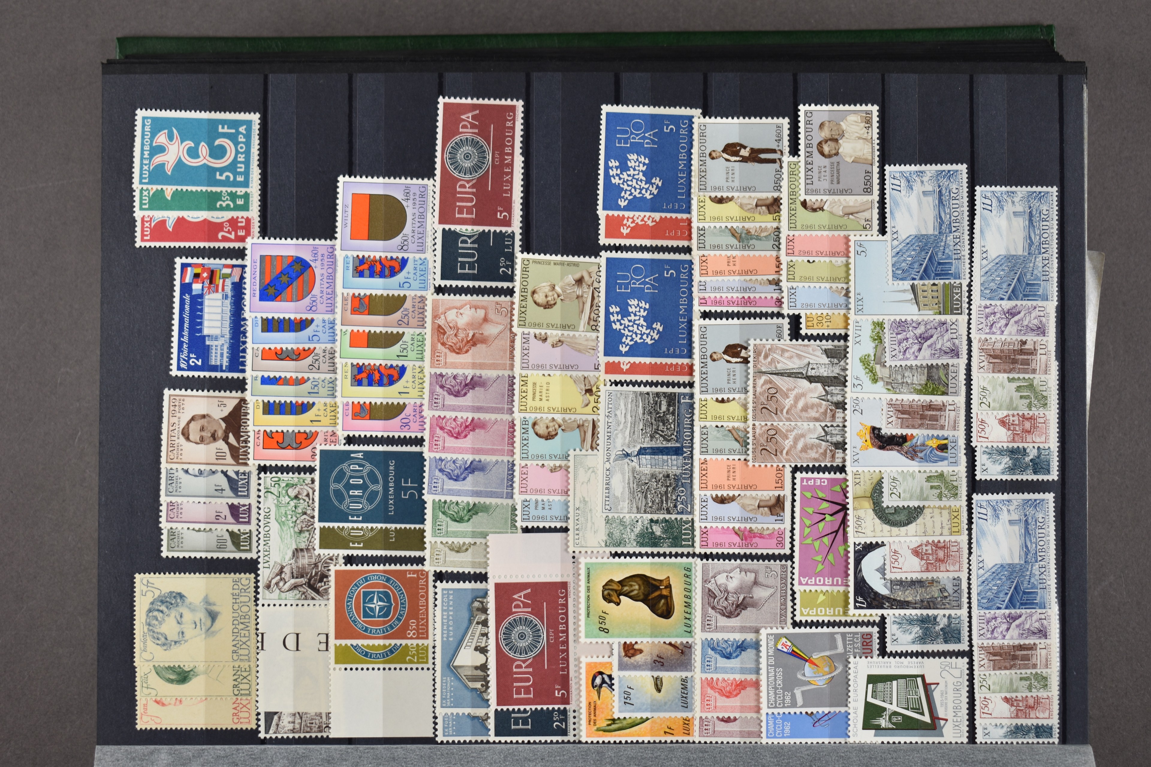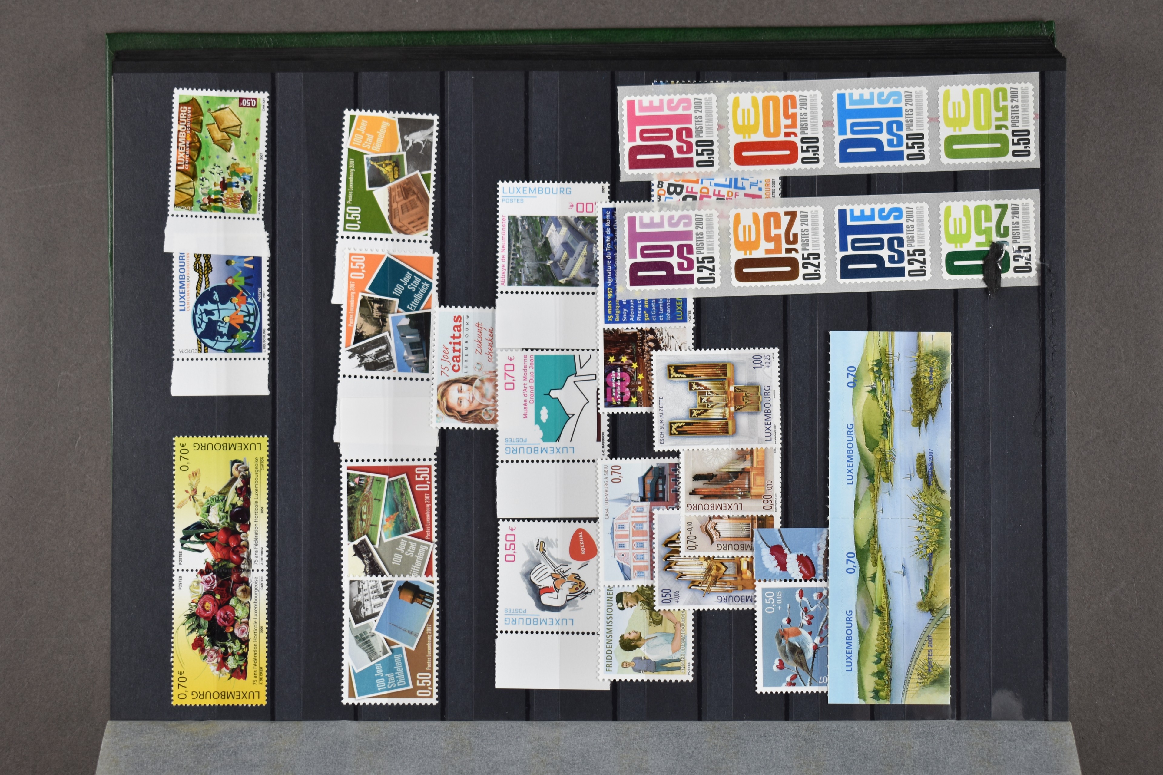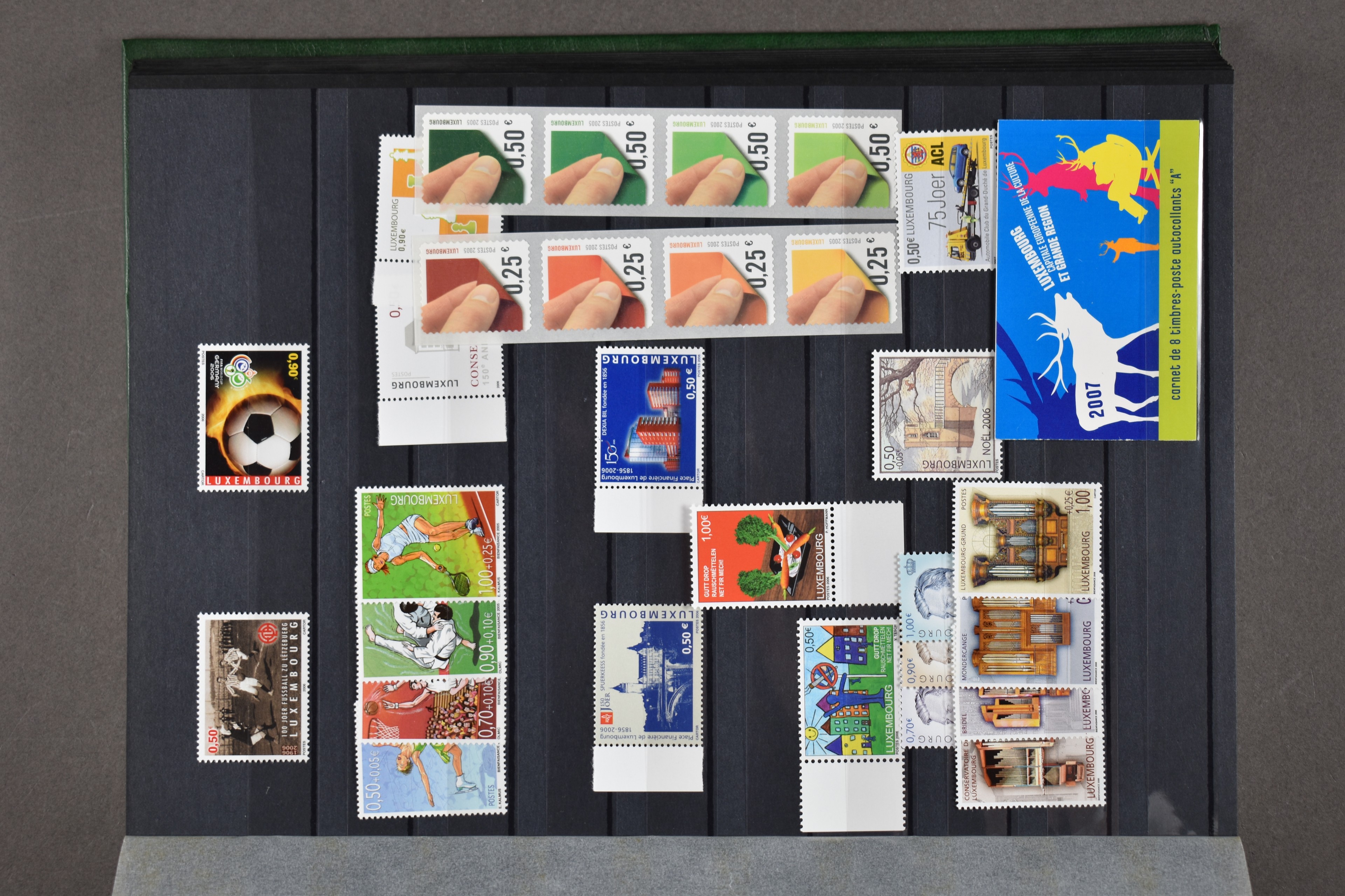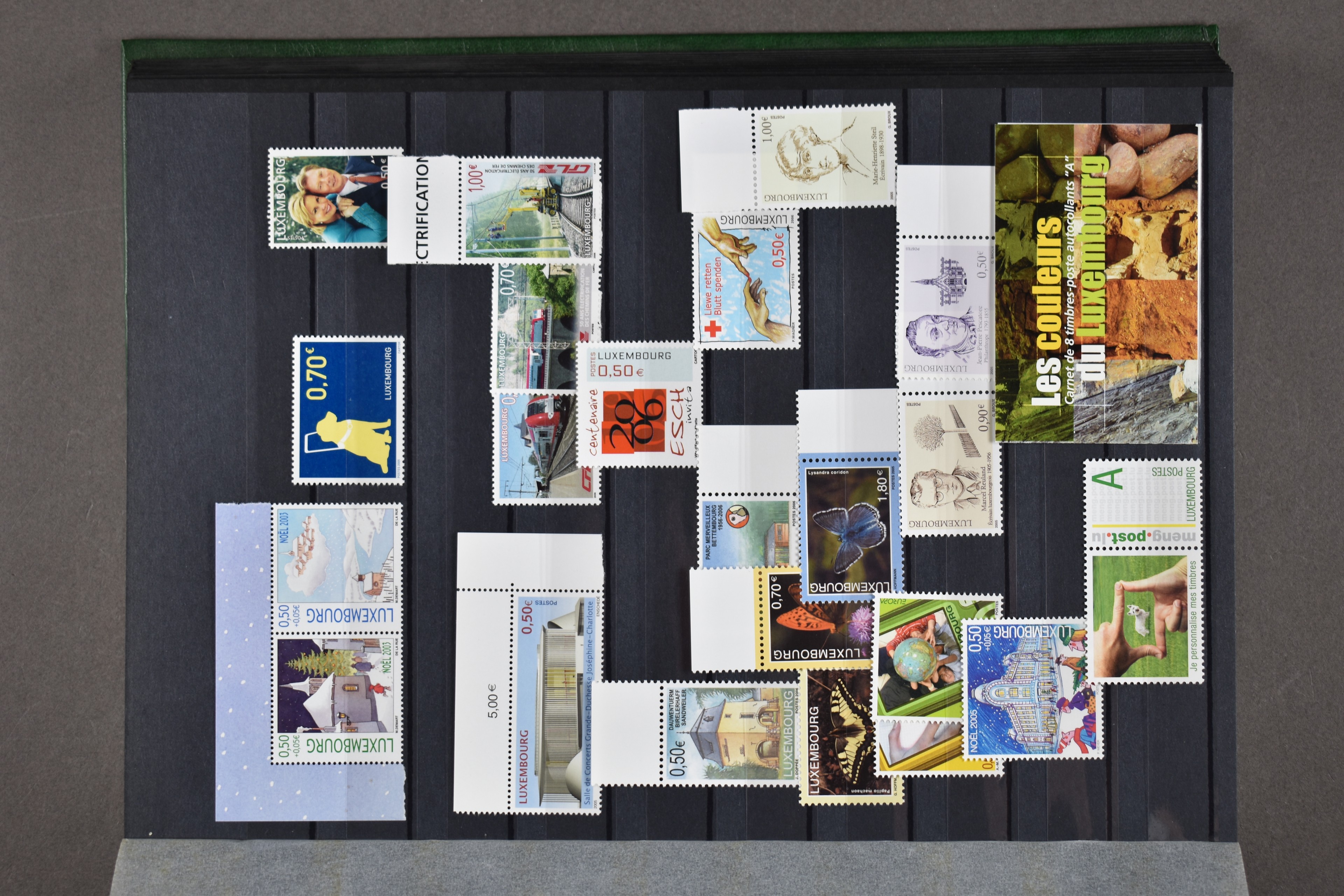 BELGIË 1937-2000, hoofdzakelijk ongebruikte resp. postfrisse verzameling in 2 Schaubek albums, insteekboek en op insteekbladen, wb. veel blokken en boekjes alsmede Luxemburg 1935-2077 */** in 2 albums en insteekboek wb. 478/83