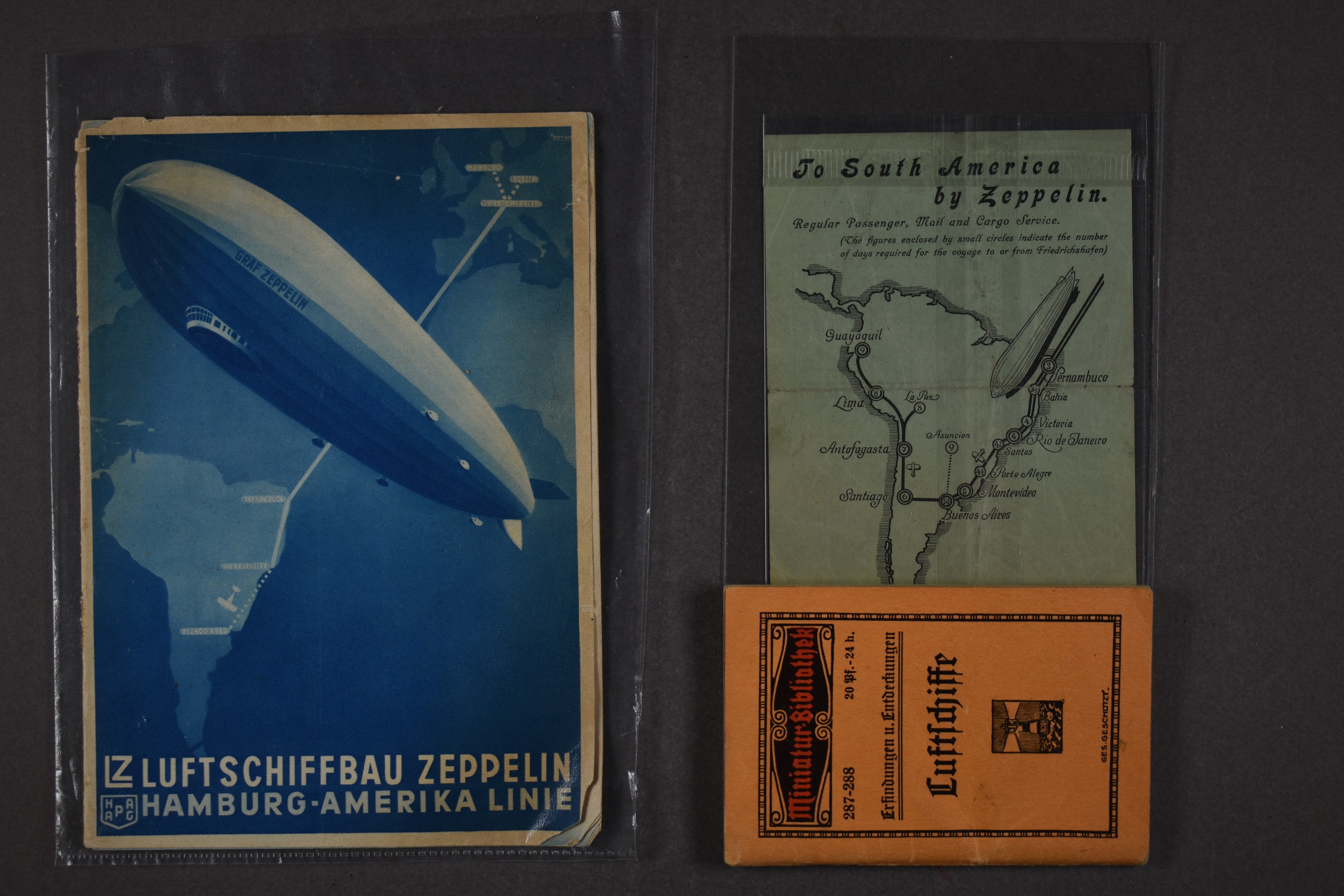 ZEPPELIN, stamps and covers, memorabilia with an original board crew badge (1914-1918), Photo-books and literature. Nice lot for the specialist