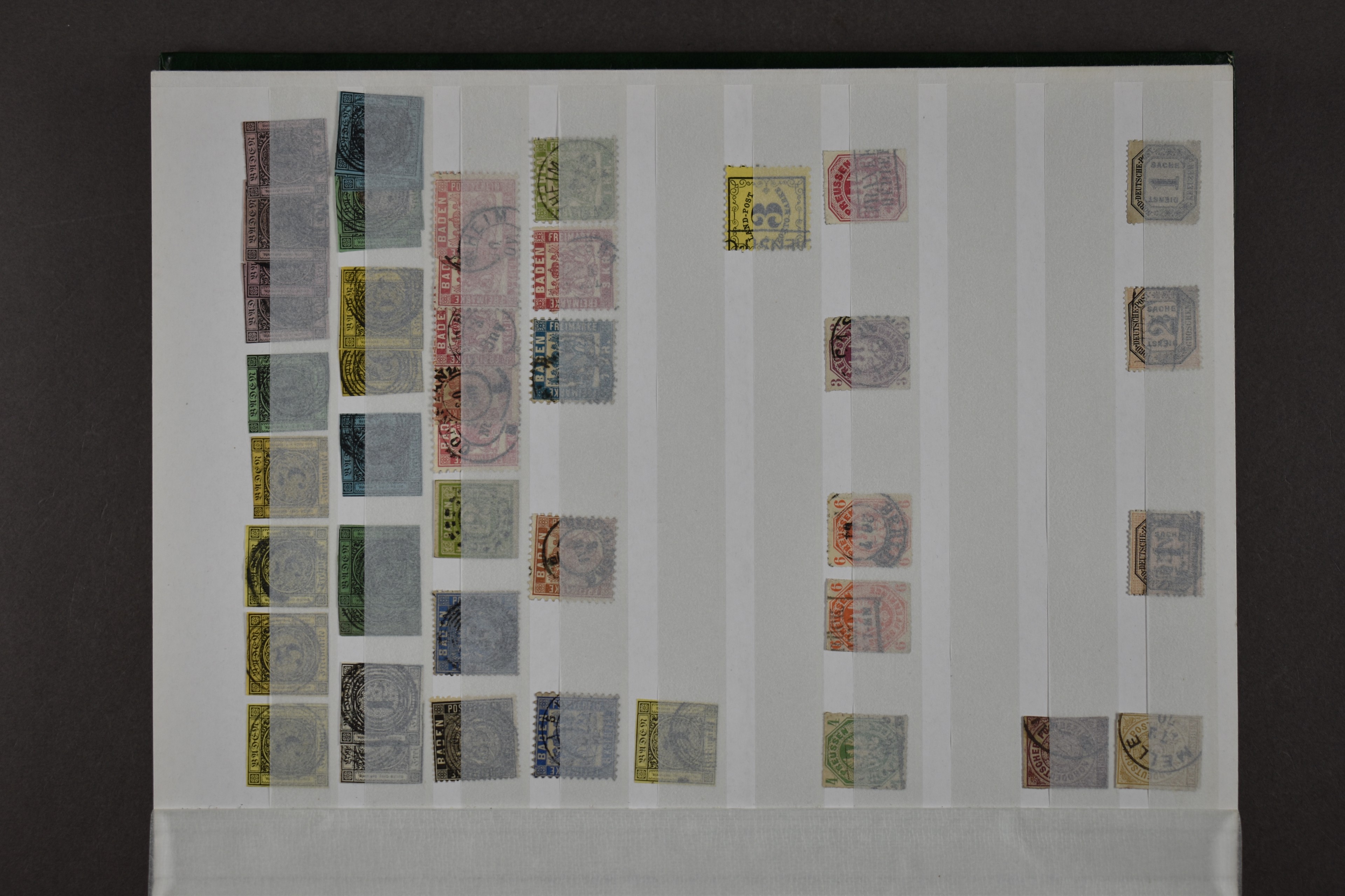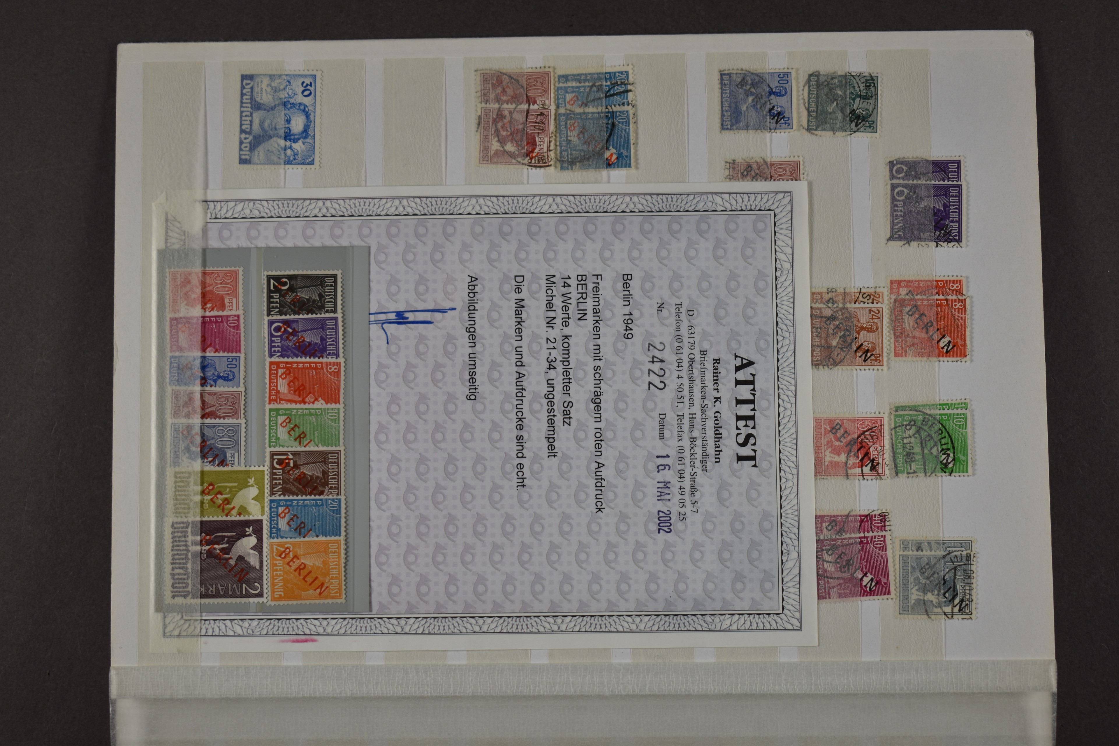 GERMANY 1850-1955, o/*/**, Old Sates, Baden till Württemberg, Empire with some large and small shields, several nice sets f.e.: Wagner, Nothilfe 1934, Local issues 1945, American Zone, French Zone, Russian Zone, good sets from Bund and Berlin f.e.: 21/34 with cert. and much more in stockbook and on stockpages. Very high cat. value